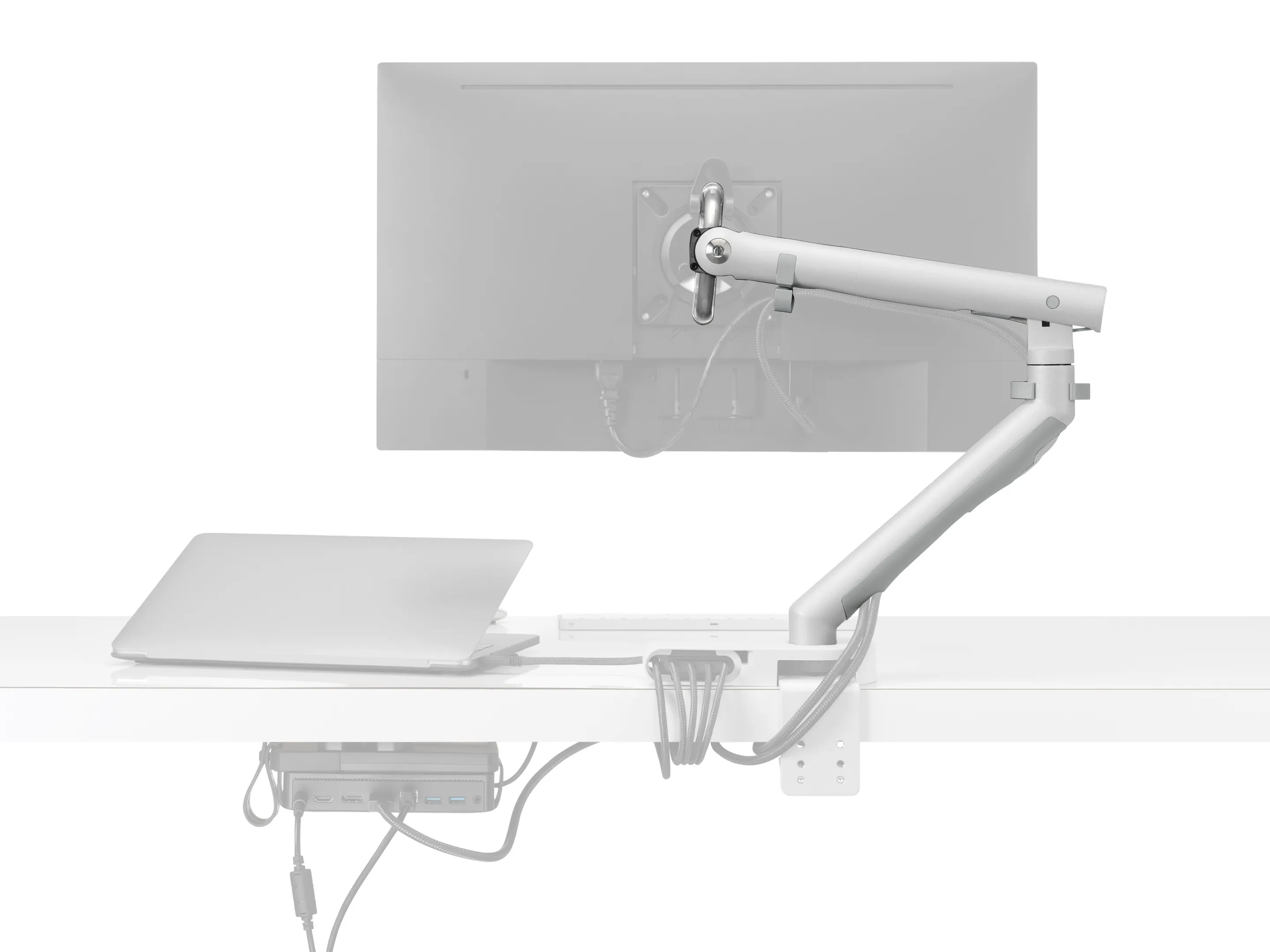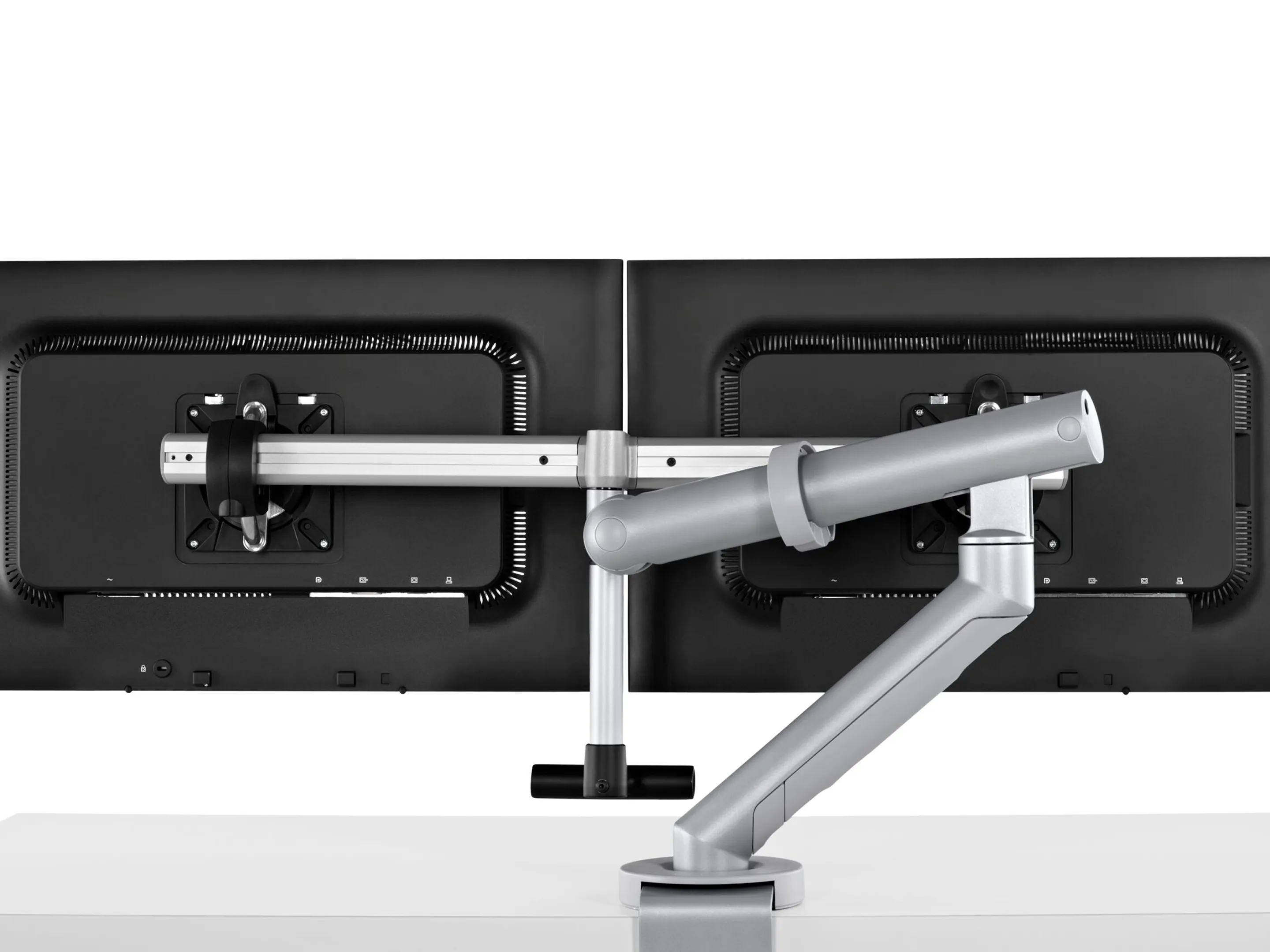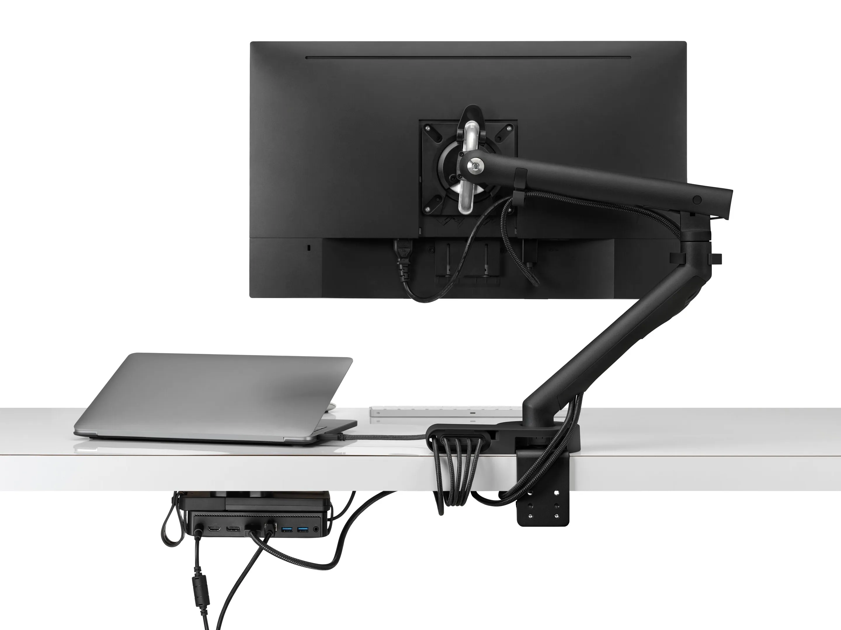 Gasveer gestuurde monitorarm, horizontaal bereik: 581mm, vertikaal bereik: 341mm, incl. kabelmanagement.