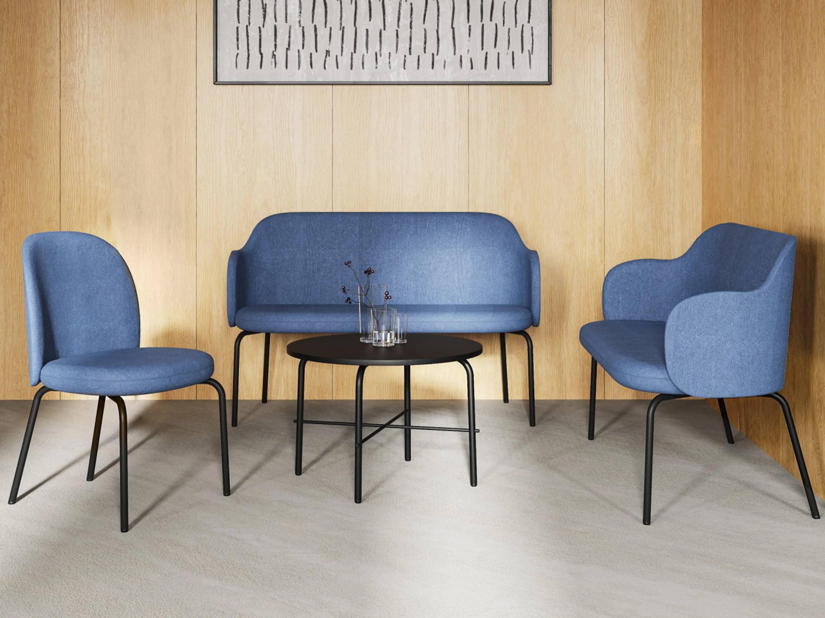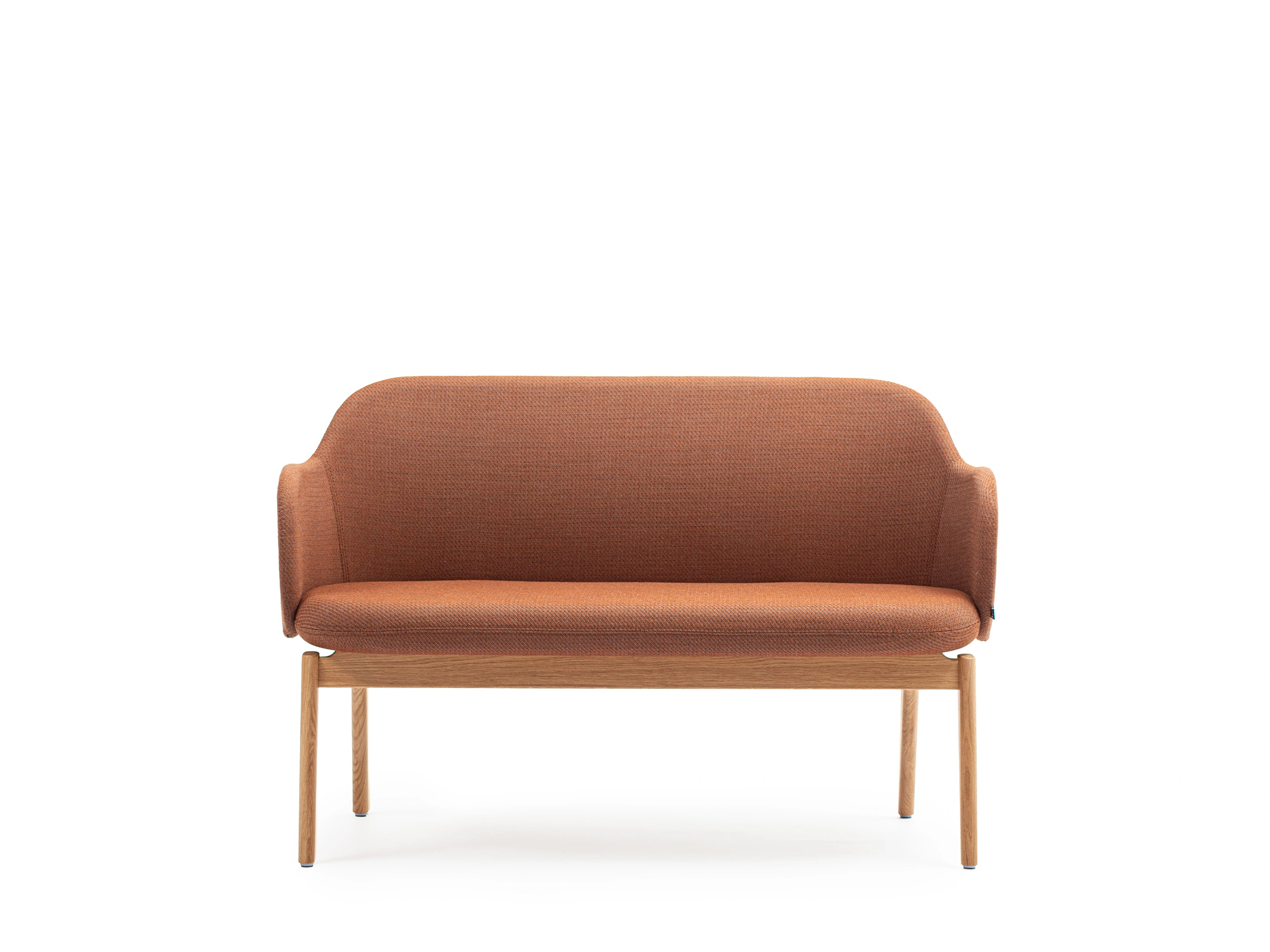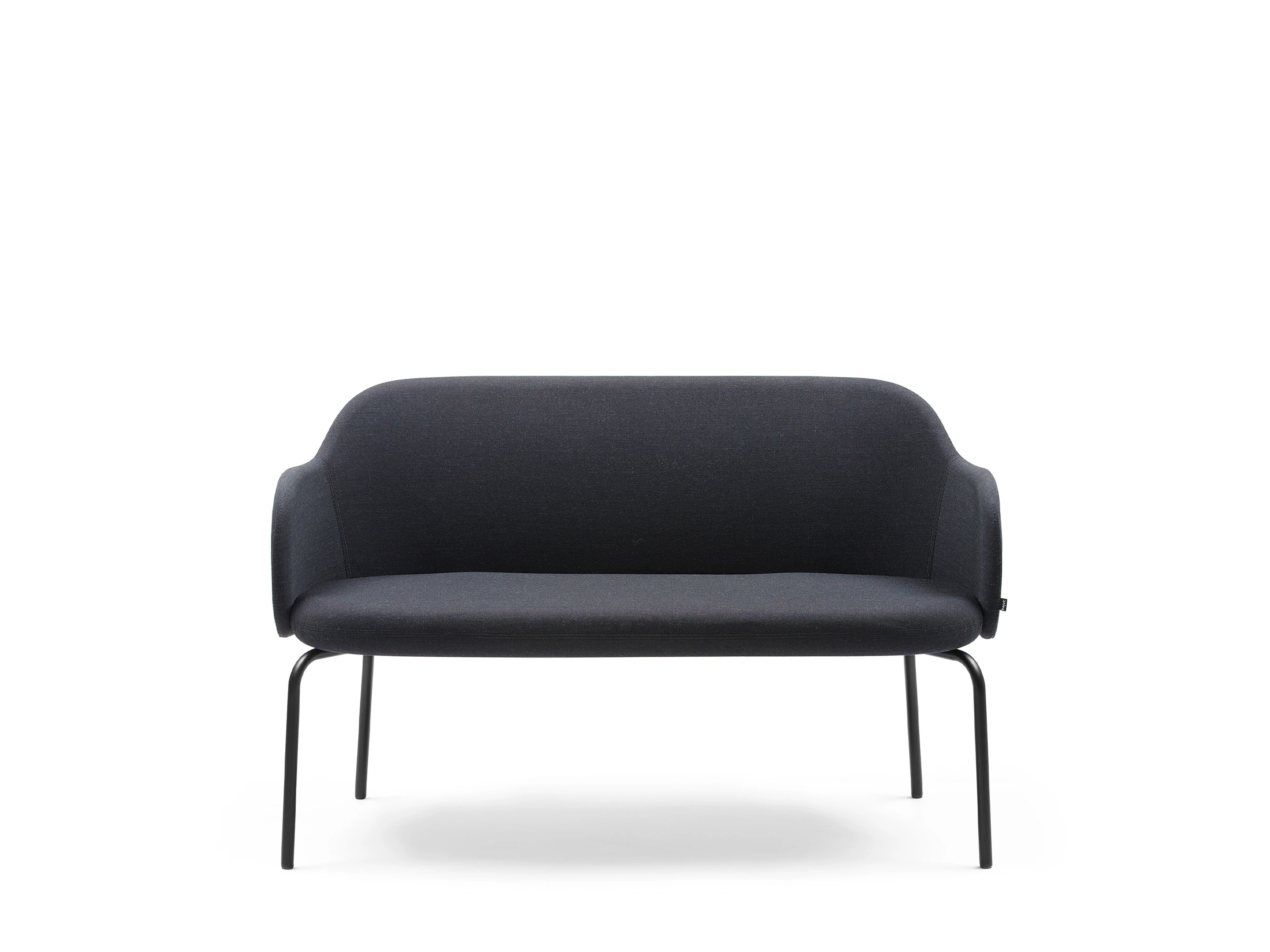 Volledig gestoffeerde 2-zits bank, geschikt voor tafels met een hoogte van 740 mm, 4-poots frame, op glijddoppen, incl. armleuningen