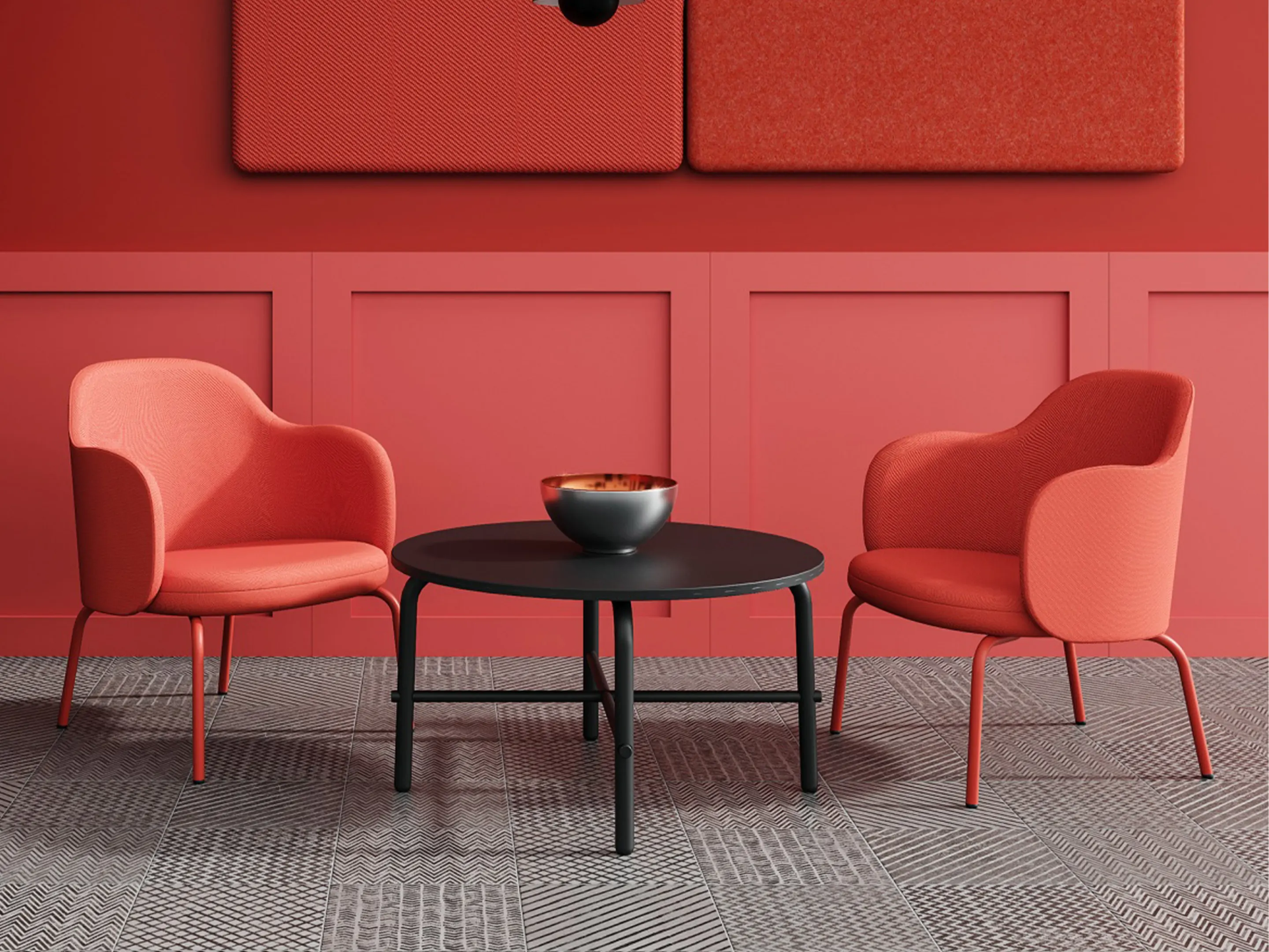 Volledig gestoffeerde kuip, 4-poots frame, op glijddoppen, incl. armleuningen