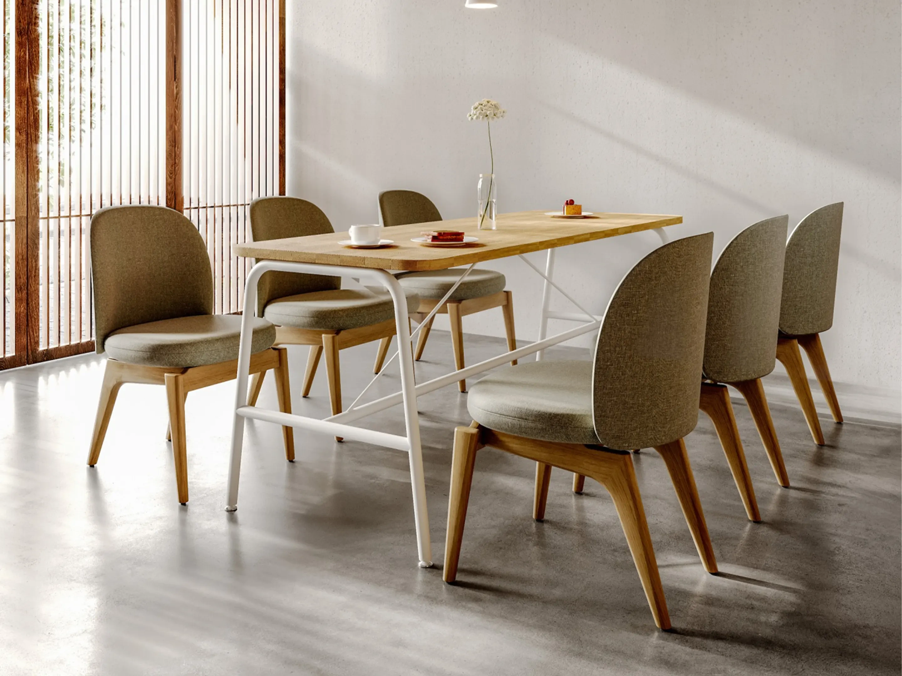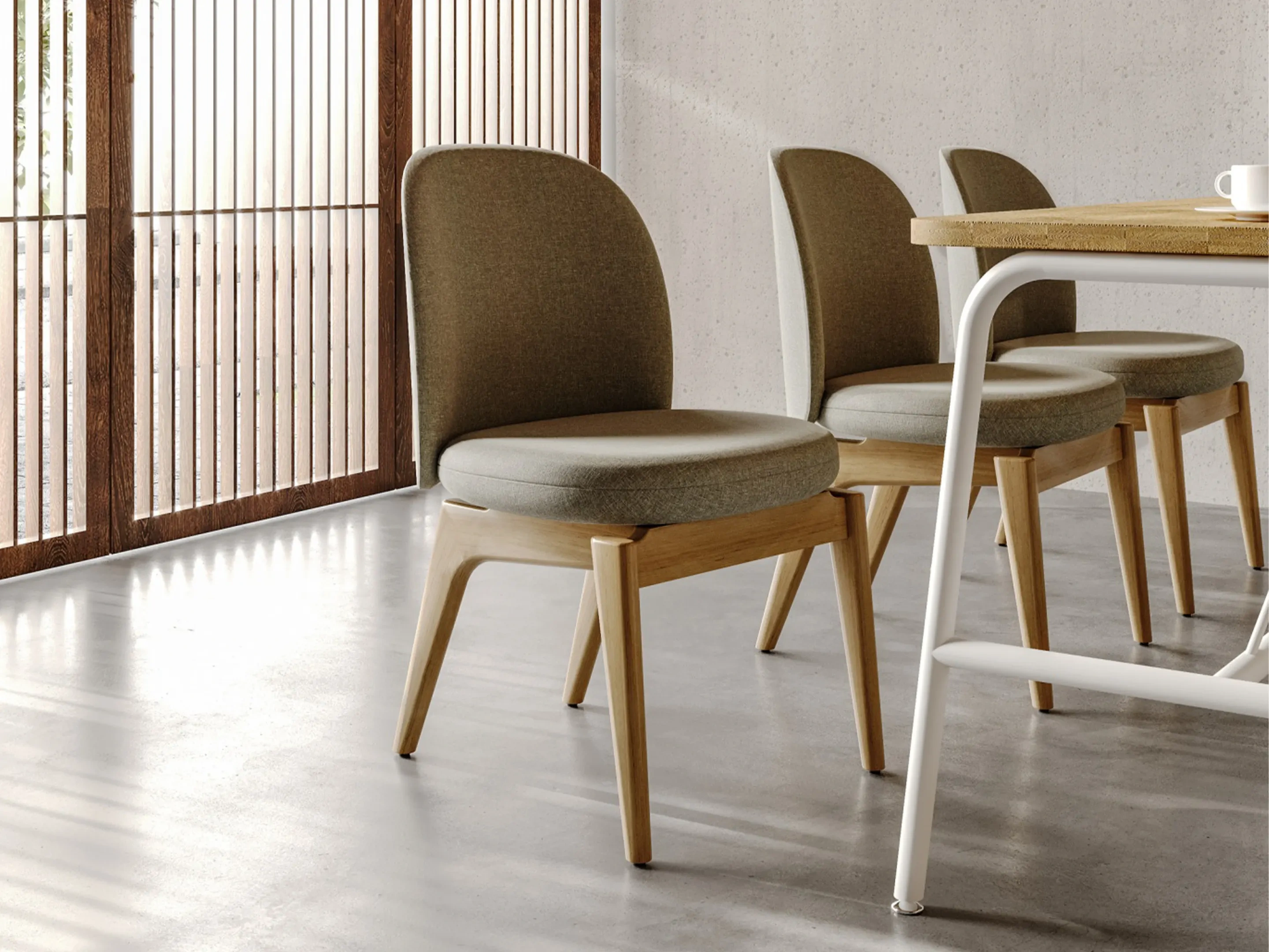 Volledig gestoffeerde kuip, houten 4-poots frame op glijddoppen