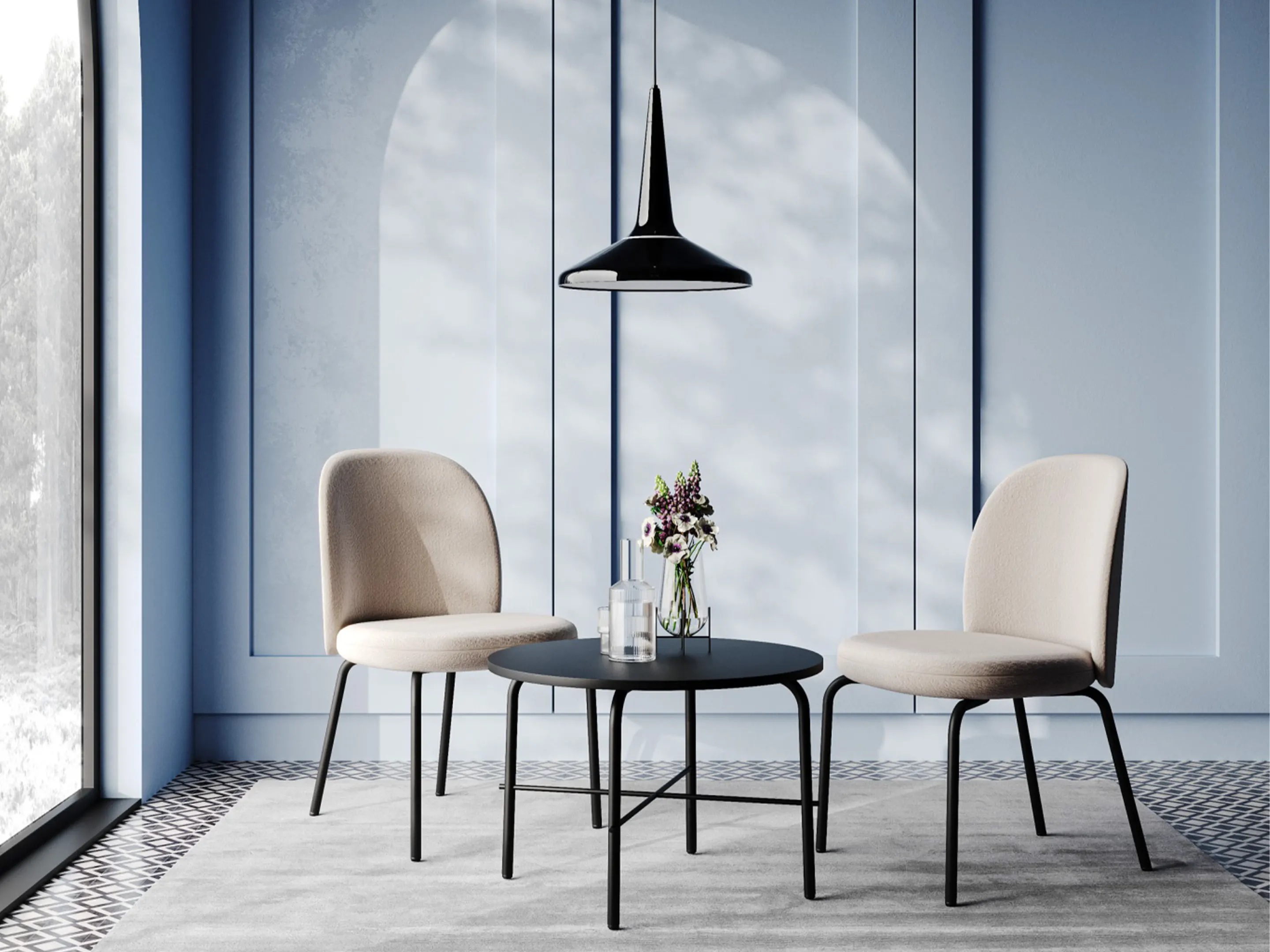 Volledig gestoffeerde kuip, 4-poots frame op glijddoppen