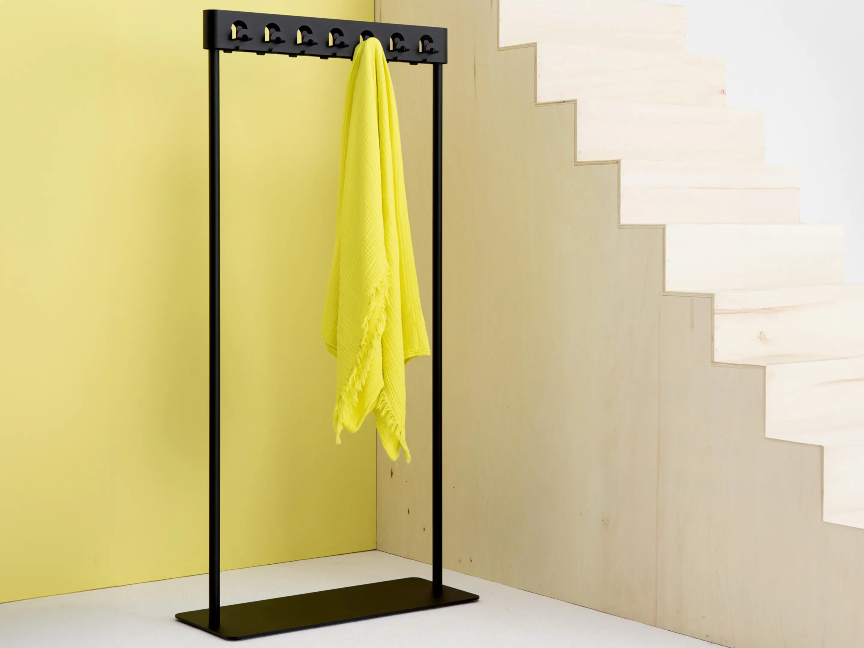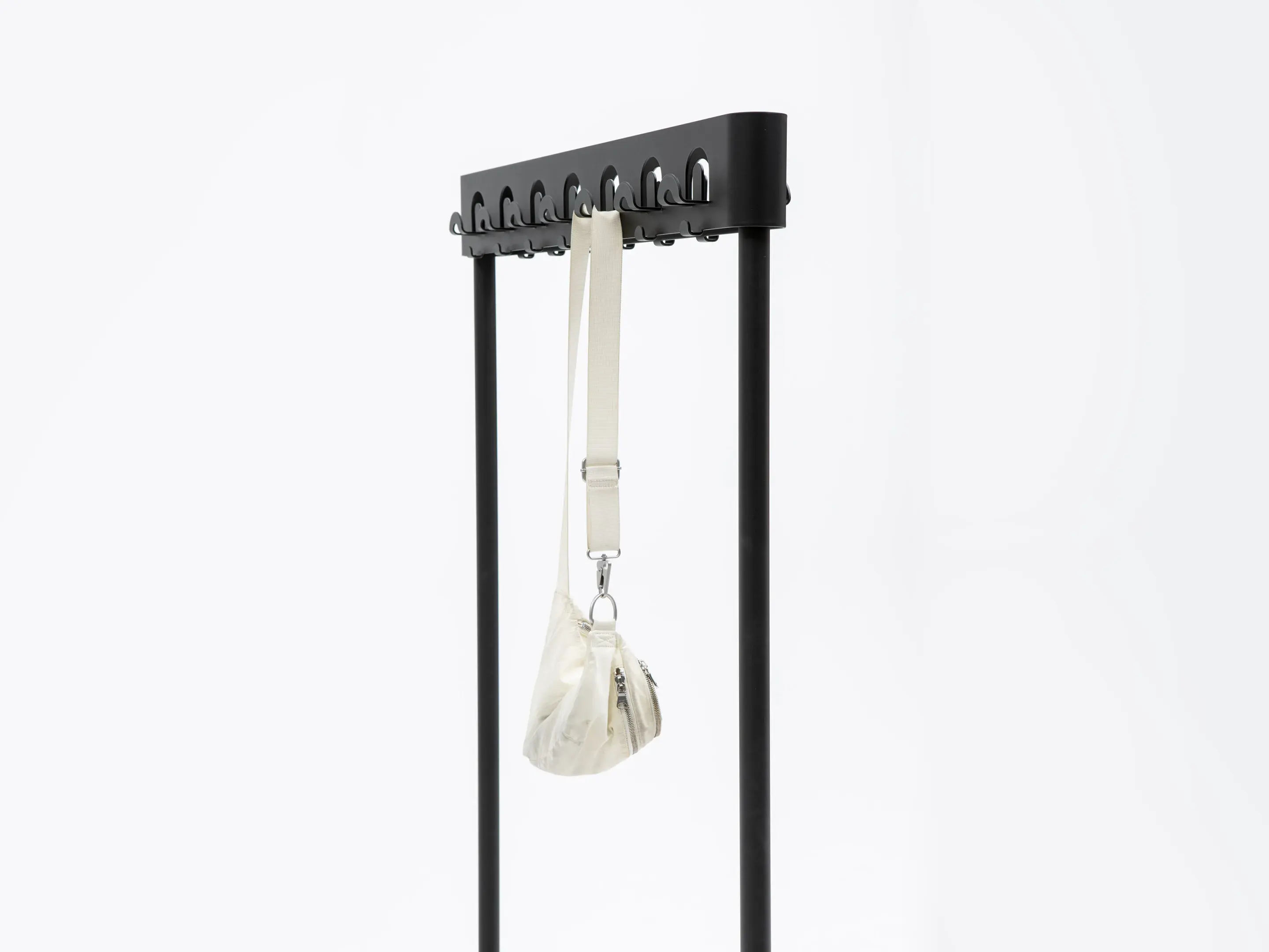 Staande kapstok met 14 grote en 14 kleine haken. Afmeting: 840 x 350 x 1700mm (BxDxH)