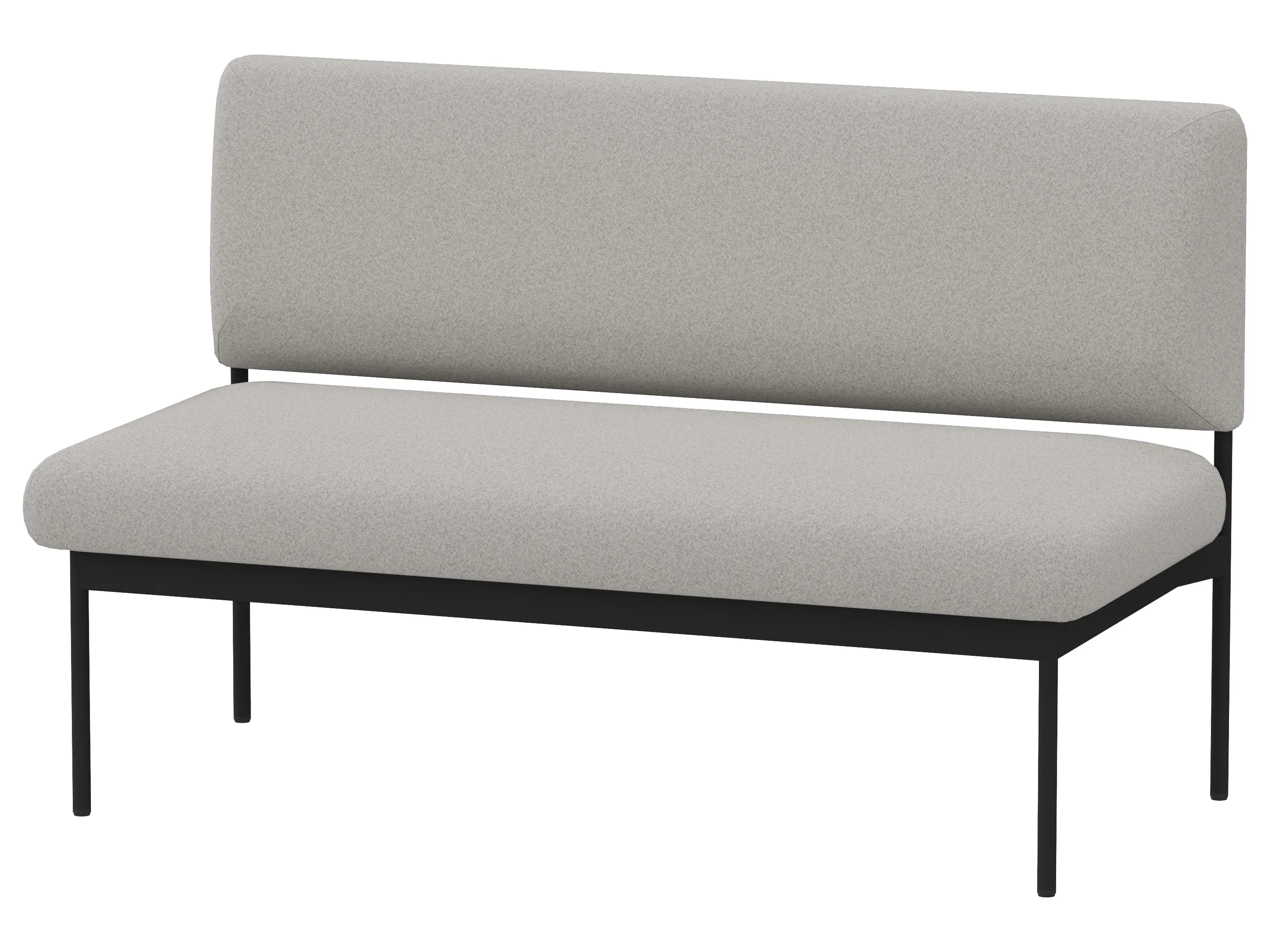 Volledig gestoffeerde 2-zits bank met doorlopend zitkussen op een 4-poots frame. Incl. rugleuning, excl. armleuningen. Afmeting: 1320 x 650 x 830mm (B x D x H). Zithoogte 470mm.