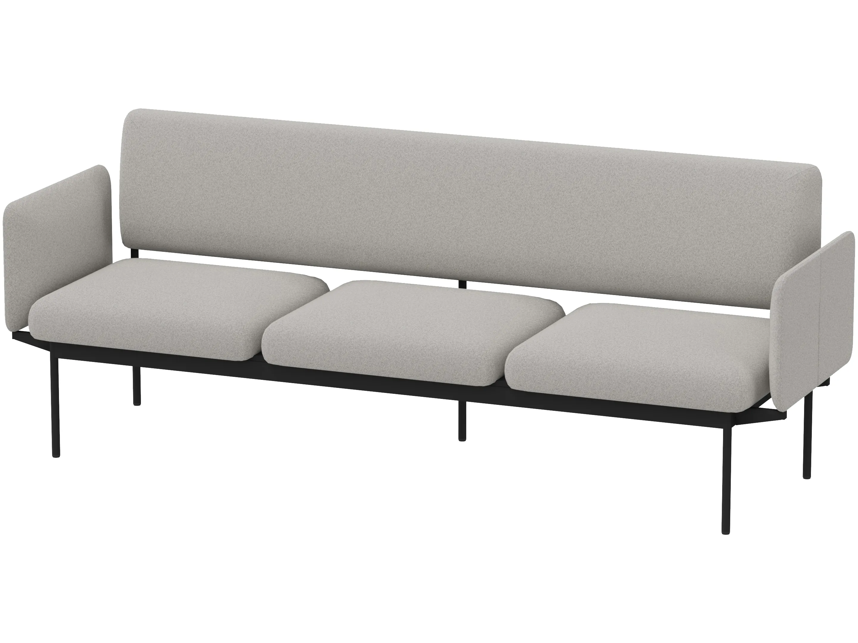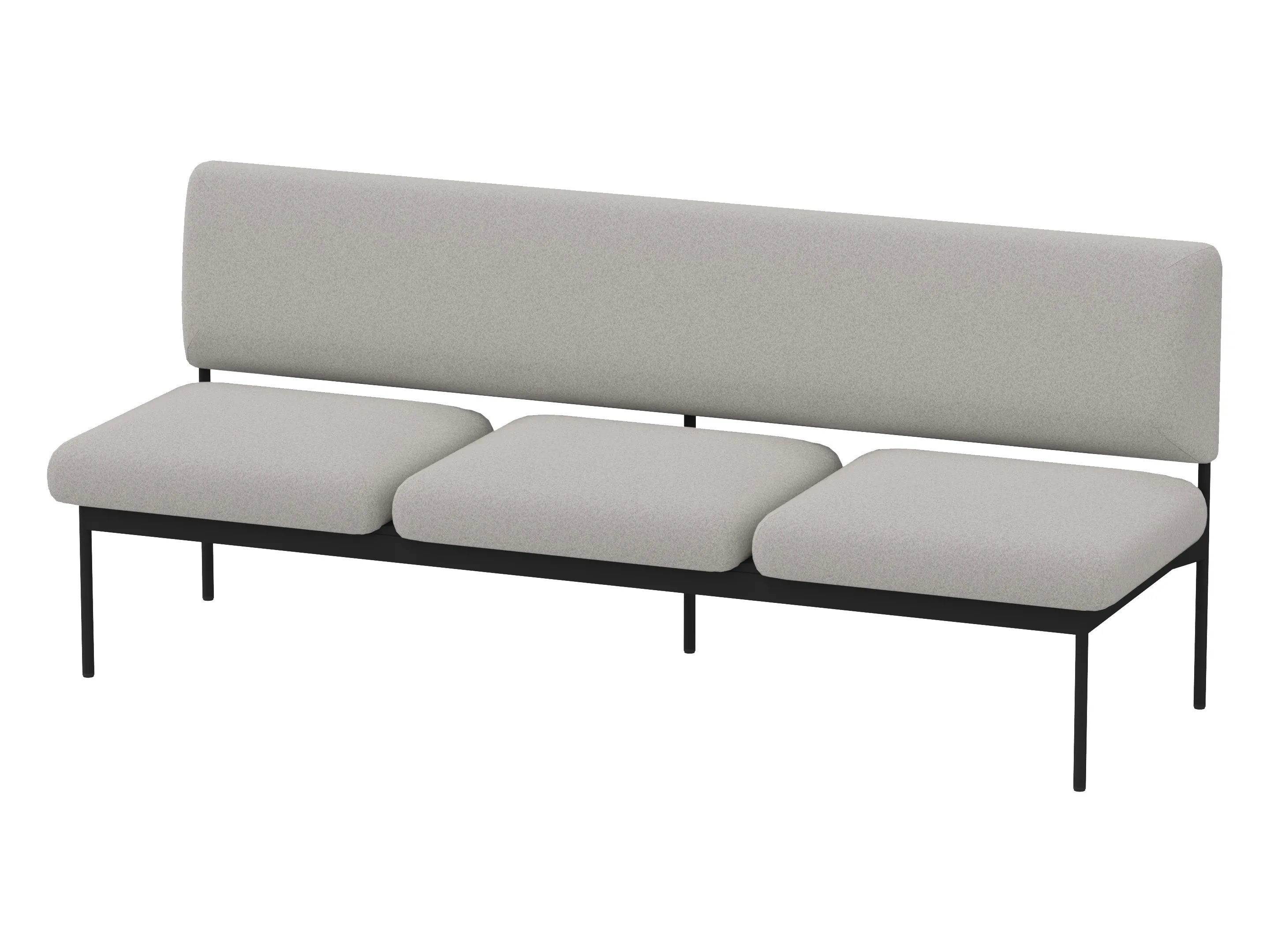 Volledig gestoffeerde 3-zits bank met een apart zitkussen per zitplaats op een 6-poots frame. Excl. armleuningen en rugleuning. Afmeting: 1990 x 650 x 470mm (B x D x H).