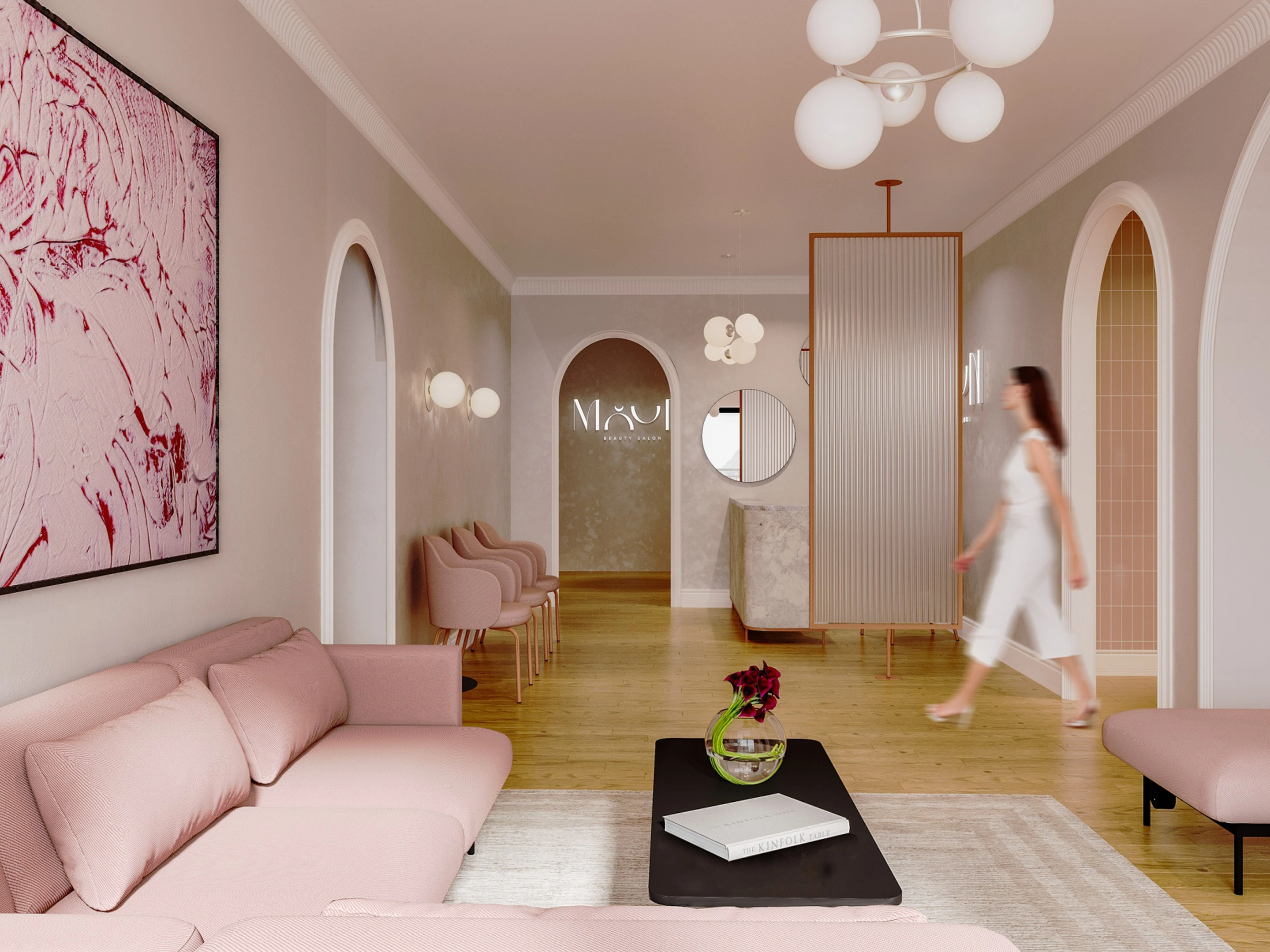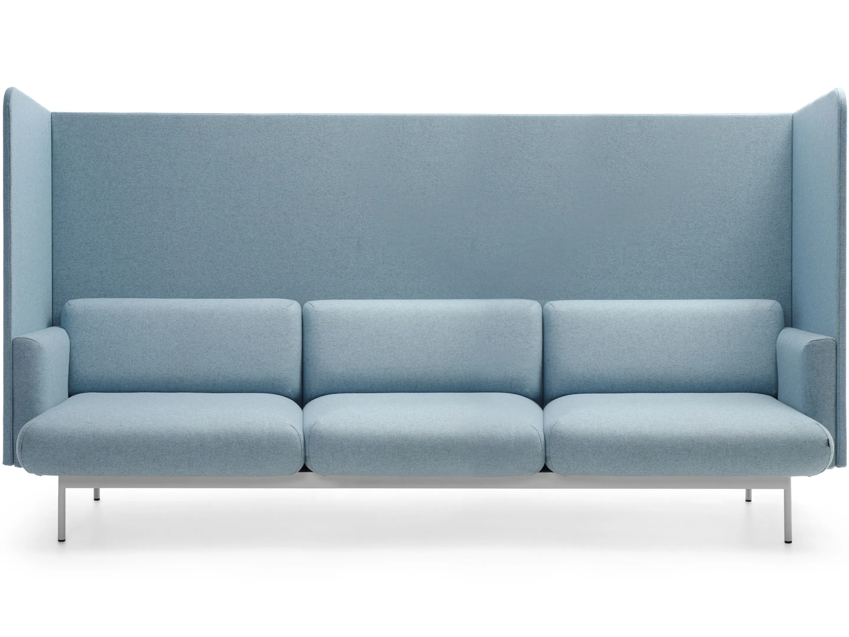 Volledig gestoffeerde 3-zits bank met een akoestische privacy ombouw met een hoogte van 1395mm, 2680mm breed, 4-poots frame, incl. armleuningen en rugleuning