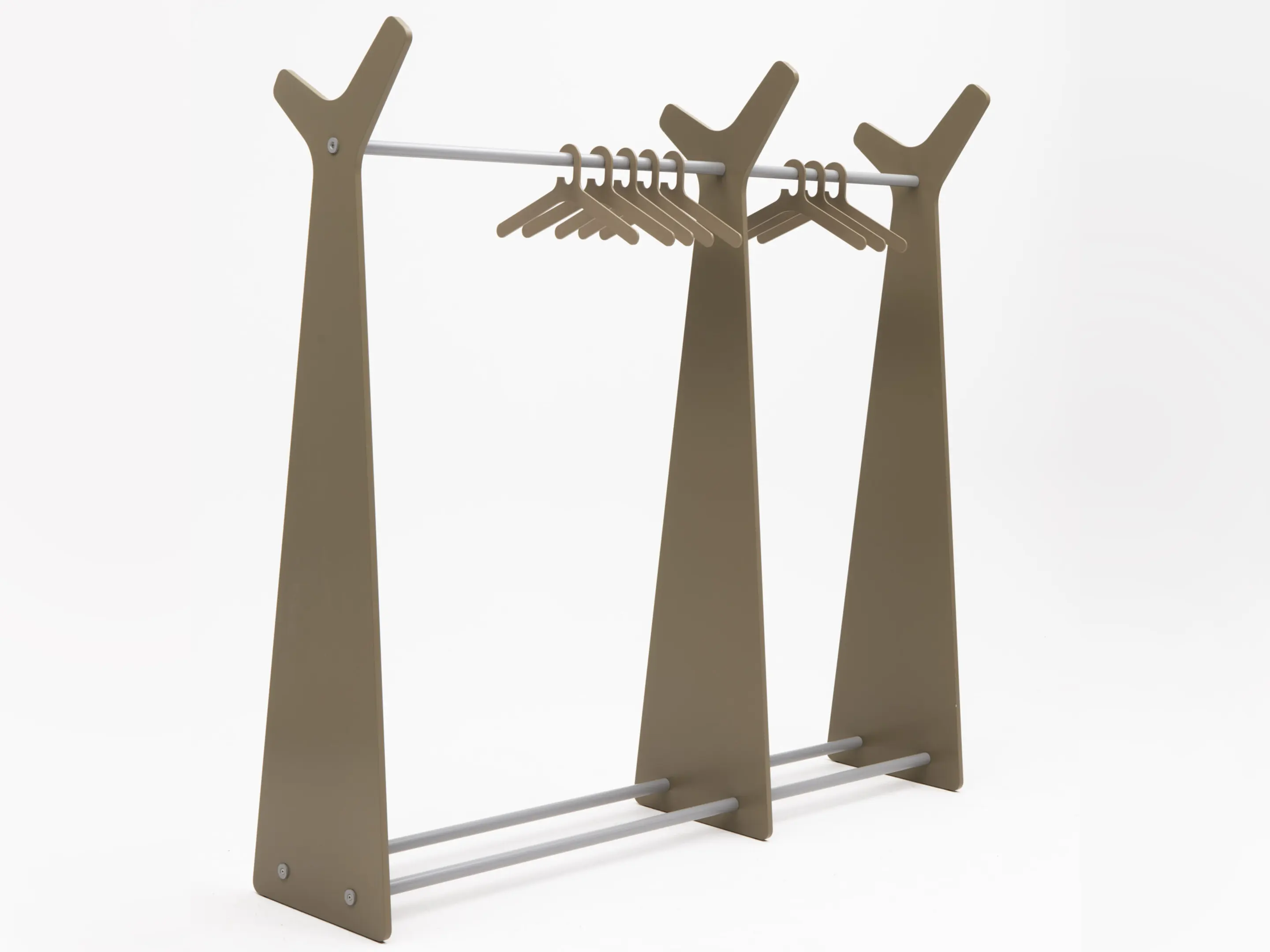 Staande basis garderoberek uit MDF, geschikt voor hangers en jashaken (niet inbegrepen). Afmeting: 1210 x 470 x 1910mm (BxDxH)