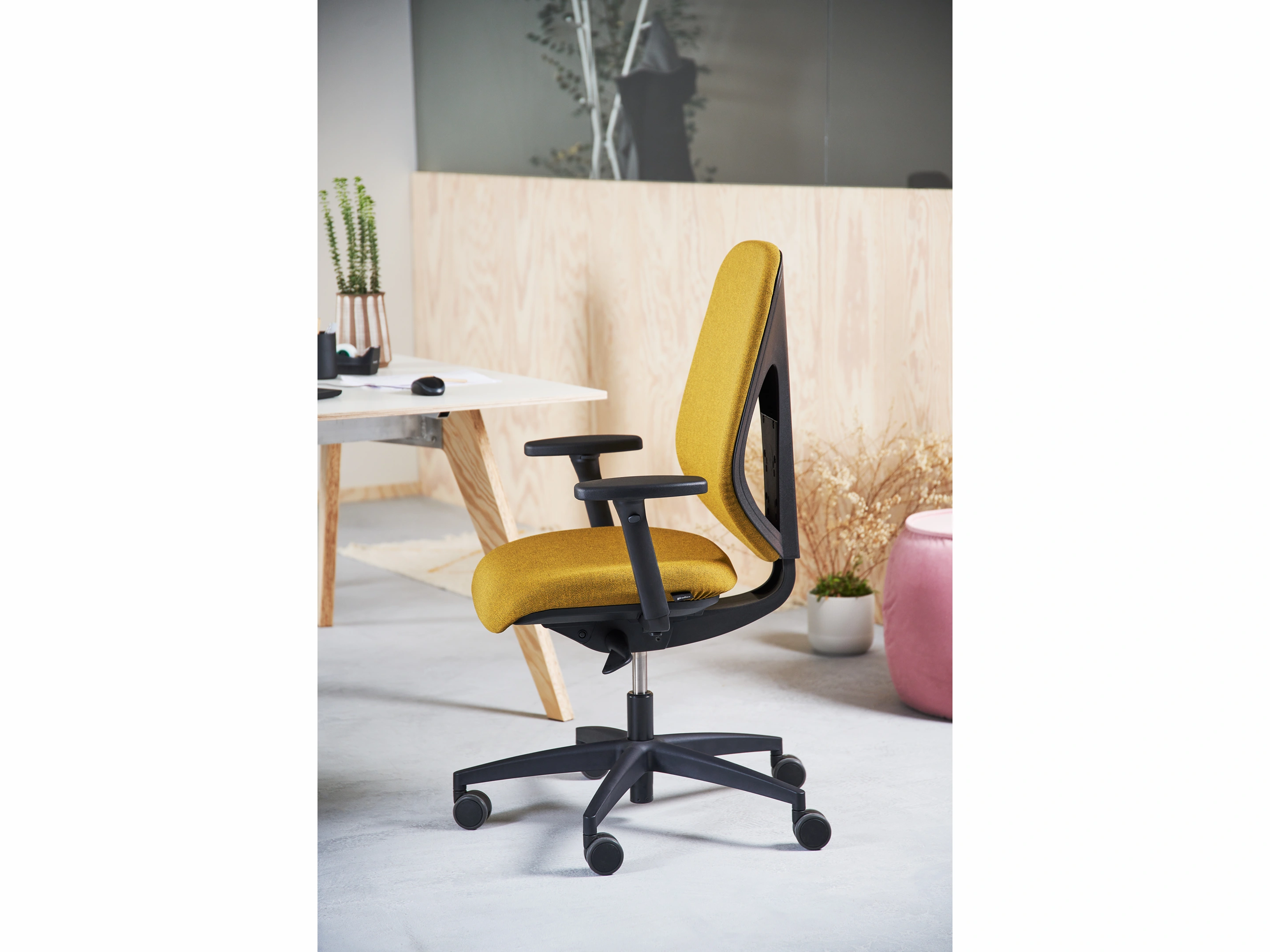 Compleet met: Automatic Move mechanisme, Zitkussen met tweezone zitprofiel, verstelbare zithoogte 39-51cm, zitschaal, rugframe in kunststof (altijd zwart), verstelbare zitdiepte 6cm, verstelbare rughoogte 6cm.