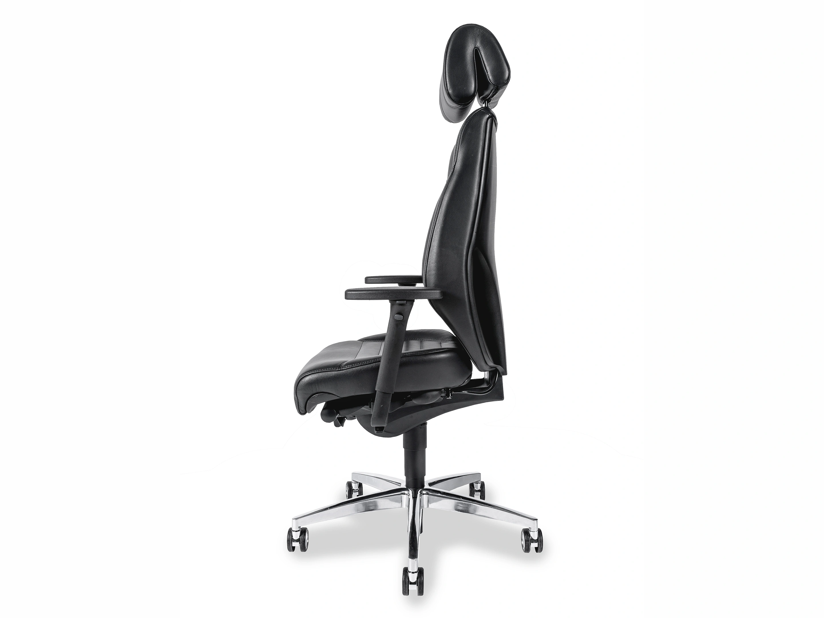 Verstelbare hoofdsteun, Comfortbekleding, Organic Move Synchroonmechaniek,, 2-zone zitprofiel, rugschaal in kunststof, standaard zithoogte: 40-52cm, rugleuning 7cm (55-62cm) & zitdiepte 5cm verstelbaar, afdekkap gasveer, Standaard 4D armsteunen.