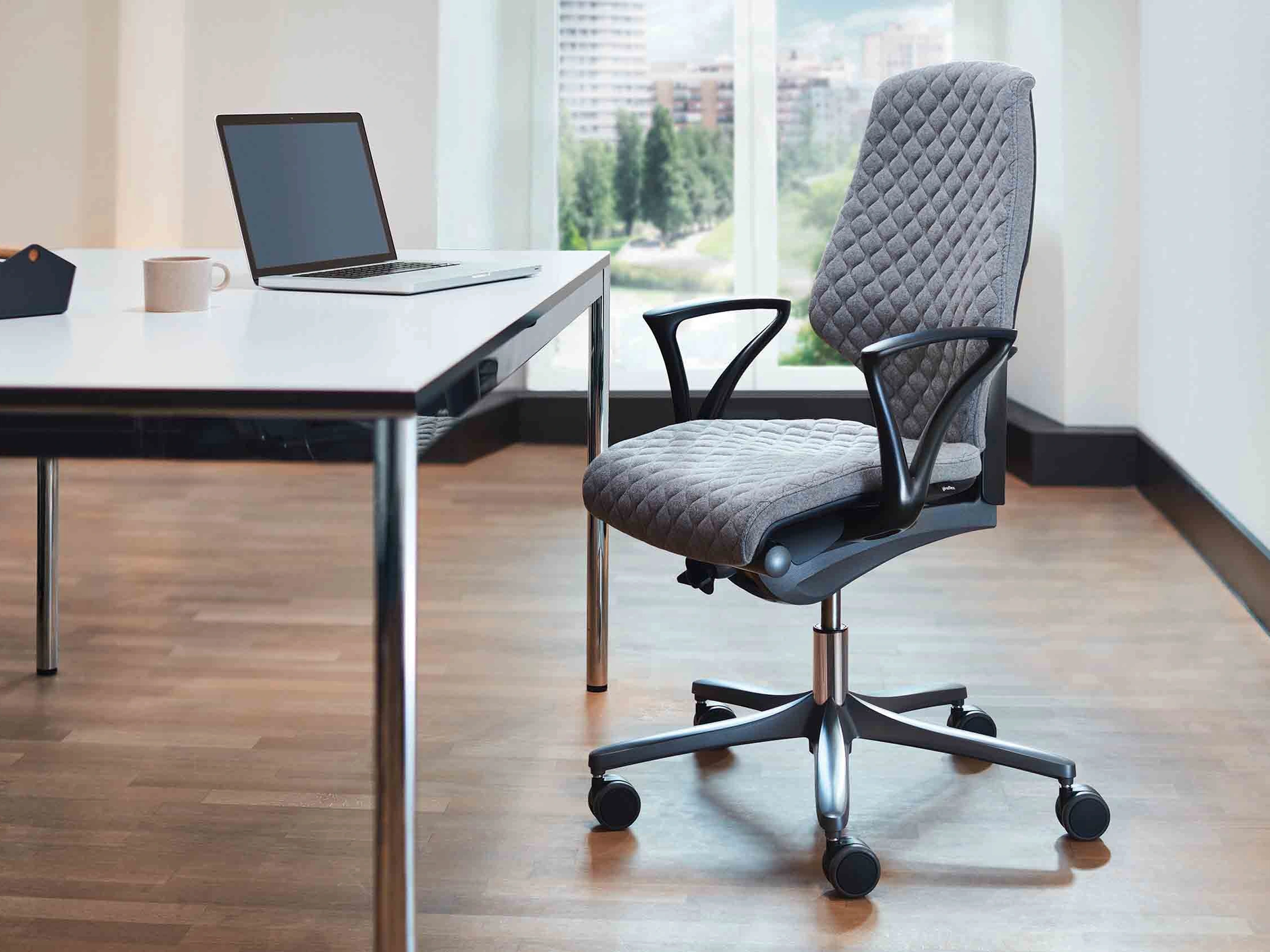 QUILT stoffering, Comfort bekleding, Organic Move Synchroonmechaniek met fijninstelling, 2-zone zitprofiel, rugleuning gestoffeerd, rugschaal in kunststof, standaard zithoogte: 40-52cm, rugleuning 7cm (55-62cm) & zitdiepte 2,5cm verstelbaar.