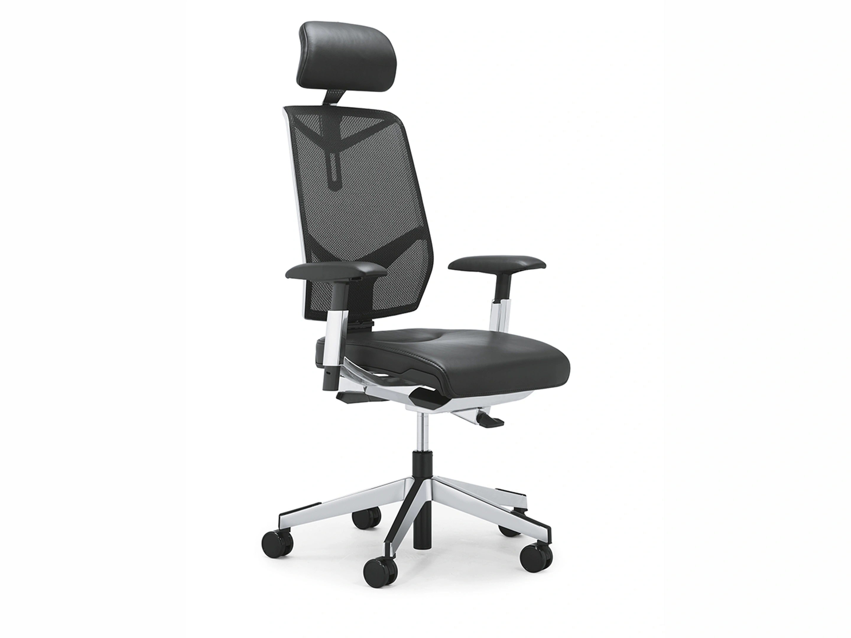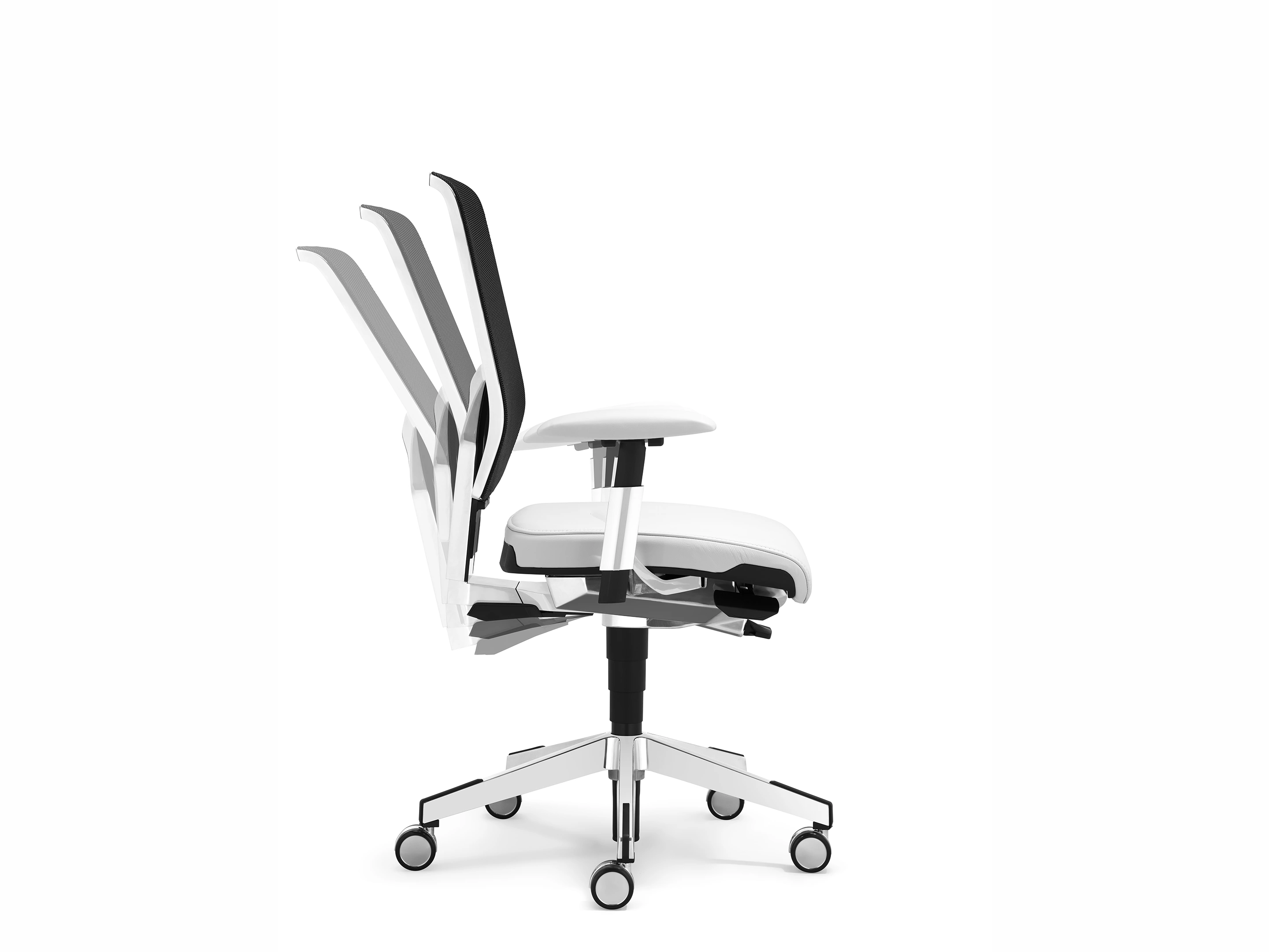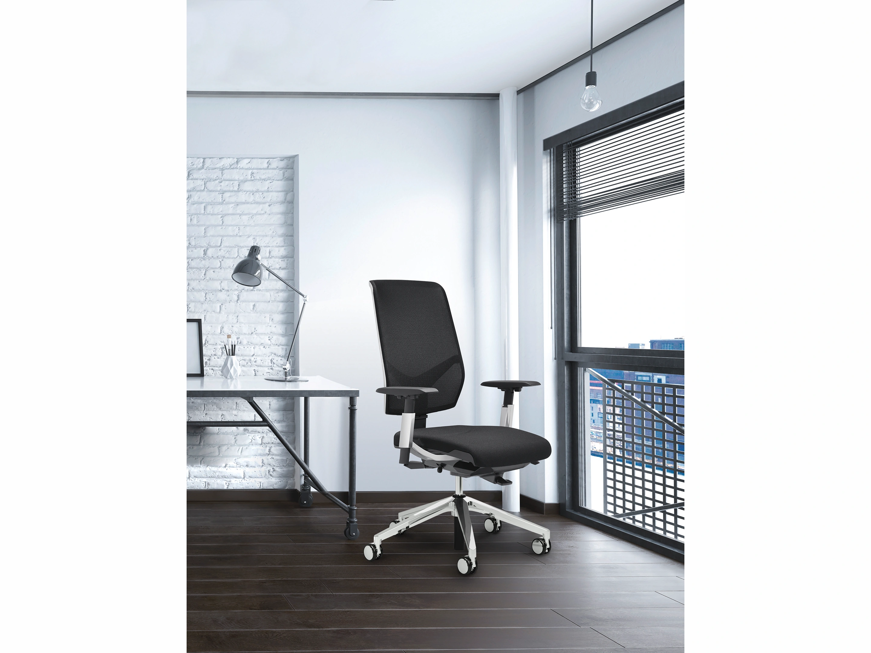 Organic Move synchroonmechaniek, 2-zone zitprofiel, zithoogte: 40-52cm, zitdiepte 5cm, rughoogte 7cm verstelbaar. Standaard kunststof voetkruis.