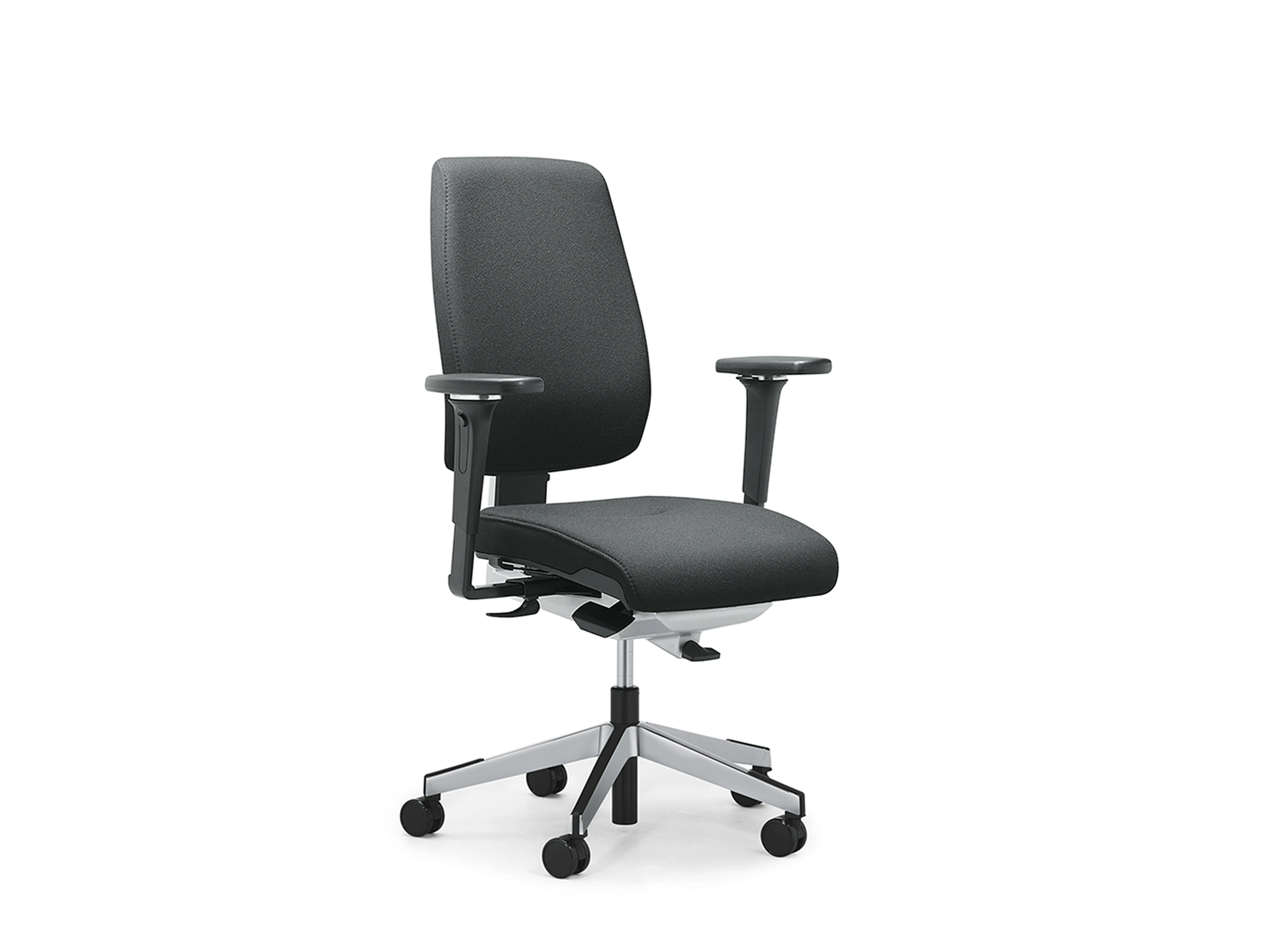 Organic Move synchroonmechaniek, 2-zone zitprofiel, zithoogte: 40-52cm, zitdiepte 5cm, rughoogte 7cm verstelbaar. Standaard kunststof voetkruis.