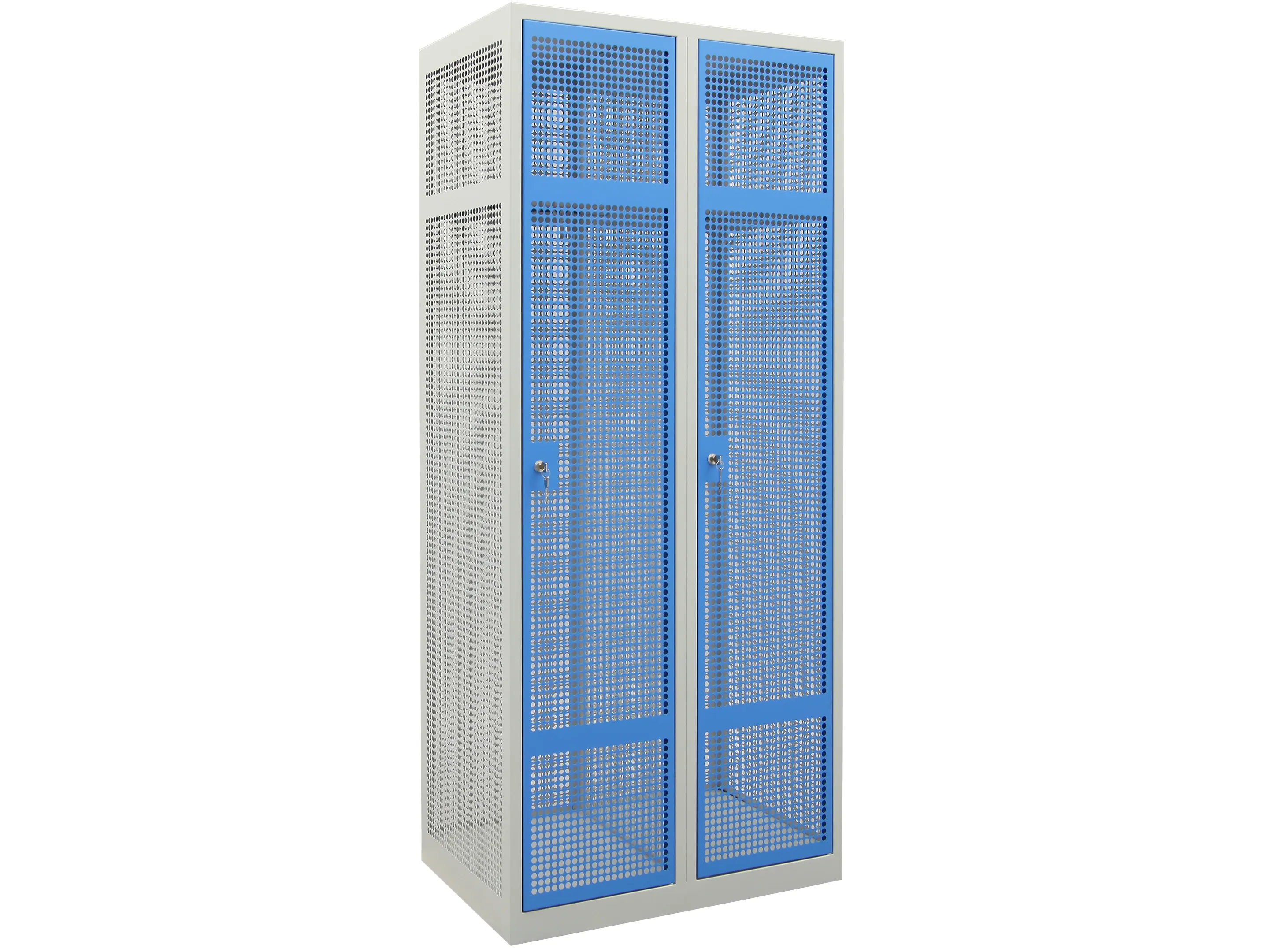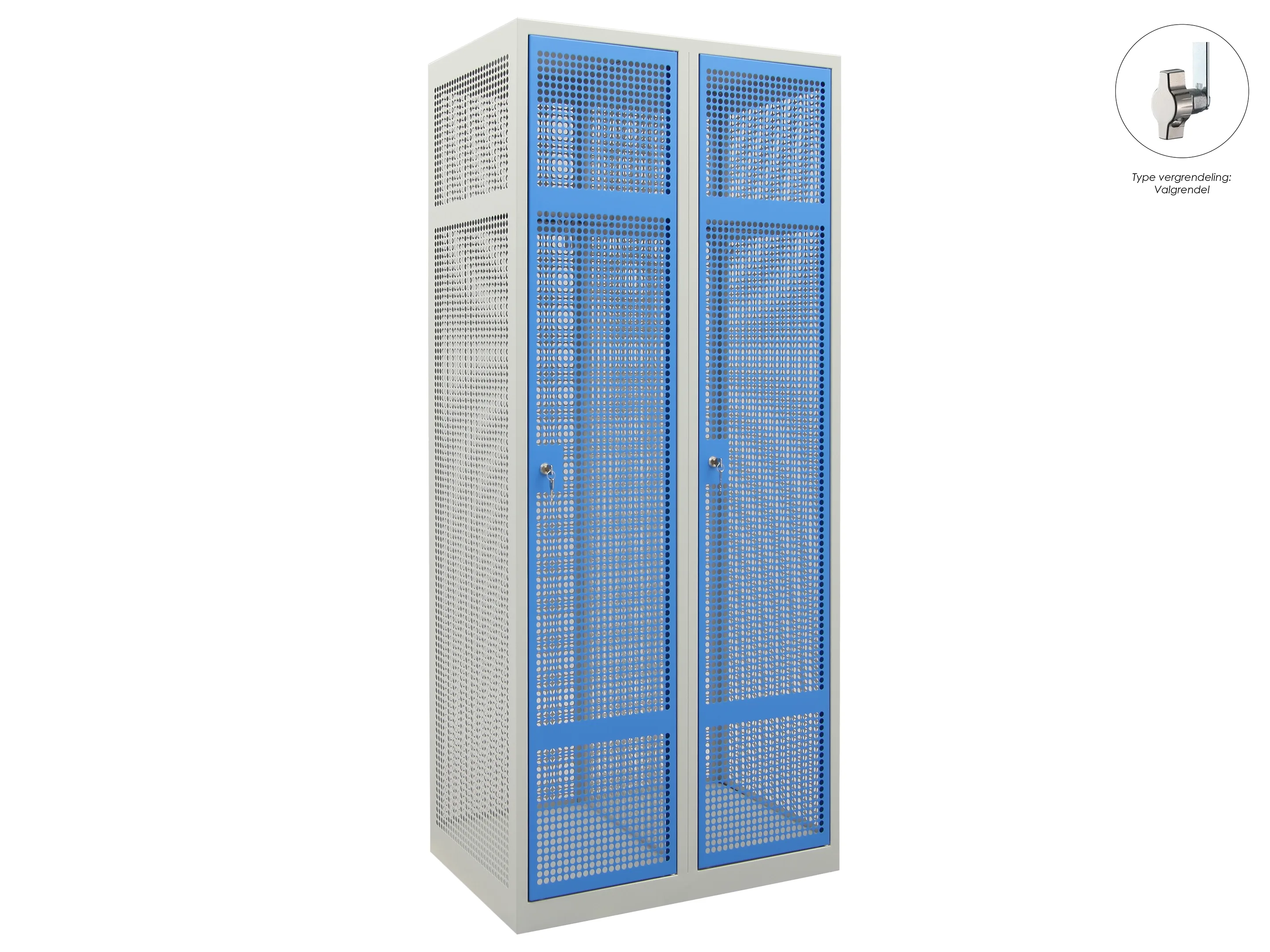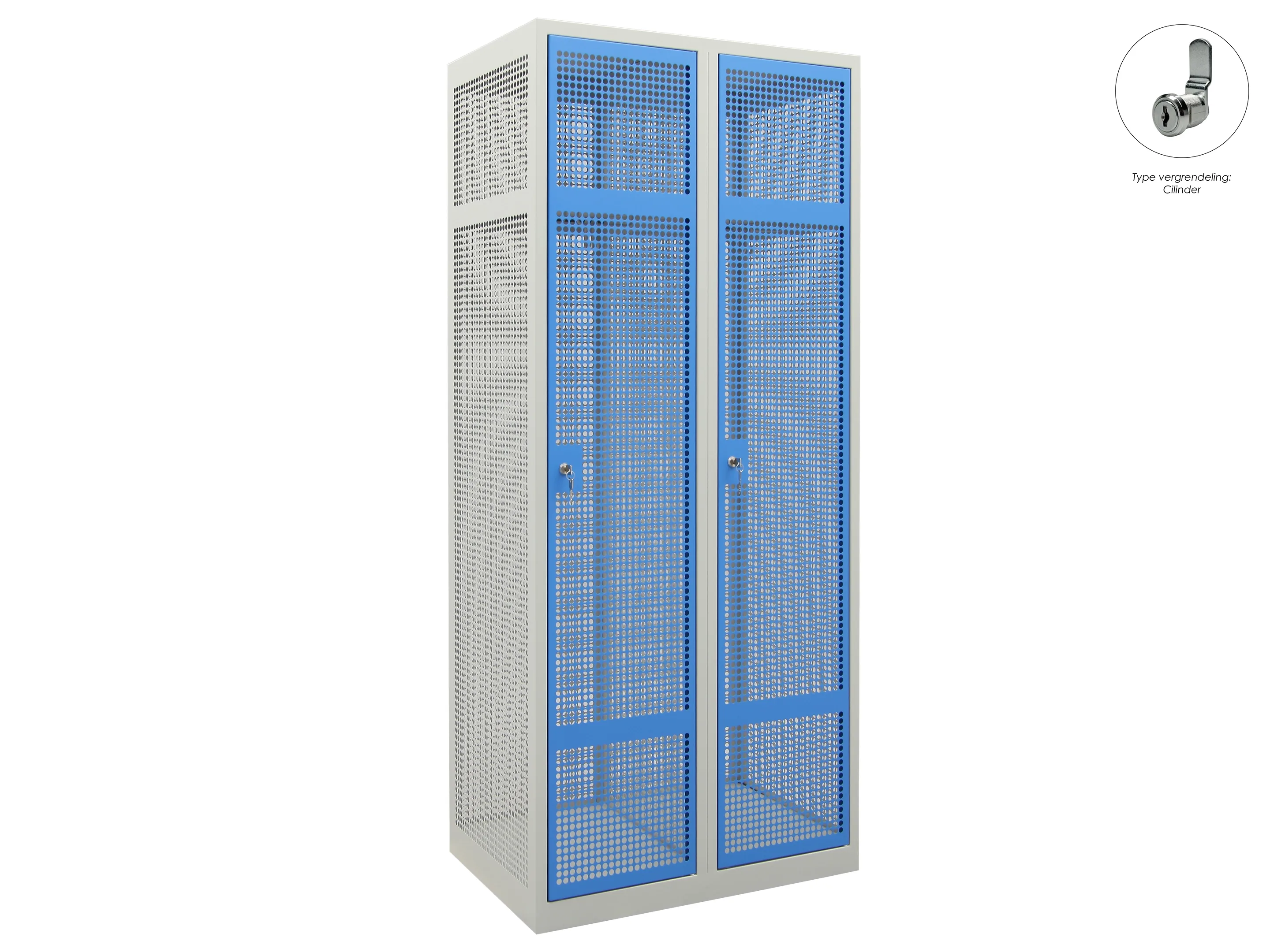 Gaas Garderobekast KT - 2 kolomen, 2 deuren, 180x60x50 cm, grijs/blauw, cilinder