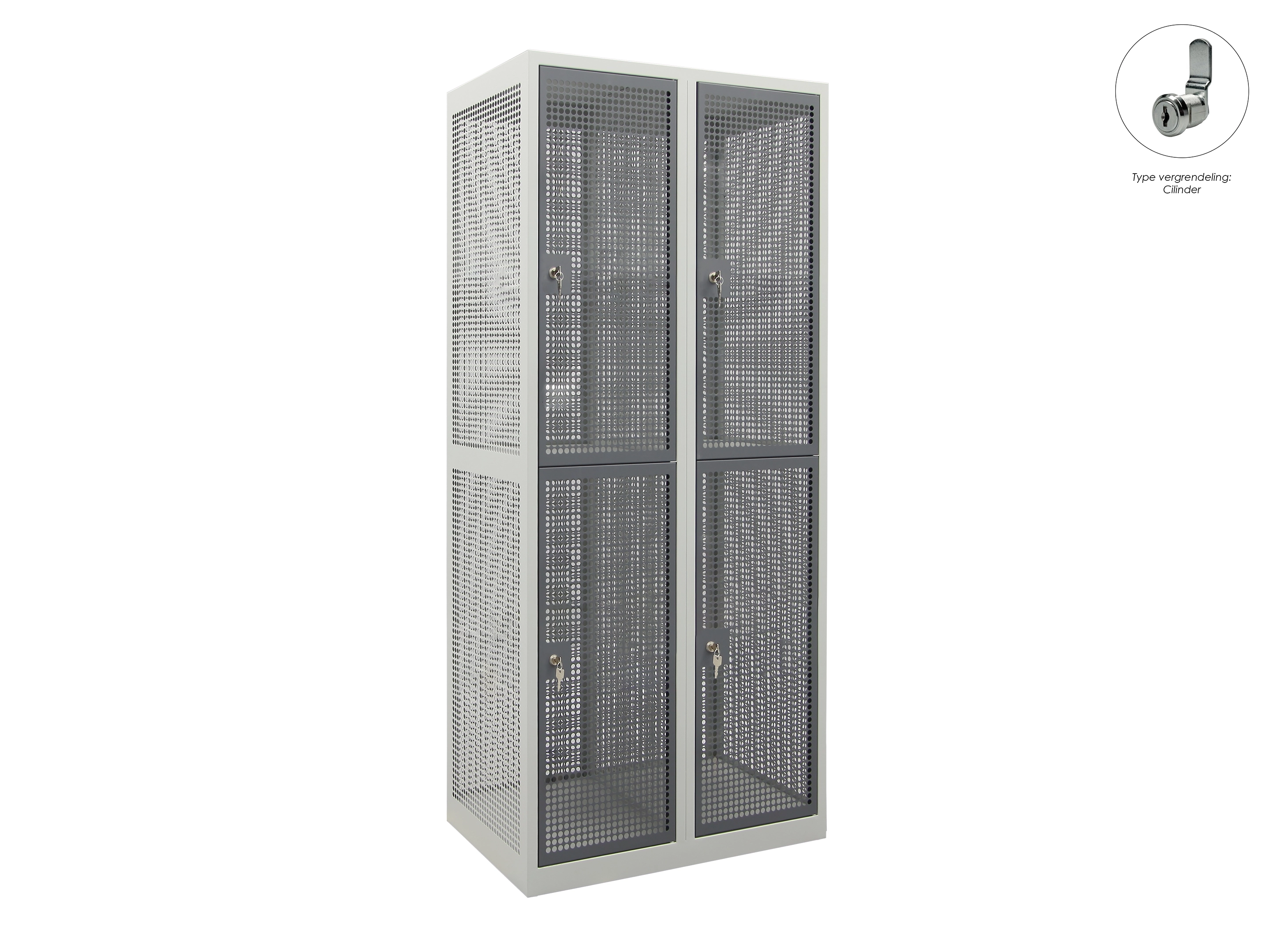 Gaas Garderobekast KT - 2 kolomen, 4 deuren, 180x80x50 cm, grijs/grijs, cilinder