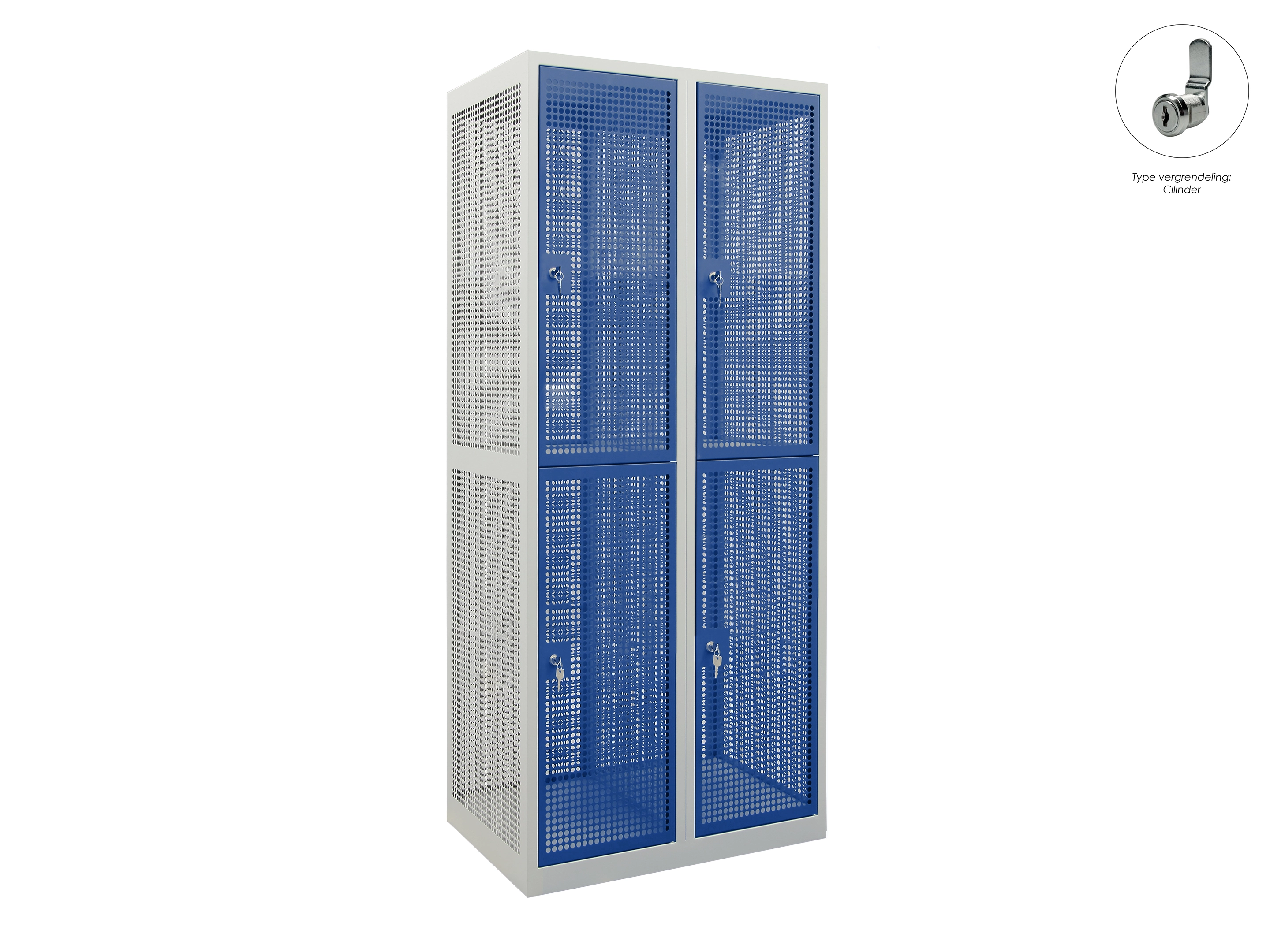Gaas Garderobekast KT - 2 kolomen, 4 deuren, 180x60x50 cm, grijs/blauw, cilinder