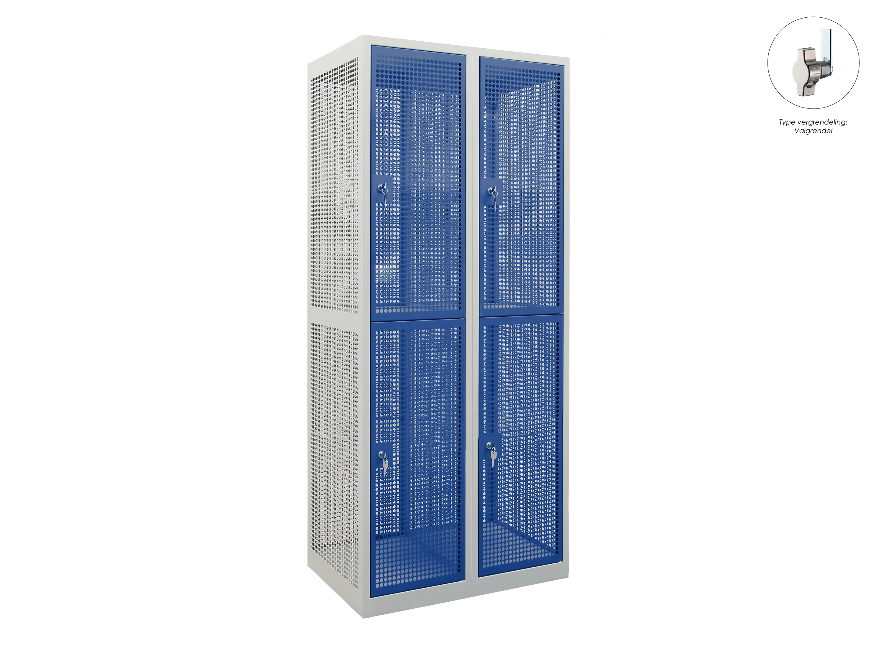Gaas Garderobekast KT - 2 kolomen, 4 deuren, 180x80x50 cm, grijs/blauw, cilinder