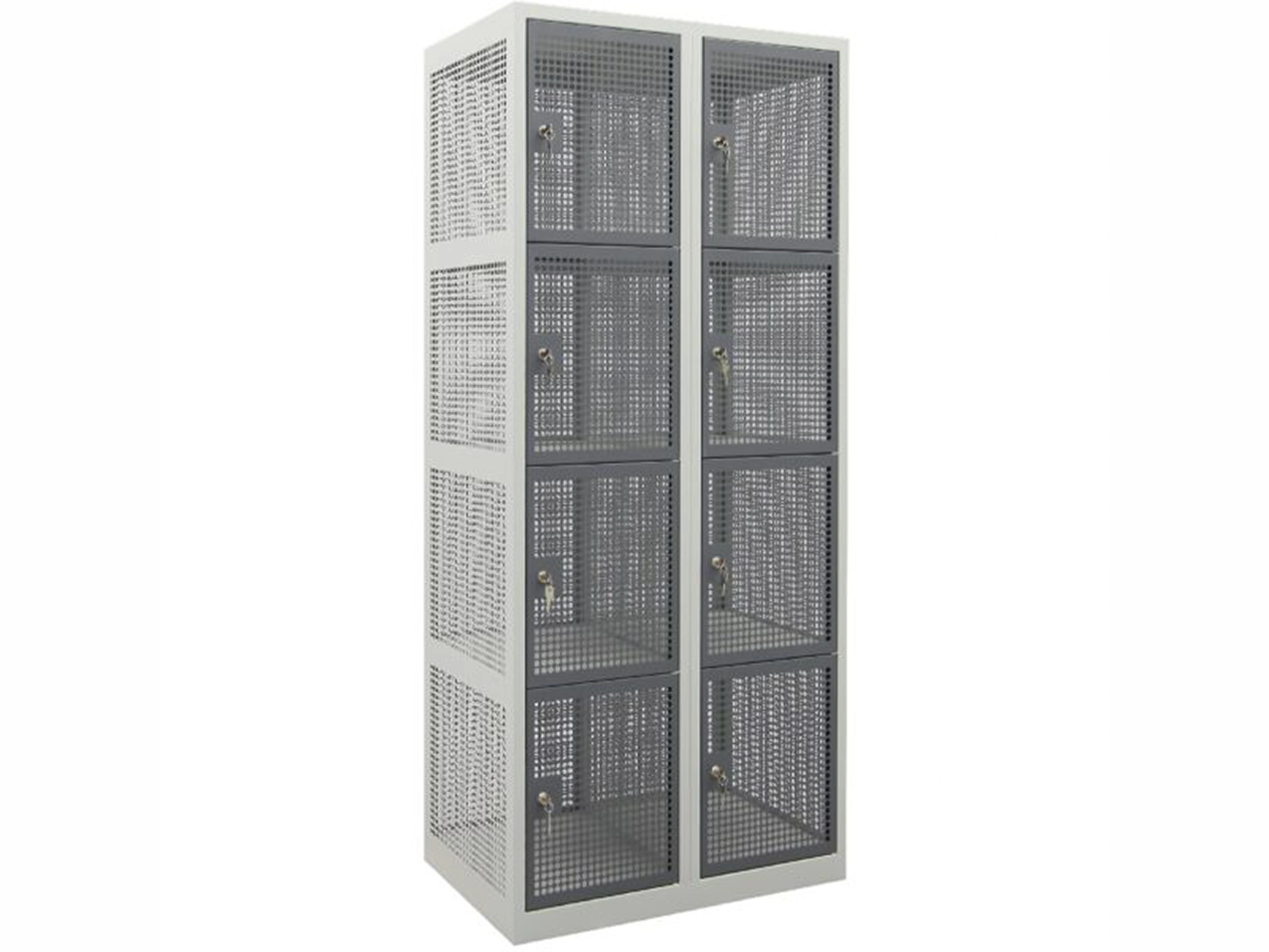 Gaasdeuren, slot: cilinderslot. Romp: grijs (RAL7035), kleur deuren: Aluminium (RAL9006) . Afmeting: 180x80x50 cm (HxBxD). Aantal sleutels per slot: 2. Kan uitgevoerd worden met speciale primer tegen vocht en weersinvloeden. Meerprijs bedraagt 15%.