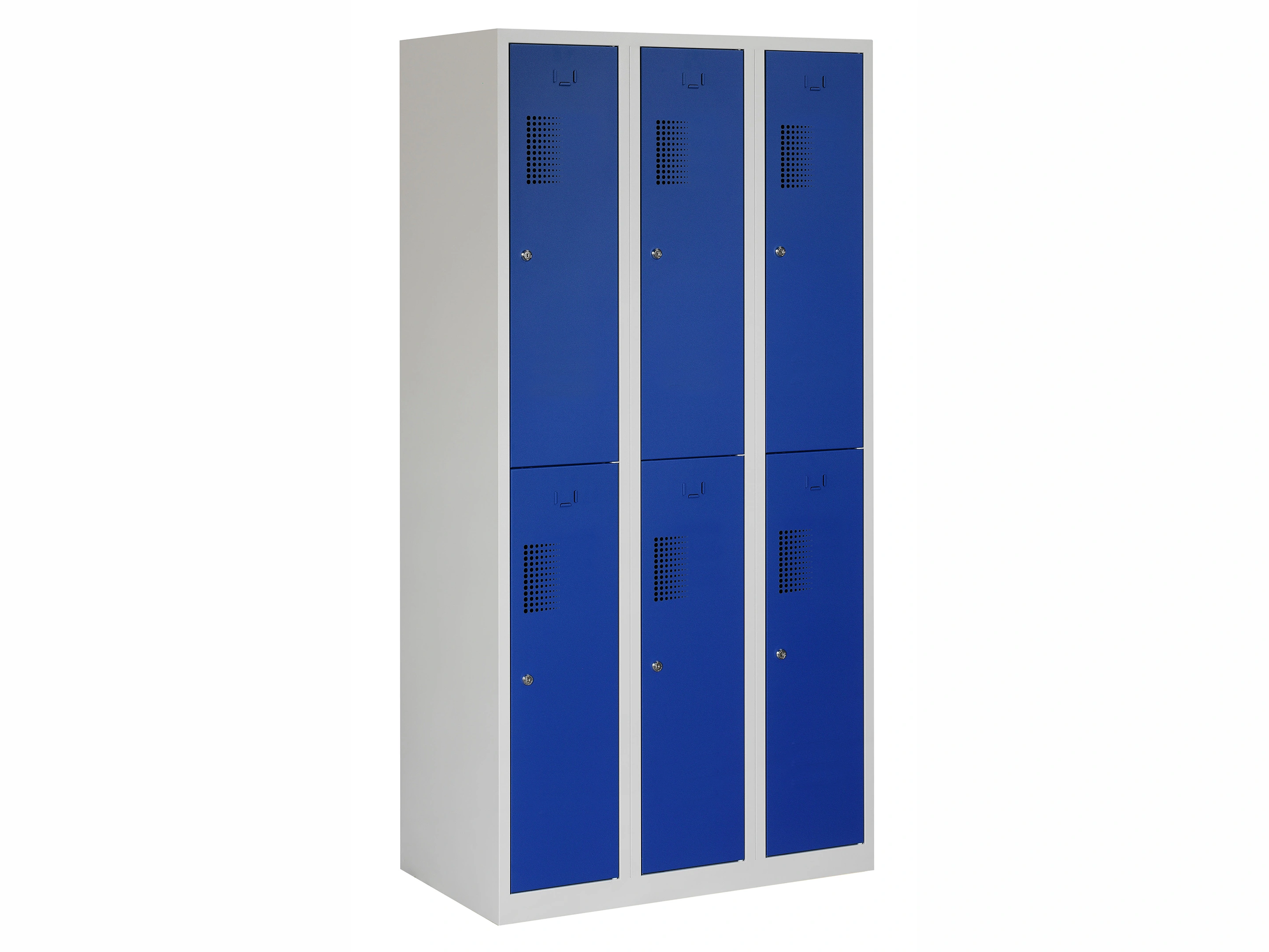 Garderobekast NH - 3 kolomen, 6 deuren, 180x90x50 cm, grijs/blauw, cilinder