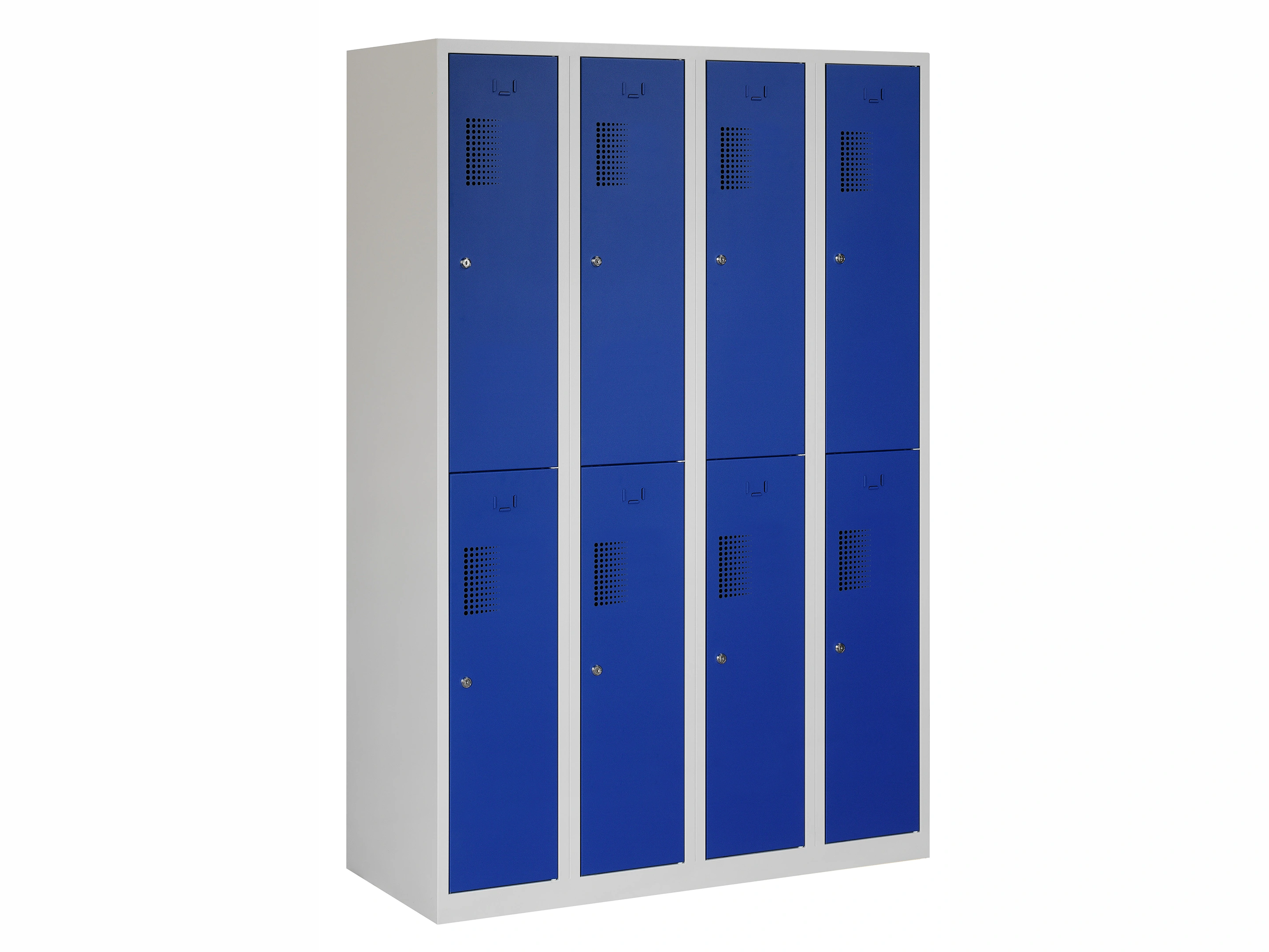 Garderobekast NH - 4 kolomen, 8 deuren, 180x120x50 cm, grijs/blauw, cilinder