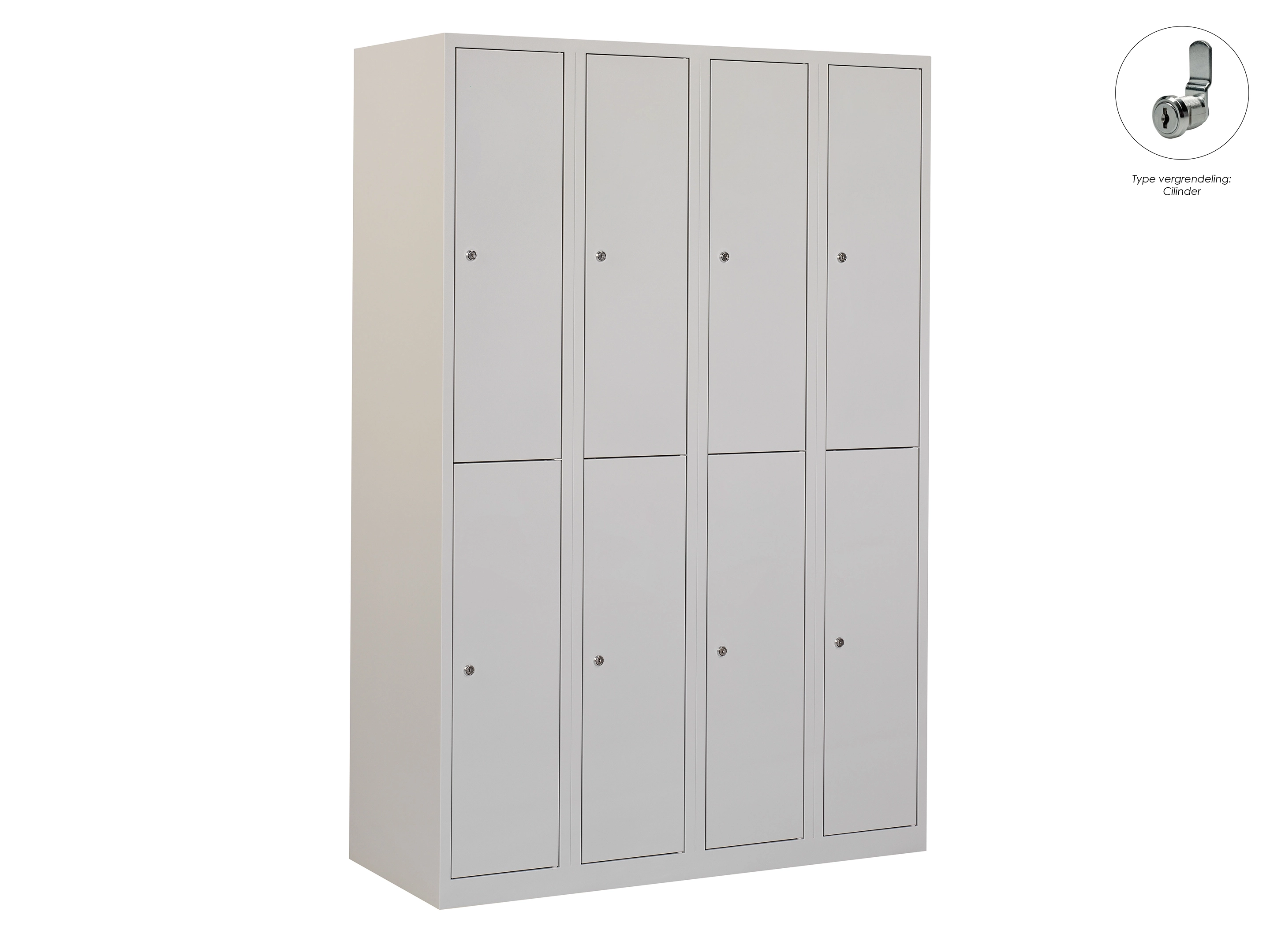Garderobekast PH - 4 kolomen, 8 deuren, 180x120x50 cm, grijs/grijs, cilinder