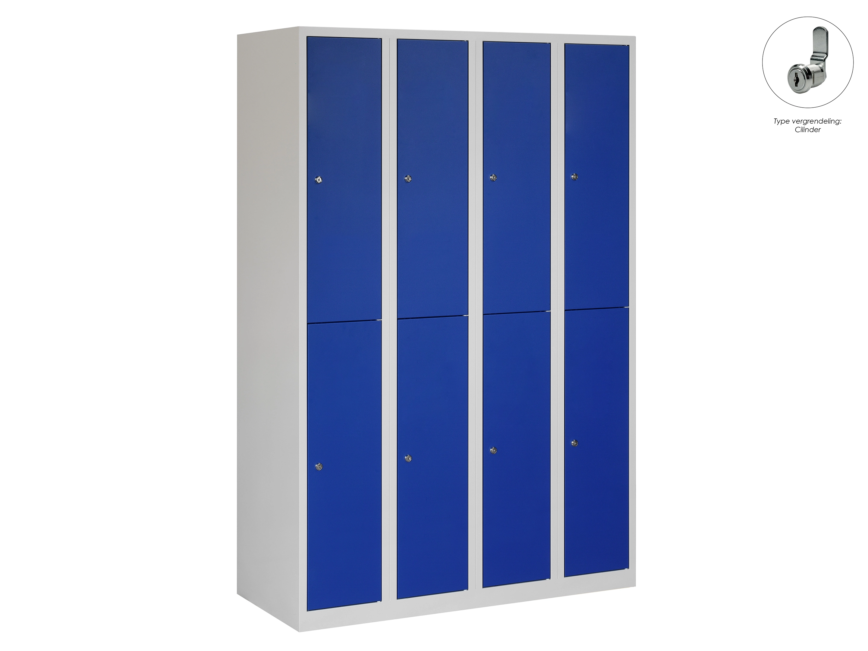 Garderobekast PH - 4 kolomen, 8 deuren, 180x120x50 cm, grijs/blauw, cilinder