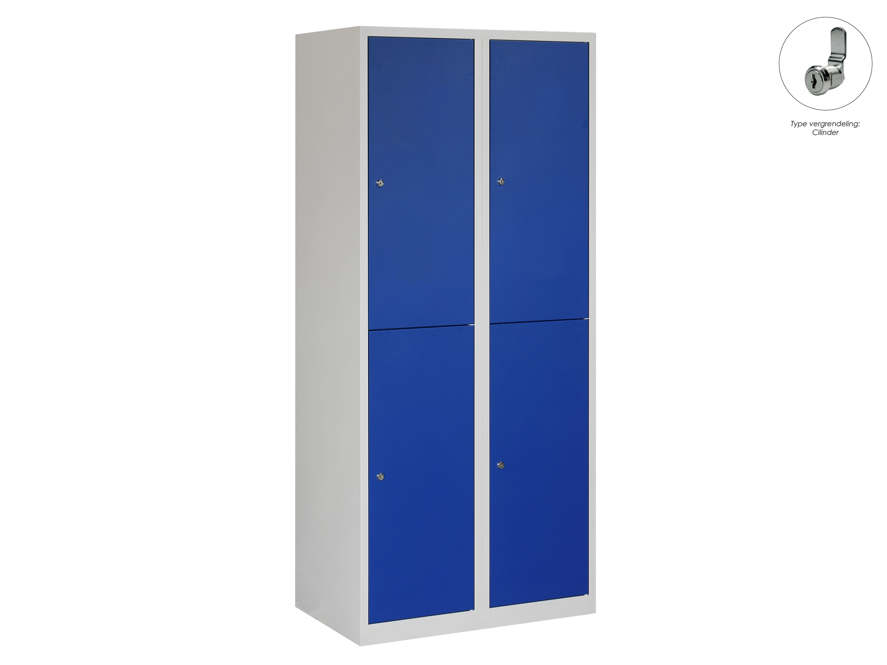 Garderobekast PH - 2 kolomen, 4 deuren, 180x80x50 cm, grijs/blauw, cilinder