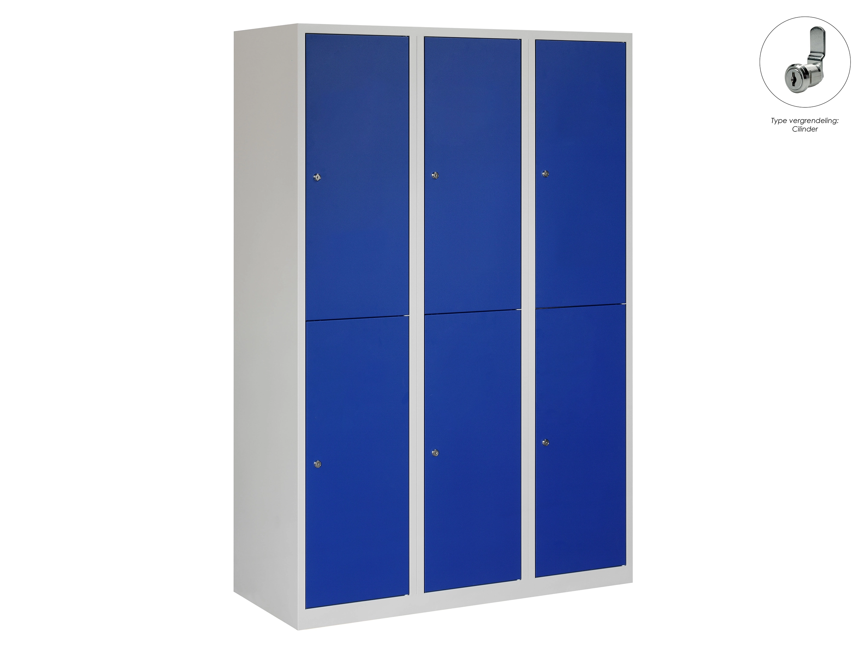Garderobekast PH - 3 kolomen, 6 deuren, 180x120x50 cm, grijs/blauw, cilinder