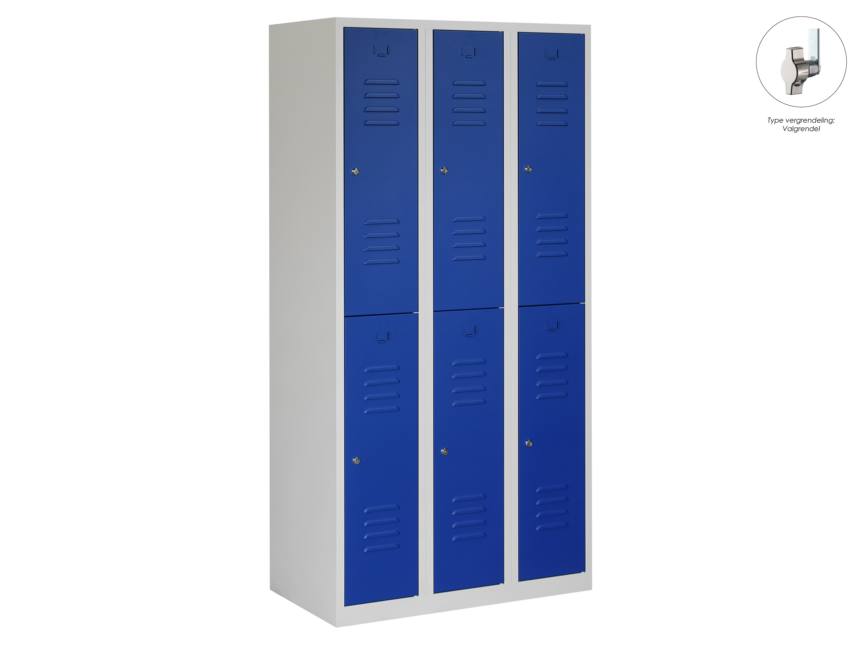 Garderobekast RH - 3 kolomen, 6 deuren, 180x90x50 cm, grijs/blauw, cilinder