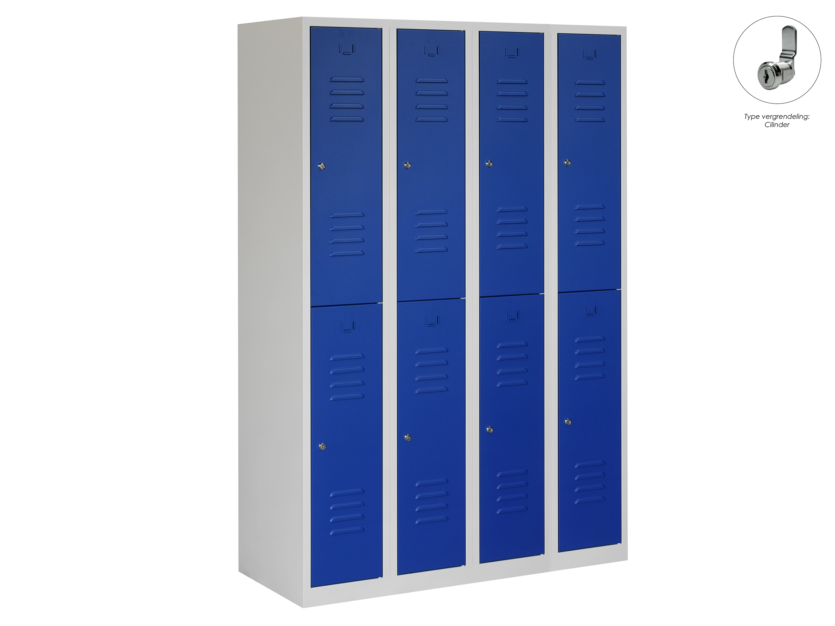 Garderobekast RH - 2 kolomen, 4 deuren, 180x60x50 cm, grijs/blauw, cilinder