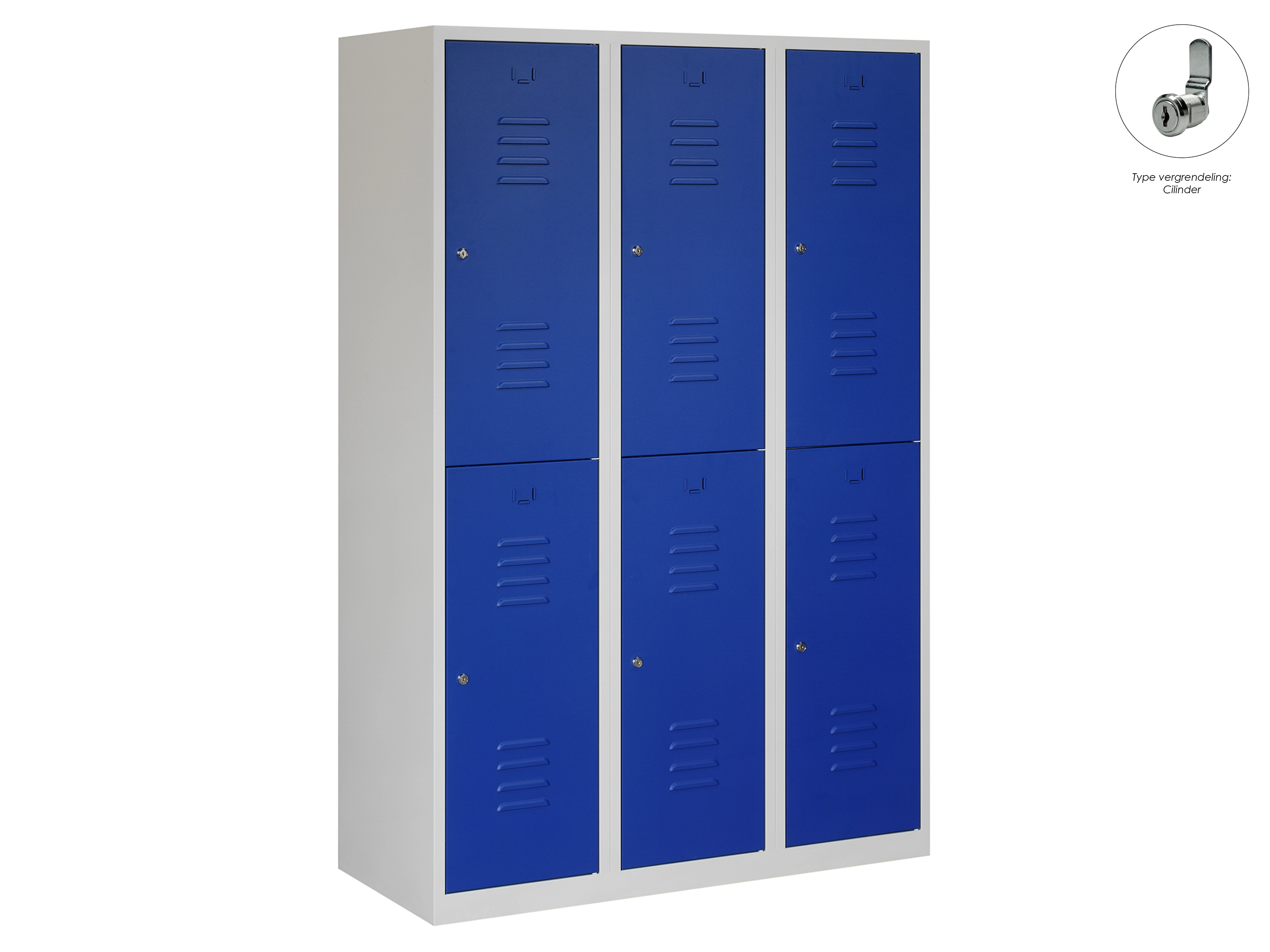 Garderobekast RH - 3 kolomen, 6 deuren, 180x120x50 cm, grijs/blauw, cilinder
