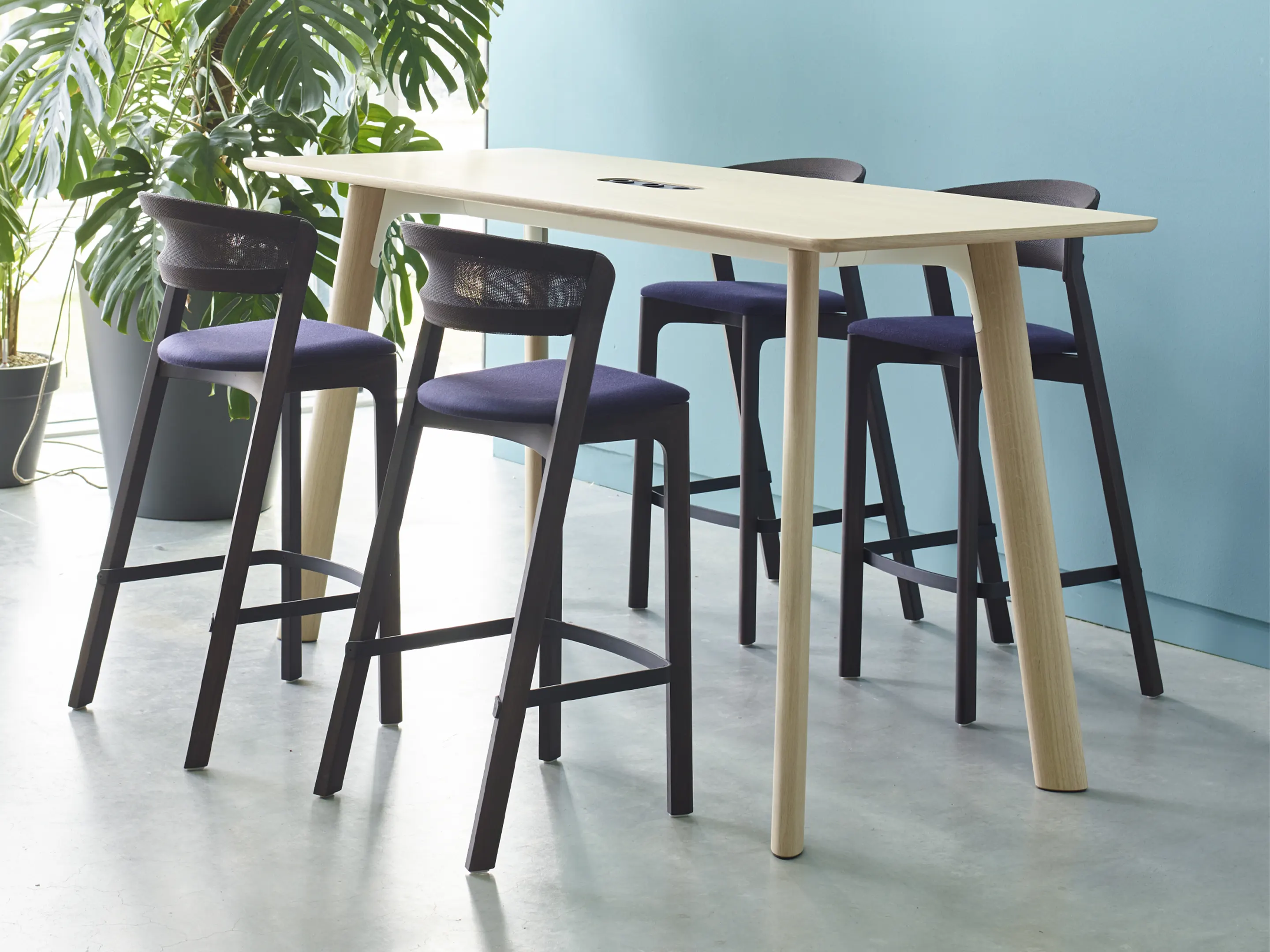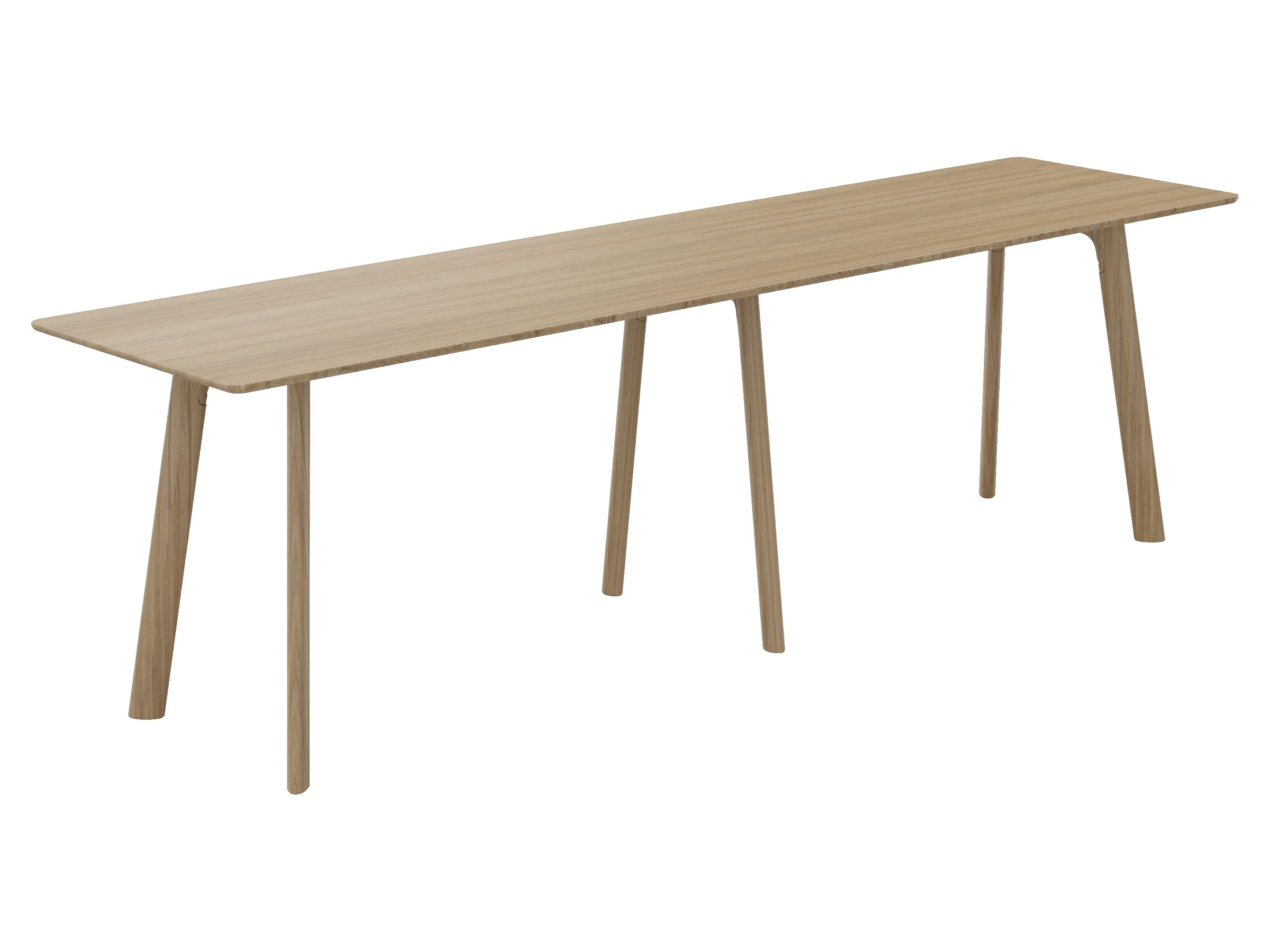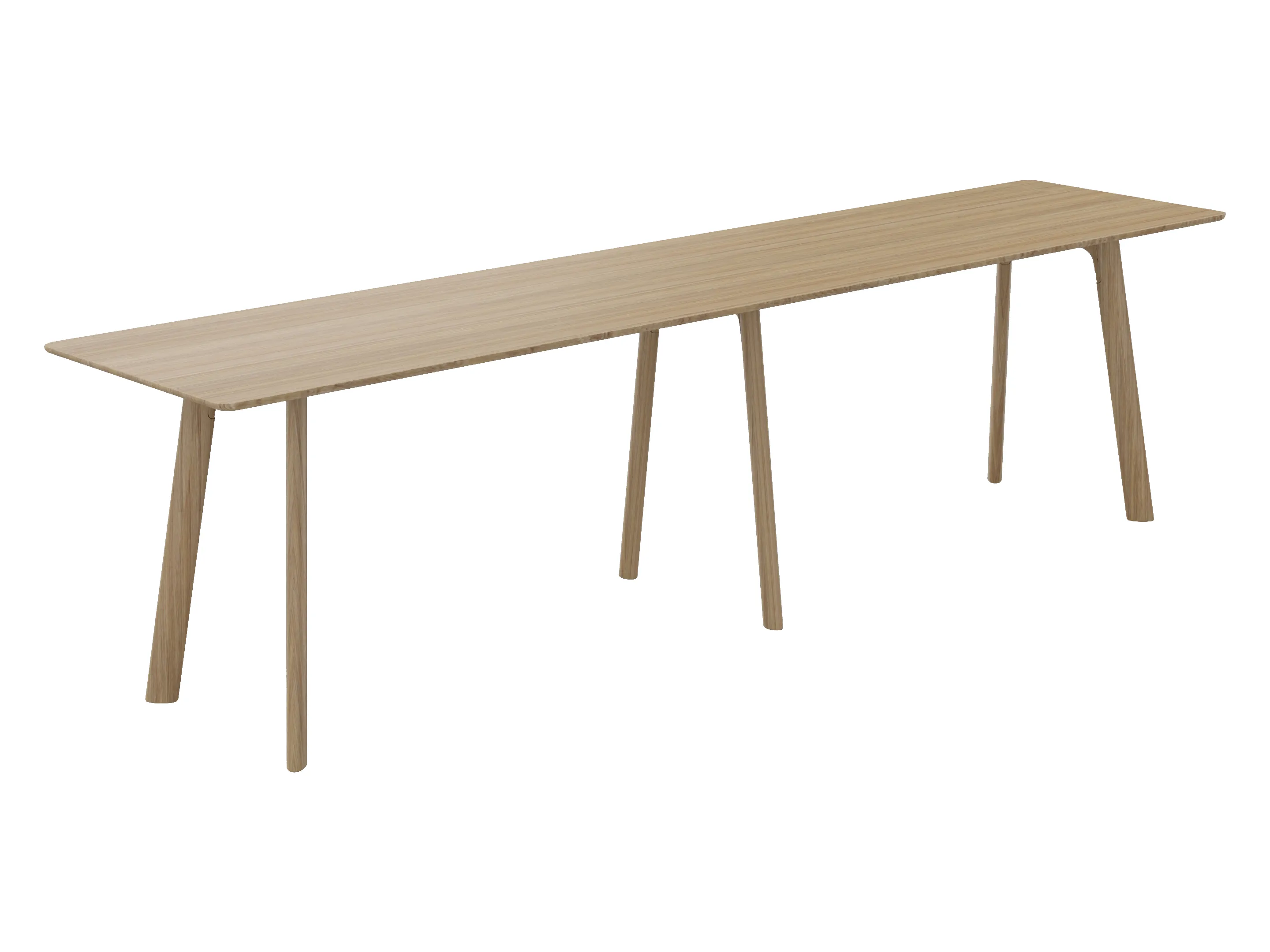 Statafel in rechthoekige vorm bestaande uit 2 bladen en 6 poten. Afmeting: 3600 x 900 x 1050mm (BxDxH)