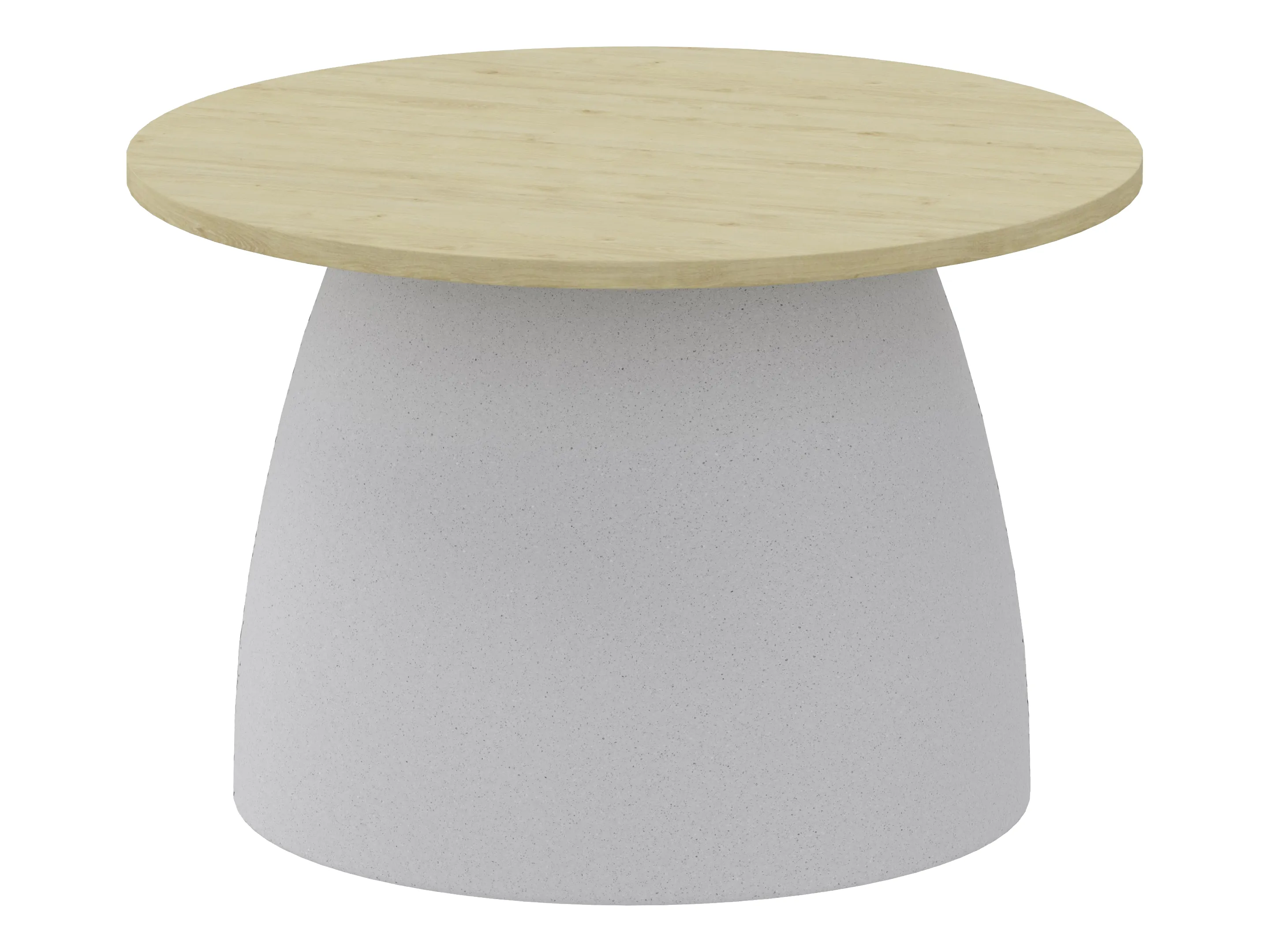 Bijzettafel met een blad van Ø 650mm op een kolompoot. Hoogte: 440mm.