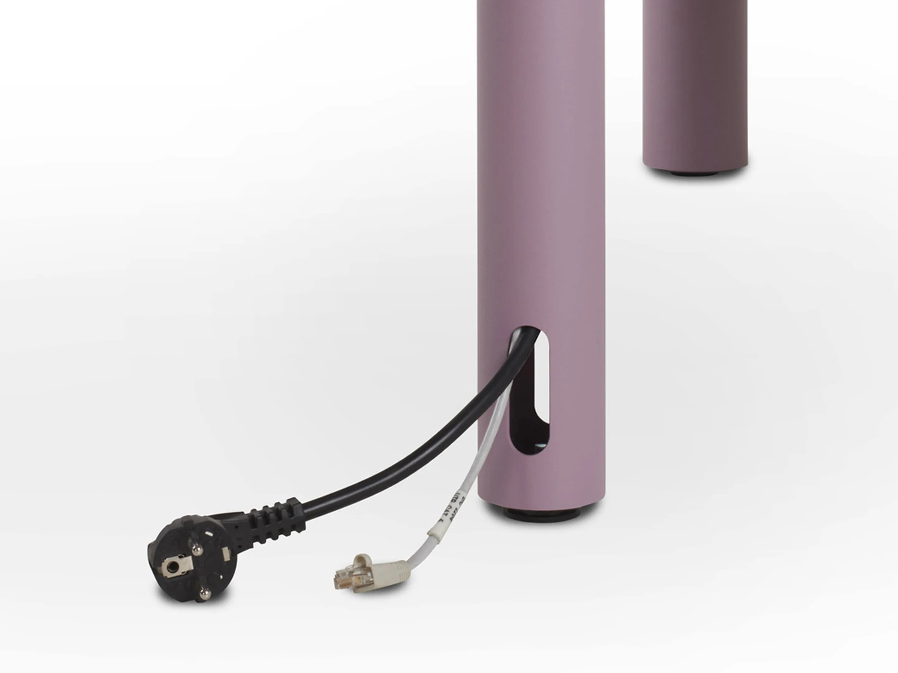 Vergadertafel, elektrisch verstelbaar tussen 650-1300mm. Compleet met rond blad met Ø 1400mm met 4x 100mm teruggeplaatste poten.