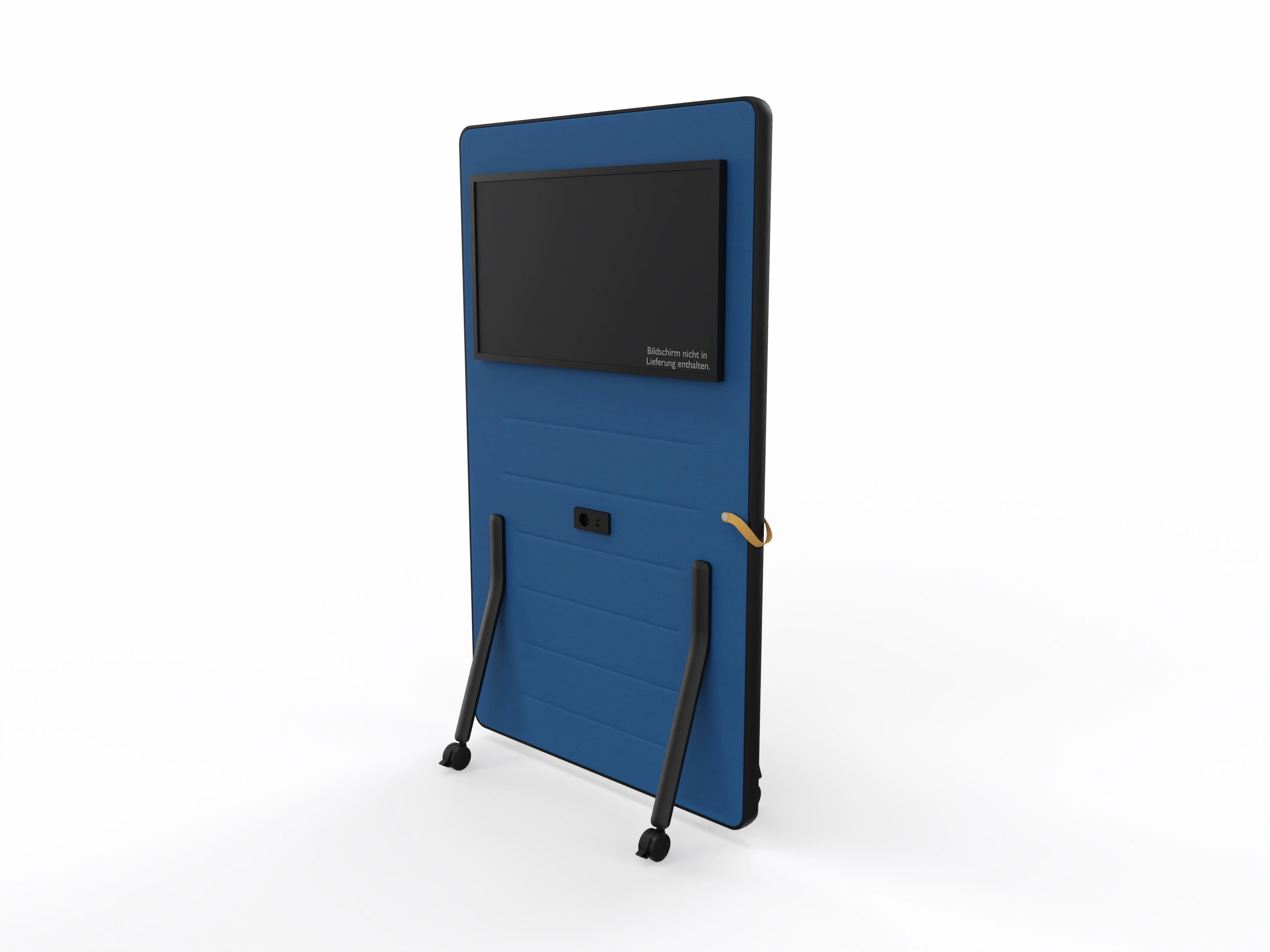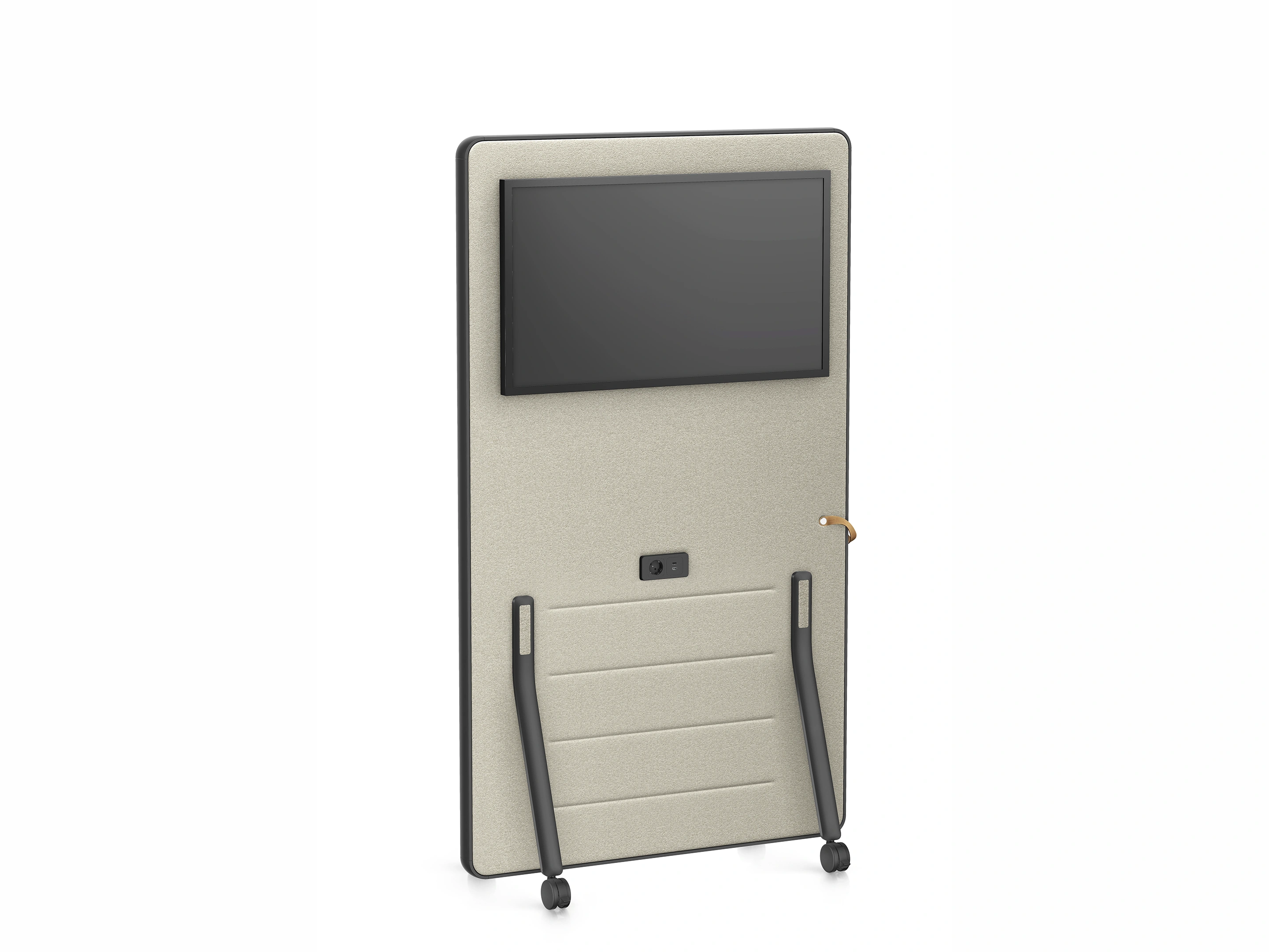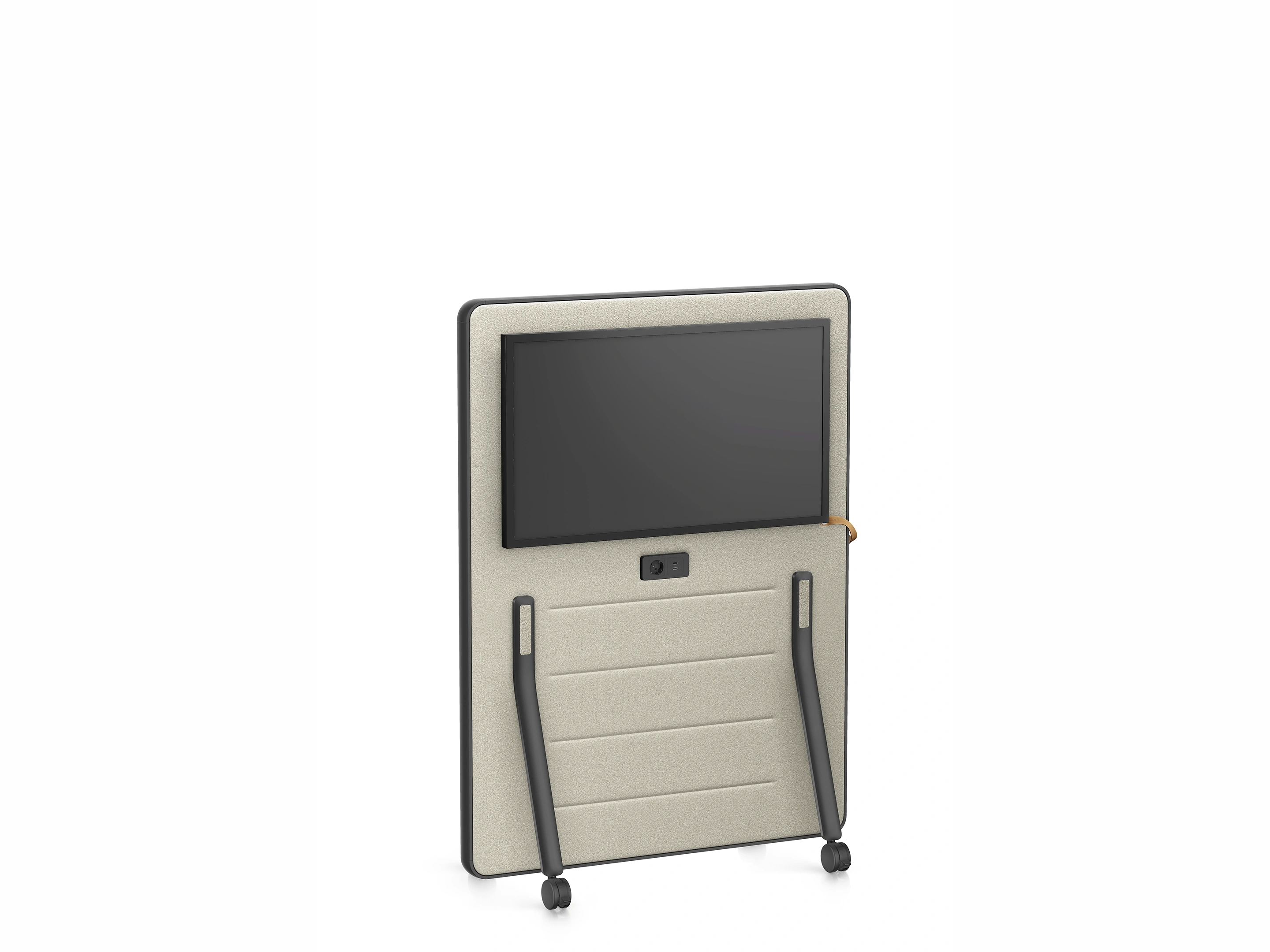 Verrijdbare & gestoffeerde media wand. Incl. universele beeldschermbevestiging en geschikt voor schermen tot 46inch. Aansluitingen voorzijde: Stroom (220V), HDMI & USB. Contactdoos geintegreerd. Afmeting: H:1500mm x B:1100mm x D:520mm.
