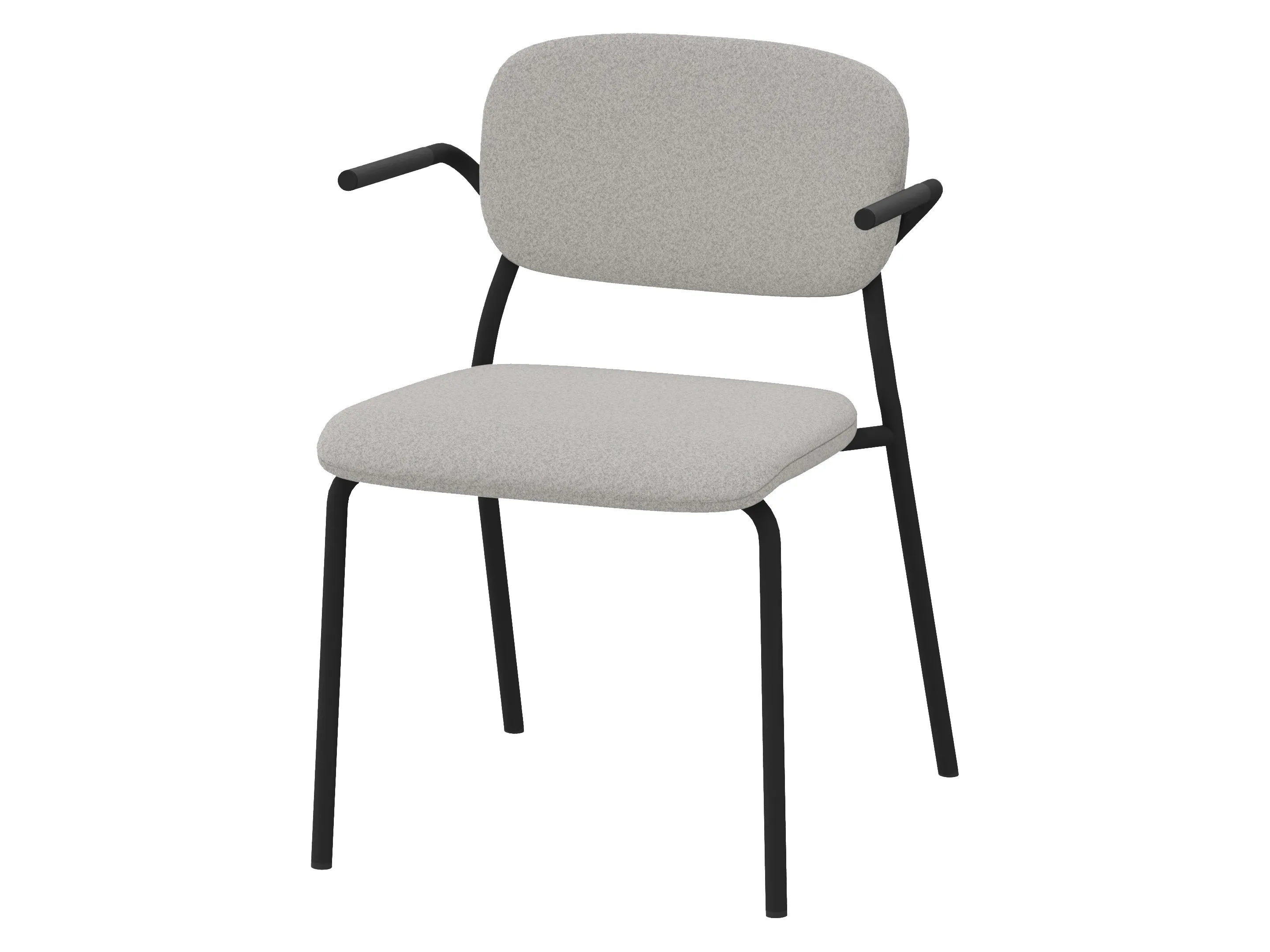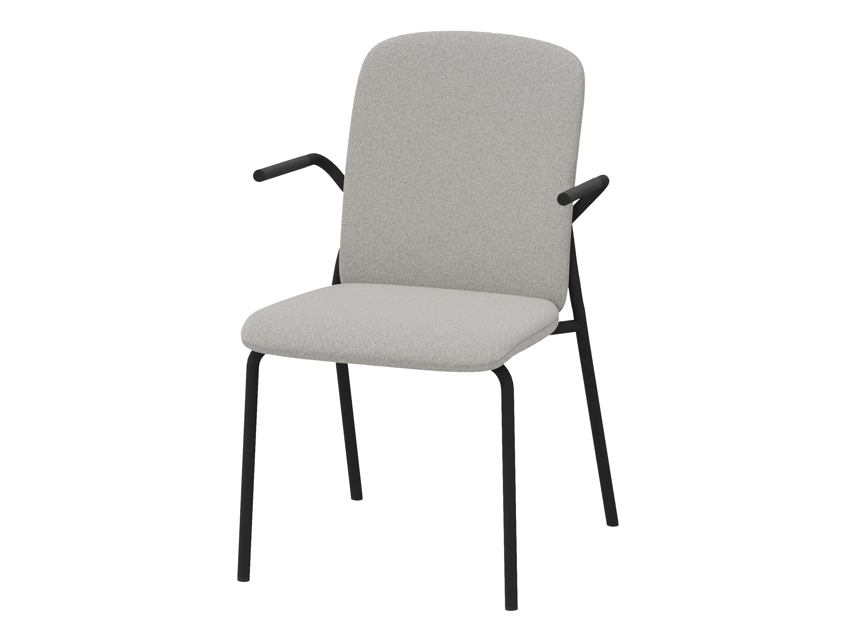 Volledig gestoffeerde bijzetstoel met korte rug op een 4-poots frame op glijders. Met armleuningen. Stapelbaar tot 4 stuks. Afmeting: 570 x 590 x 920mm (B x D x H). Zithoogte 470mm.