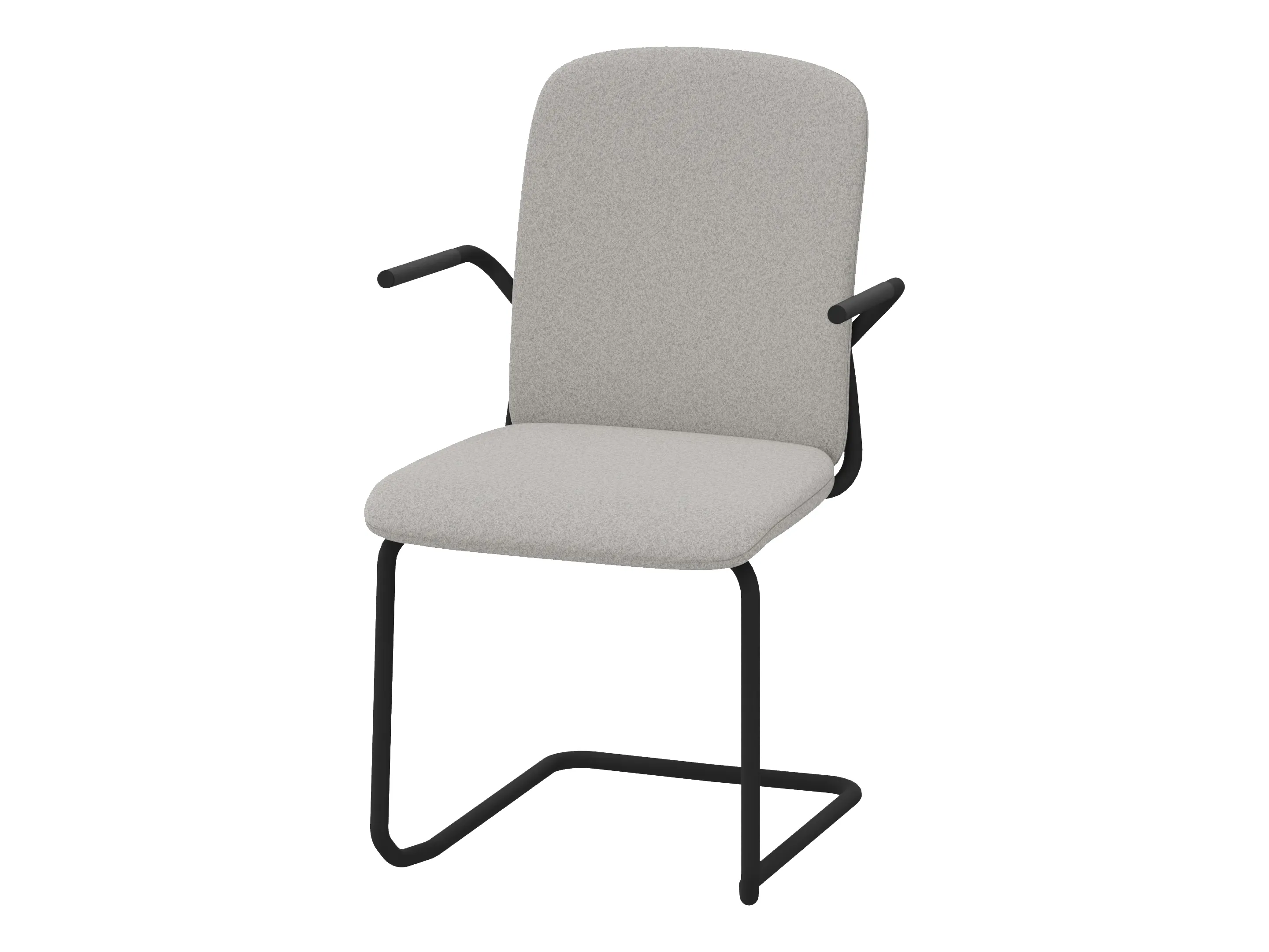 Volledig gefineerde bijzetstoel met een korte rug op een sledeframe op glijders. Met armleuningen. Stapelbaar tot 4 stuks. Afmeting: 570 x 580 x 820mm (B x D x H). Zithoogte 440mm.