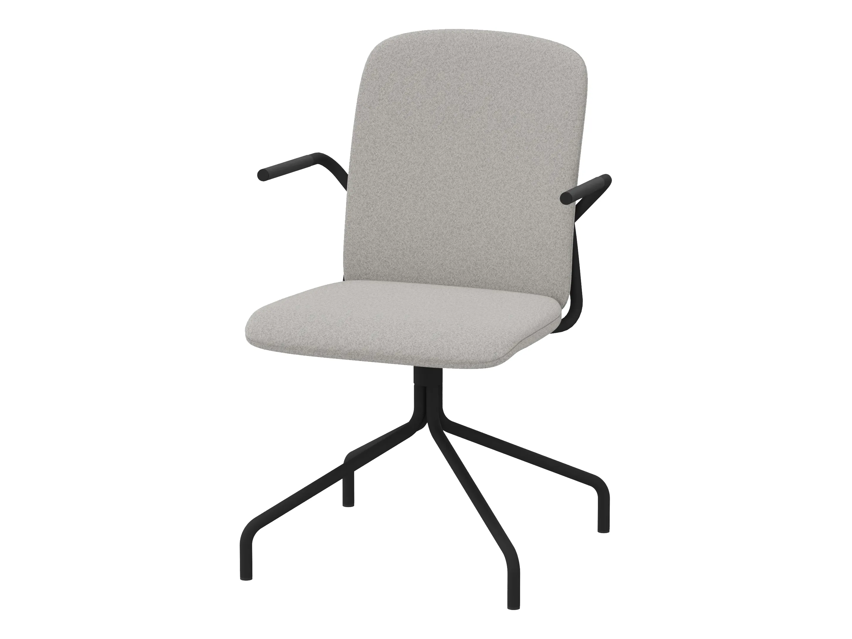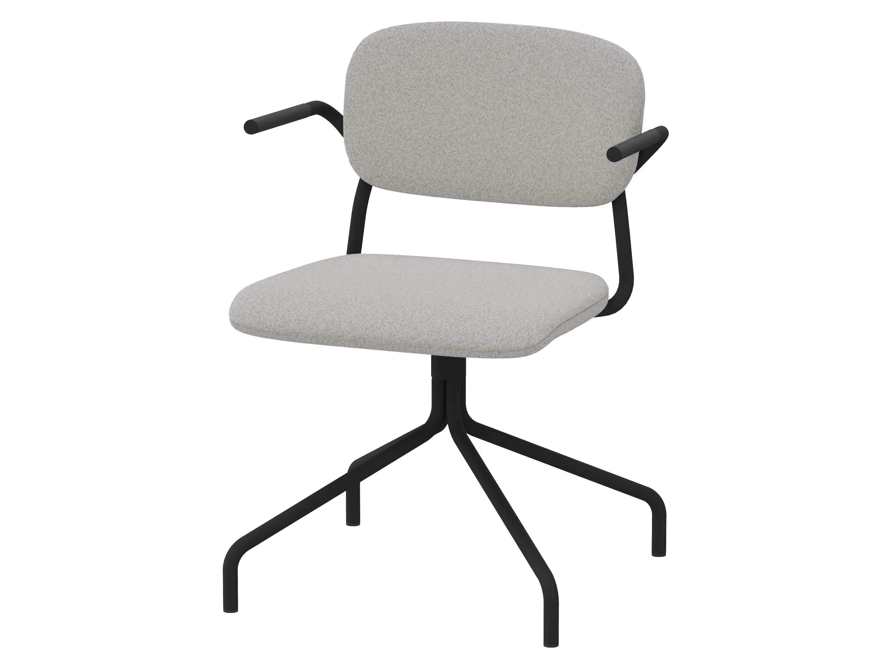 Volledig gestoffeerde bijzetstoel op een 4-teens kruis op glijders. Incl. armleuningen, draaibaar. Afmeting: 570 x 590 x 920mm. Zithoogte 470mm.