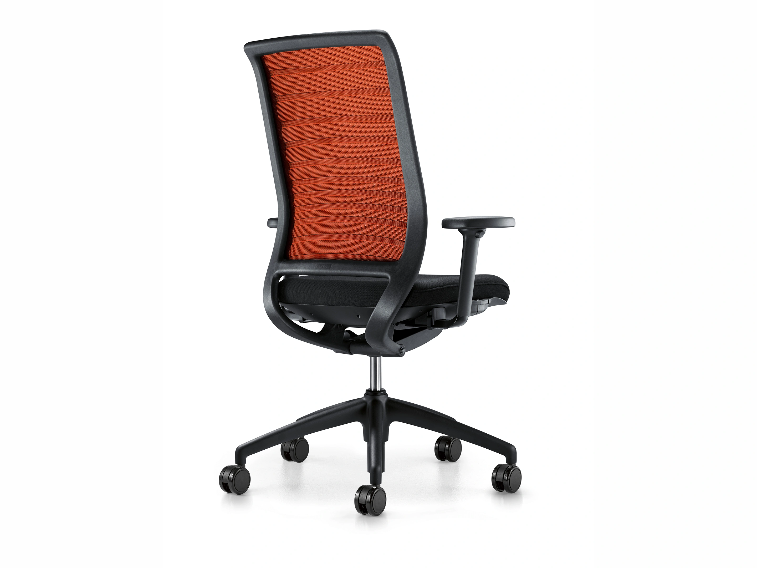 Gestoffeerde rugbekleding, Autofit synchroonmechaniek (incl. fijnafstelling!), instellingen duidelijk zichtbaar op het bedienpaneel, standaard kunststof voetkruis.