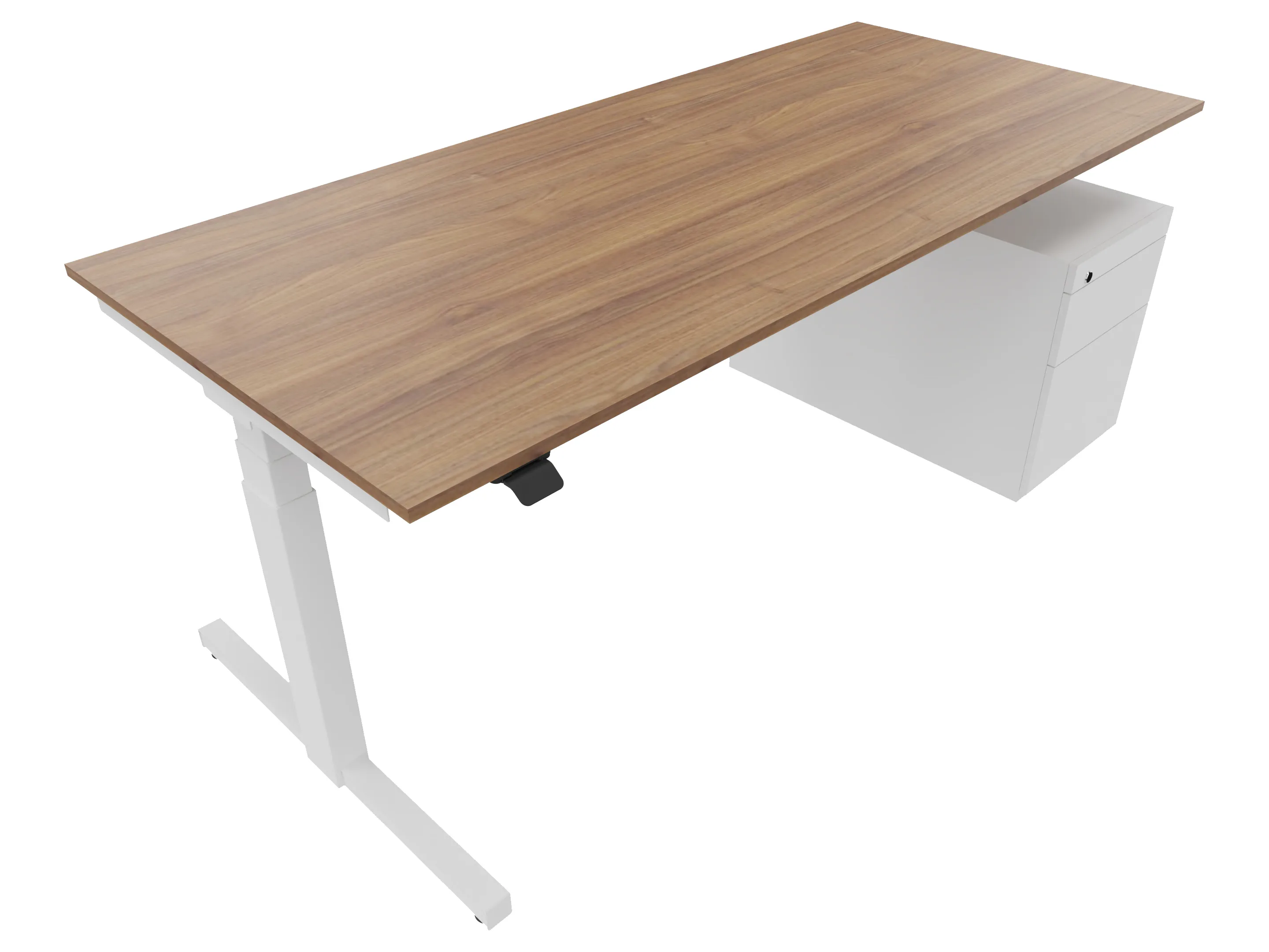 Zit-sta bureau, elektrisch verstelbaar tussen 640-1300mm, compleet met 1 werkblad van 1600 x 800mm, T-poten en hoog-Raag bediening (gemonteerd onder blad), ladenblok (rechts gemonteerd), met hangmappenlade.