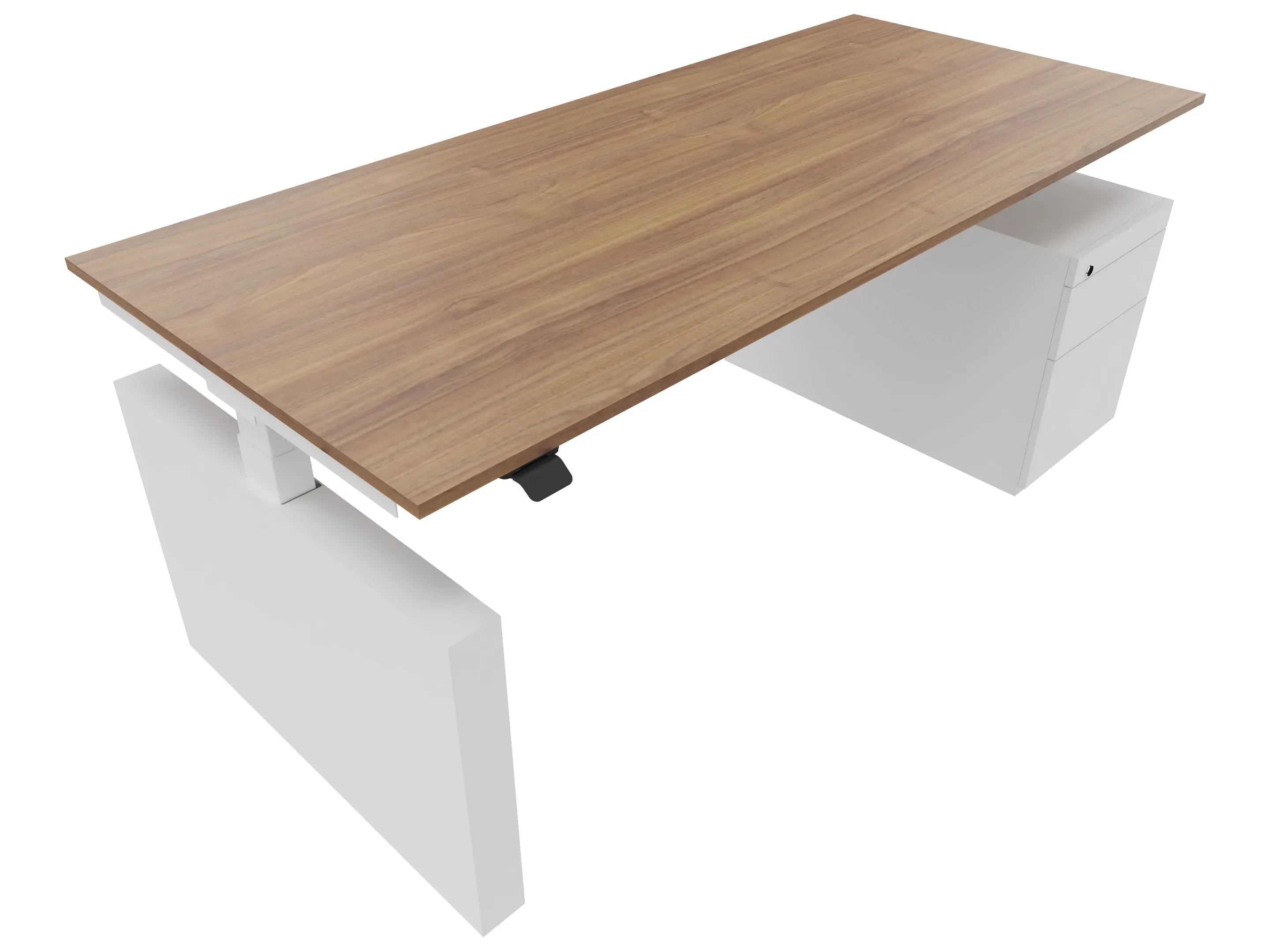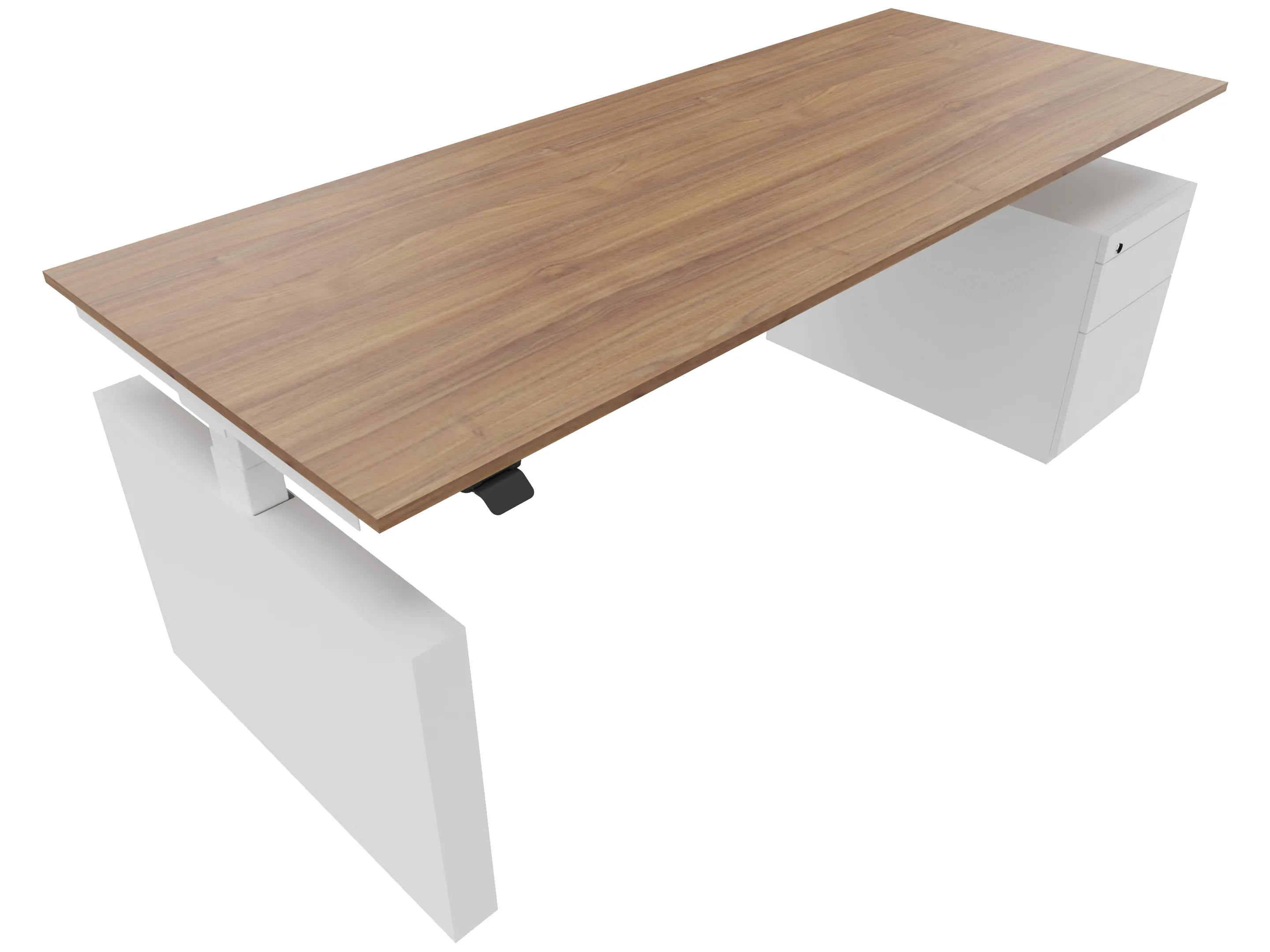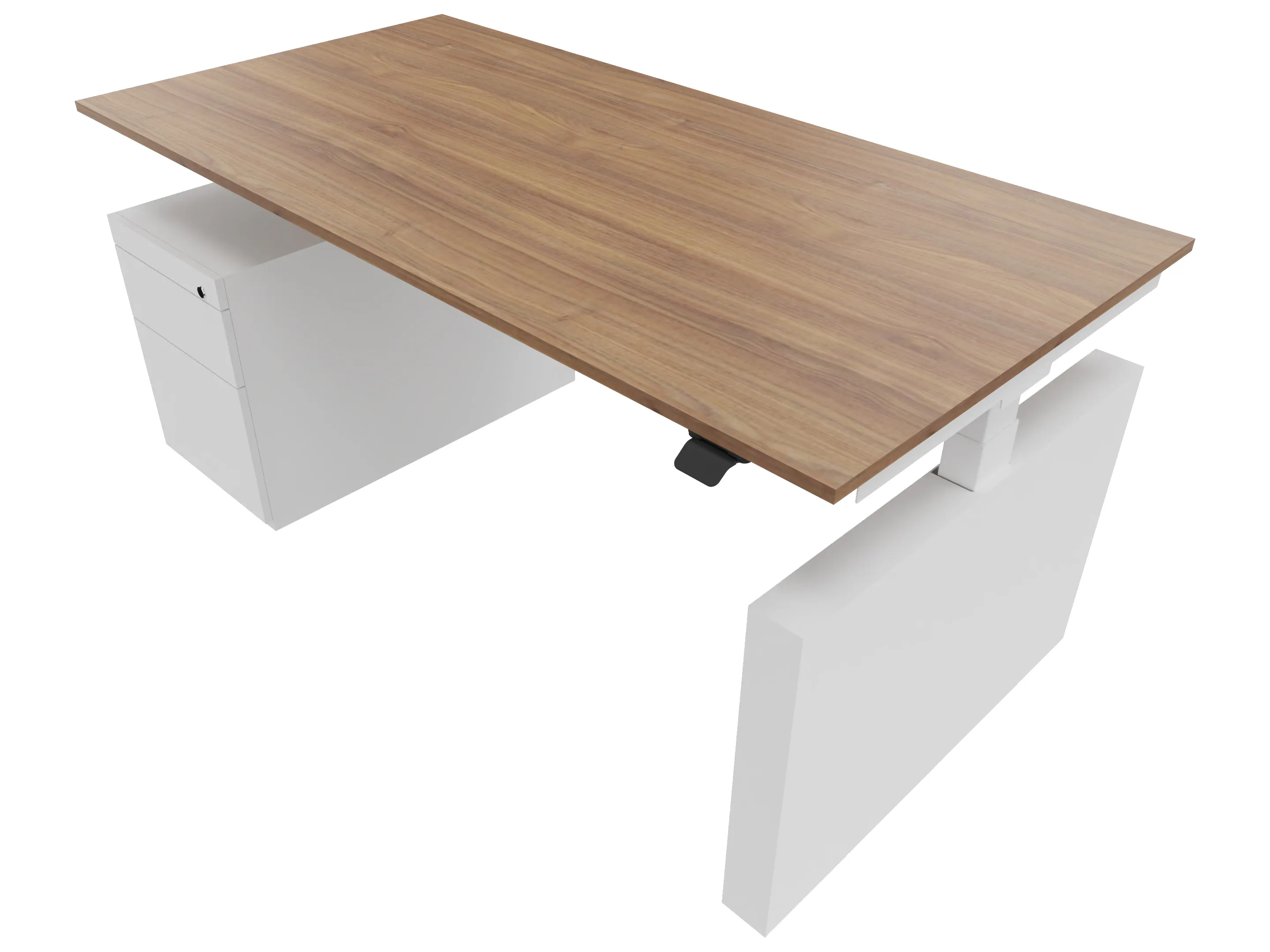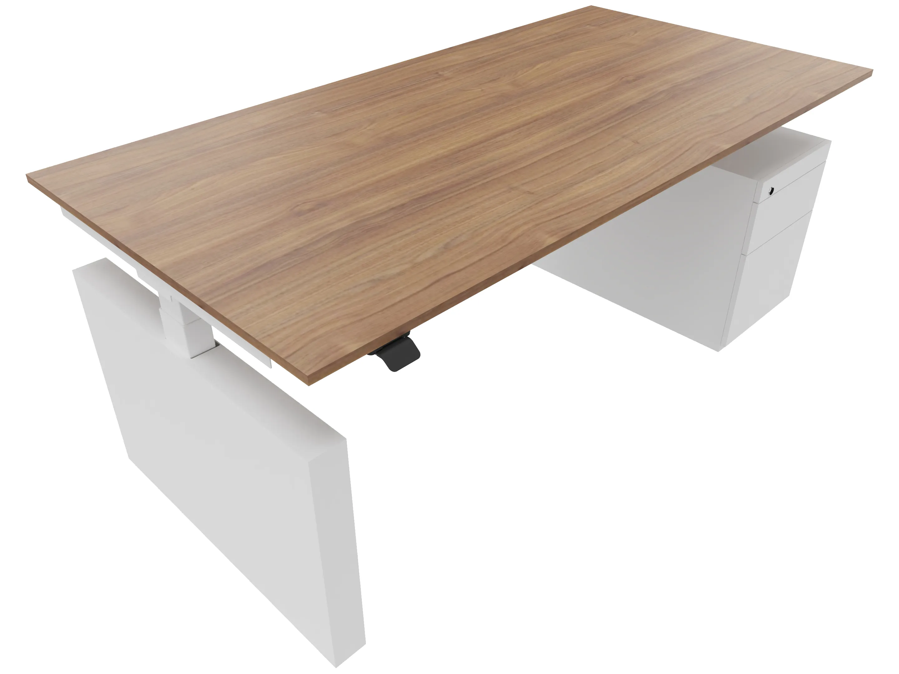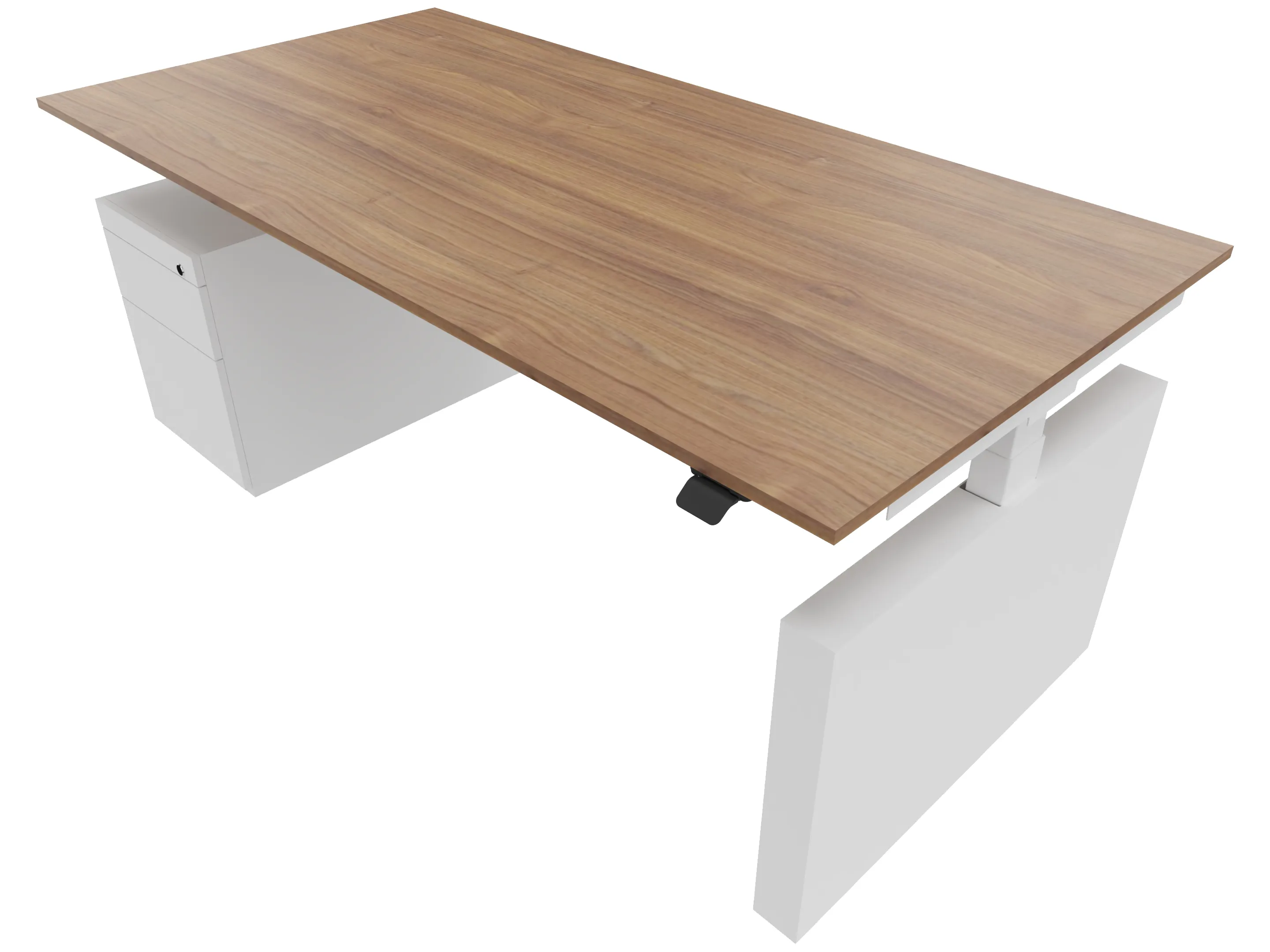 Zit-sta bureau, elektrisch verstelbaar tussen 640-1300mm, compleet met 1 werkblad van 1800 x 900mm, wangpoten en hoog-laag bediening (gemonteerd onder blad), ladenblok (links gemonteerd), met hangmappenlade.