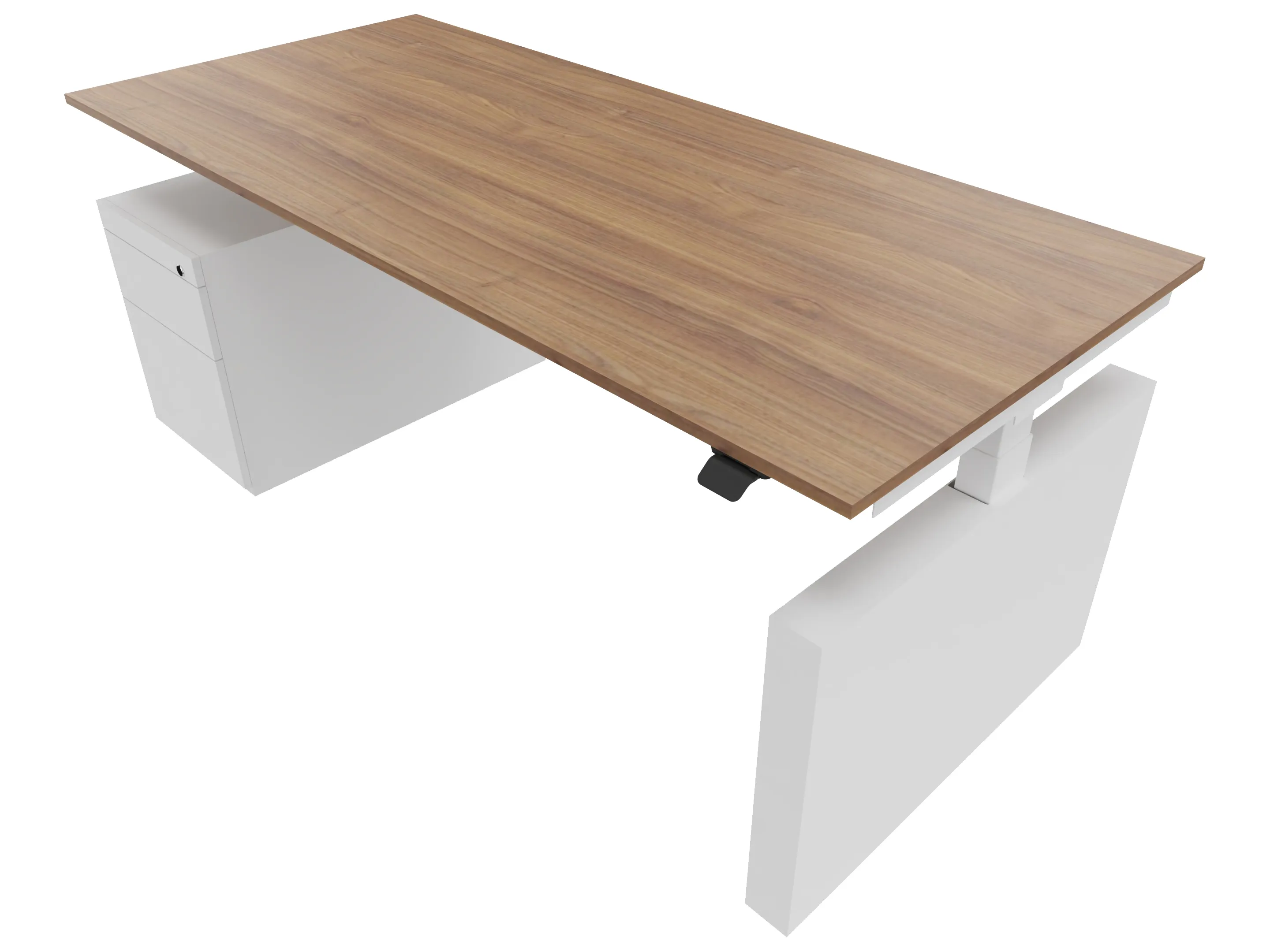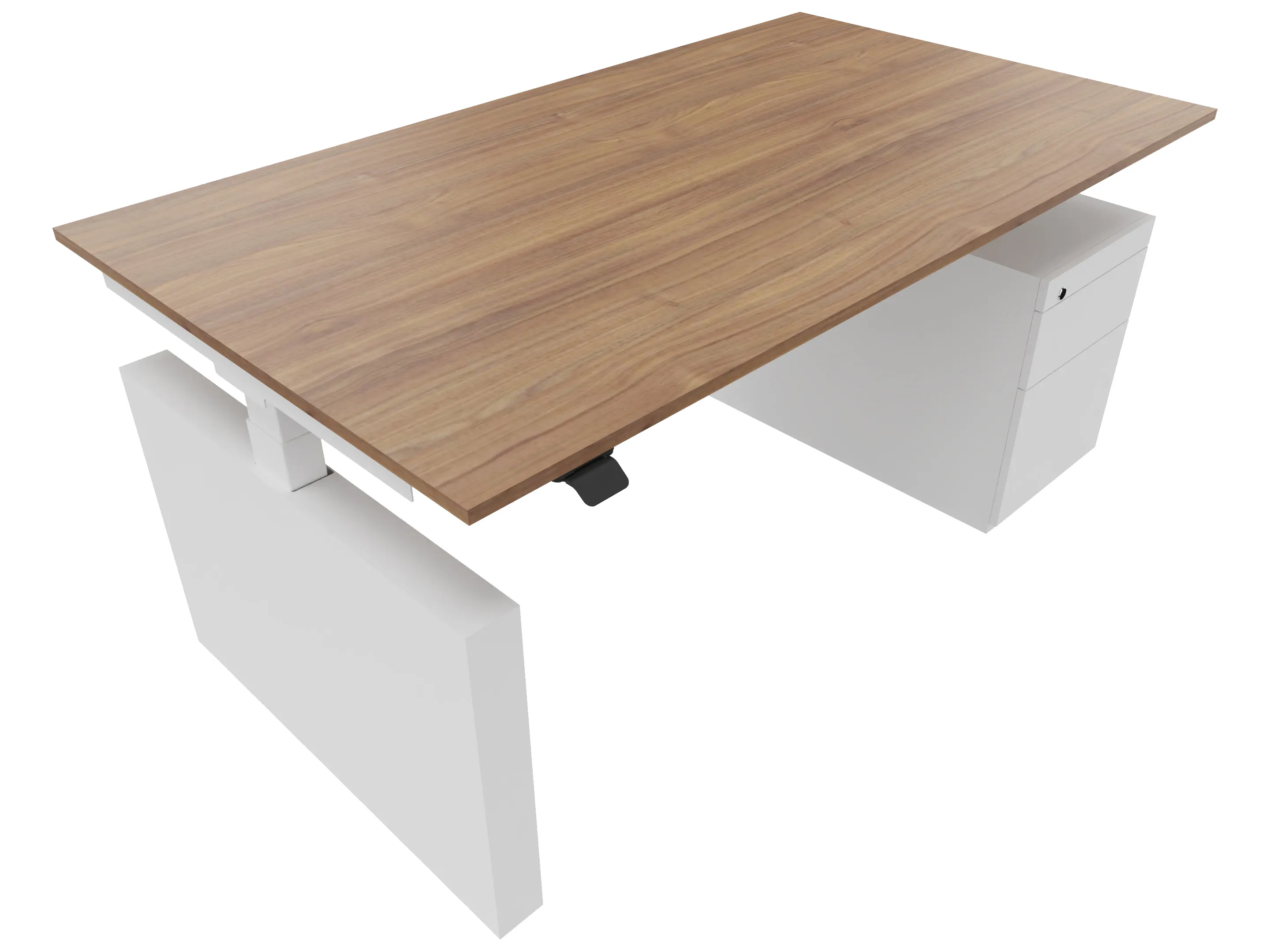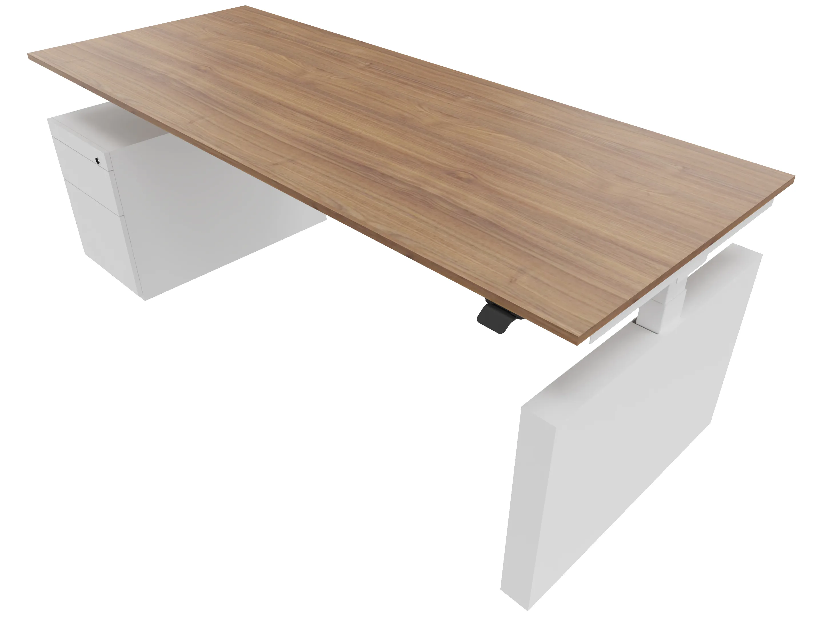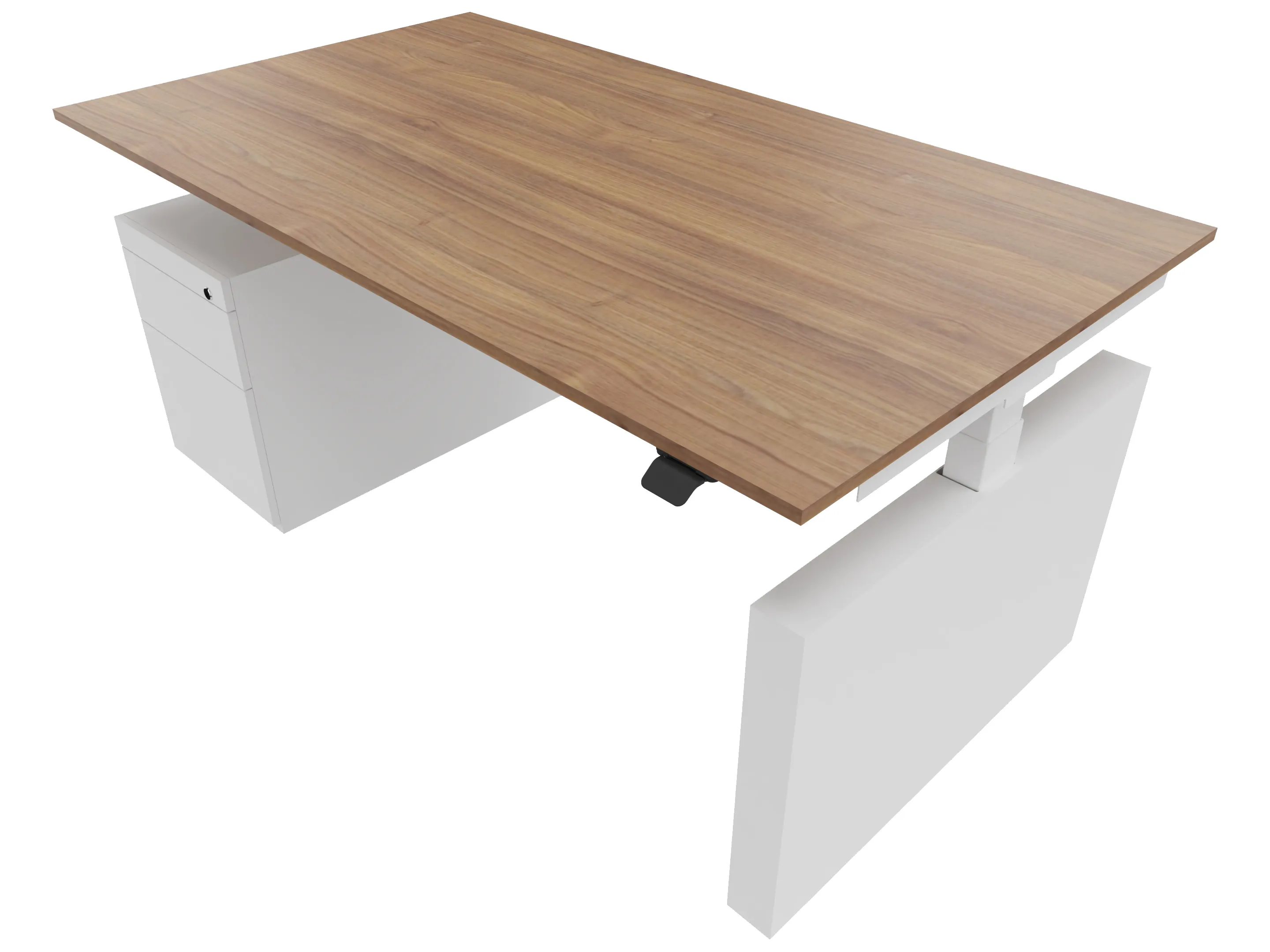 Zit-sta bureau, elektrisch verstelbaar tussen 640-1300mm, compleet met 1 werkblad van 1600 x 900mm, wangpoten en hoog-laag bediening (gemonteerd onder blad), ladenblok (links gemonteerd), met hangmappenlade.