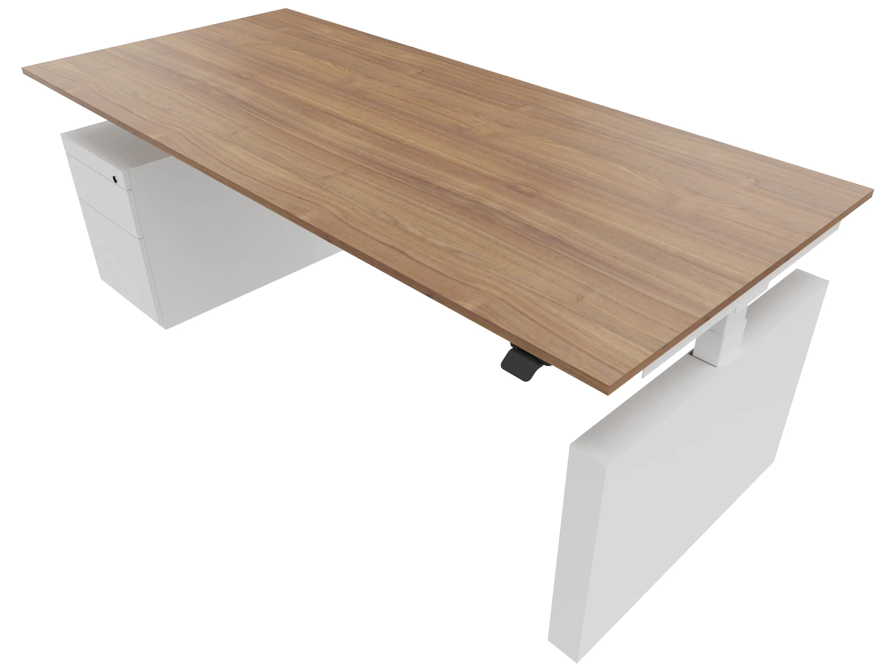 Zit-sta bureau, elektrisch verstelbaar tussen 640-1300mm, compleet met 1 werkblad van 2000 x 900mm, wangpoten en hoog-laag bediening (gemonteerd onder blad), ladenblok (links gemonteerd), met hangmappenlade.