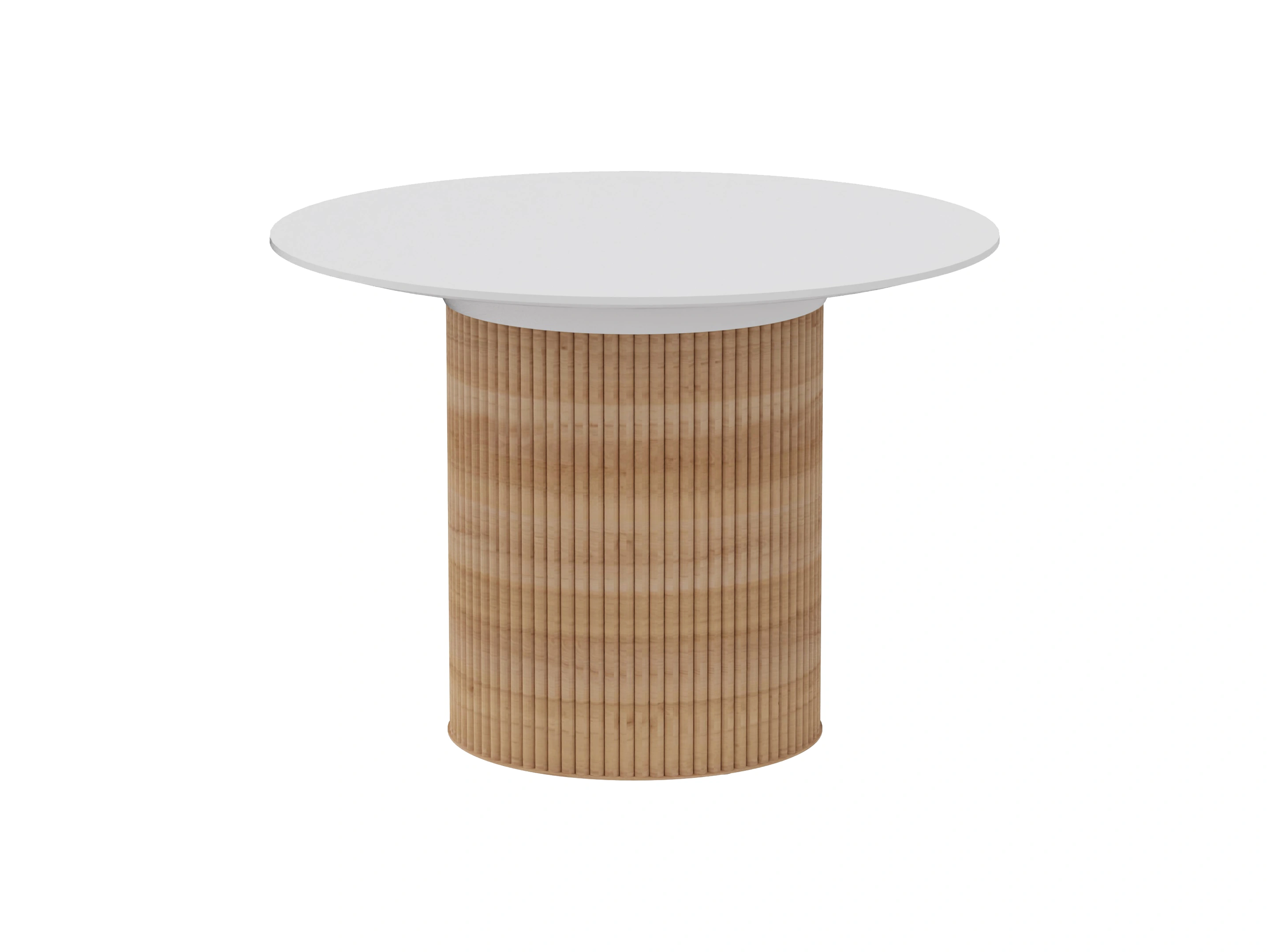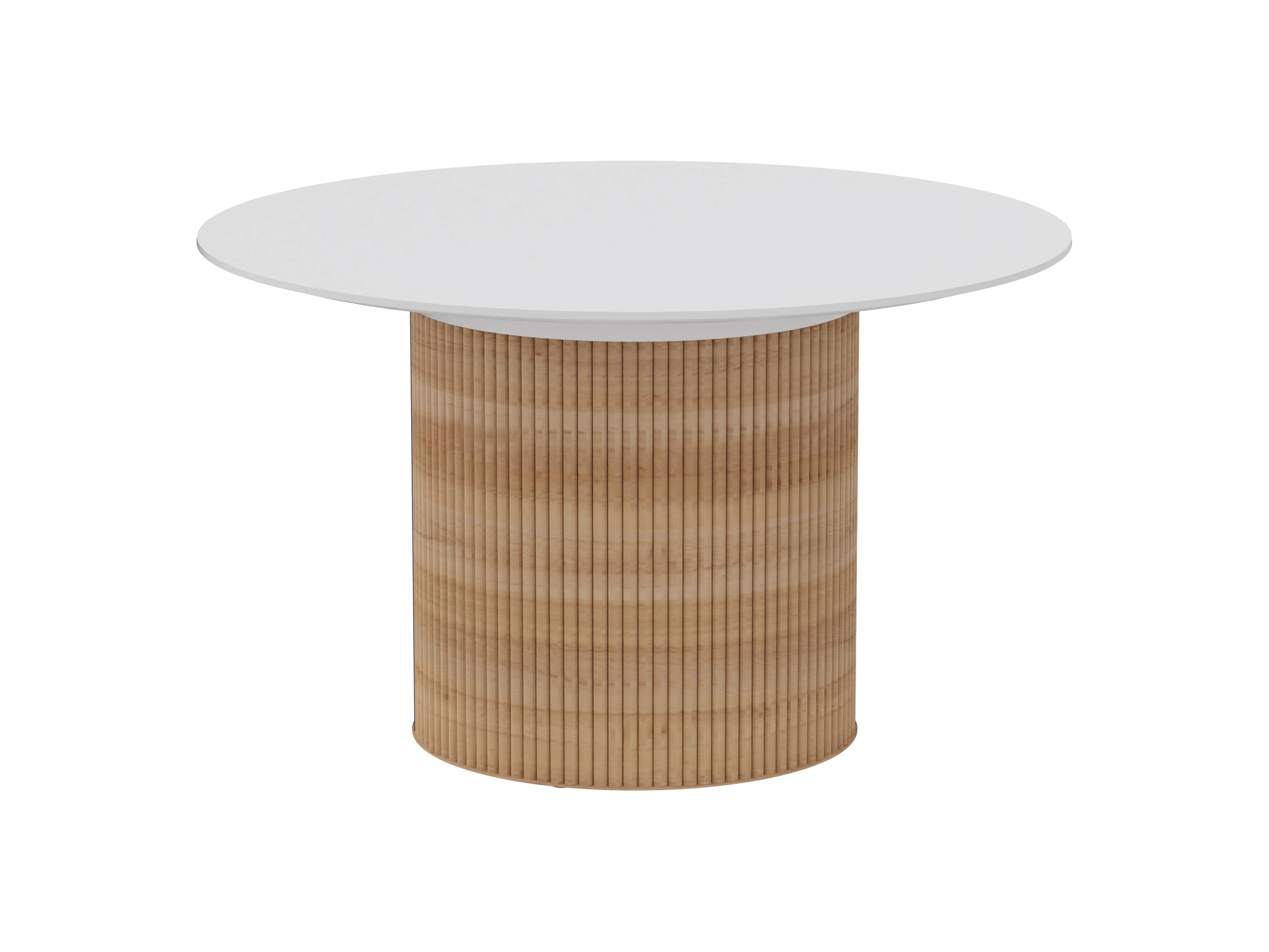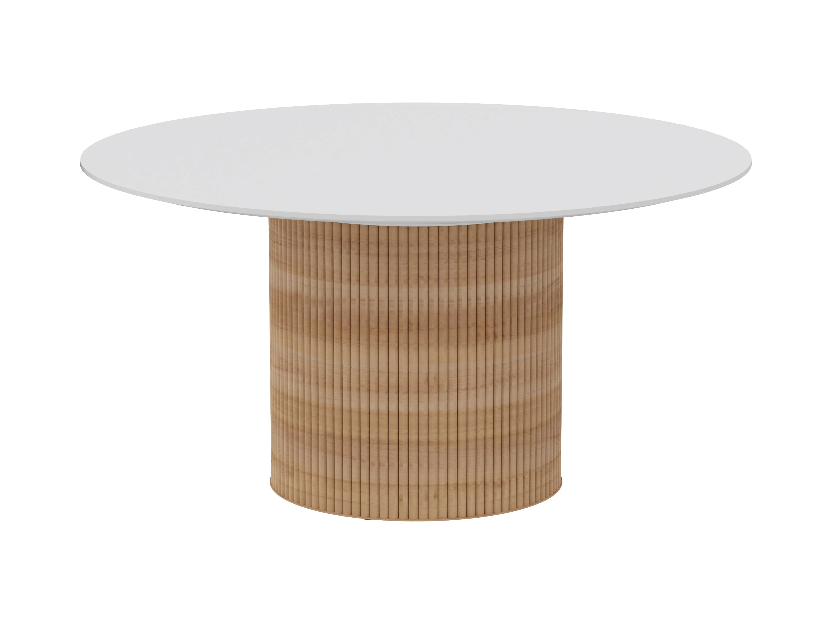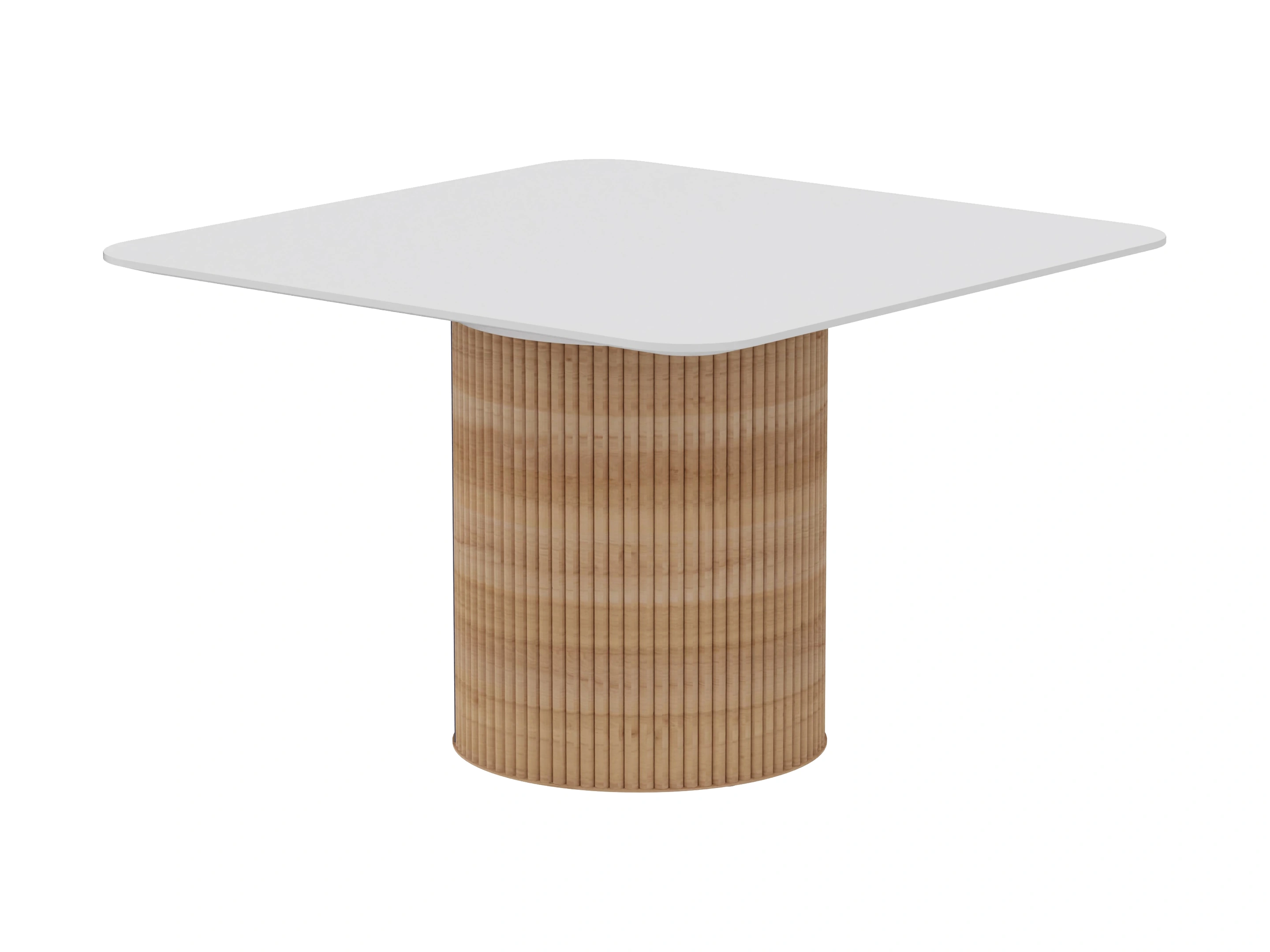 Tafel met een stalen frame, waarvan de kolom bekleed is met massief hout. Ronde kolomvoet heeft een diameter van 52cm.