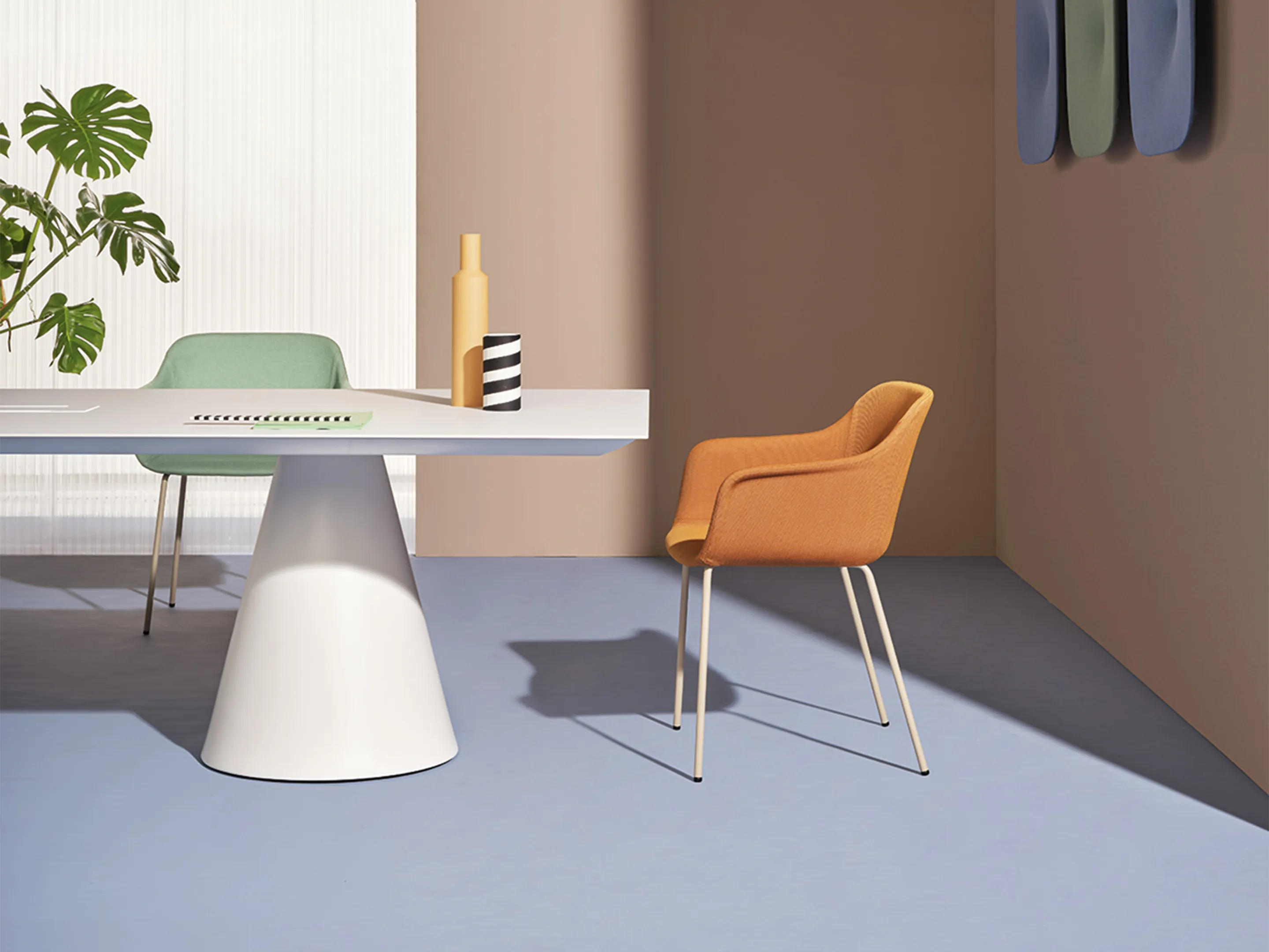 Vergadertafel met een hoogte van 720mm, voorzien van één kolompoot.