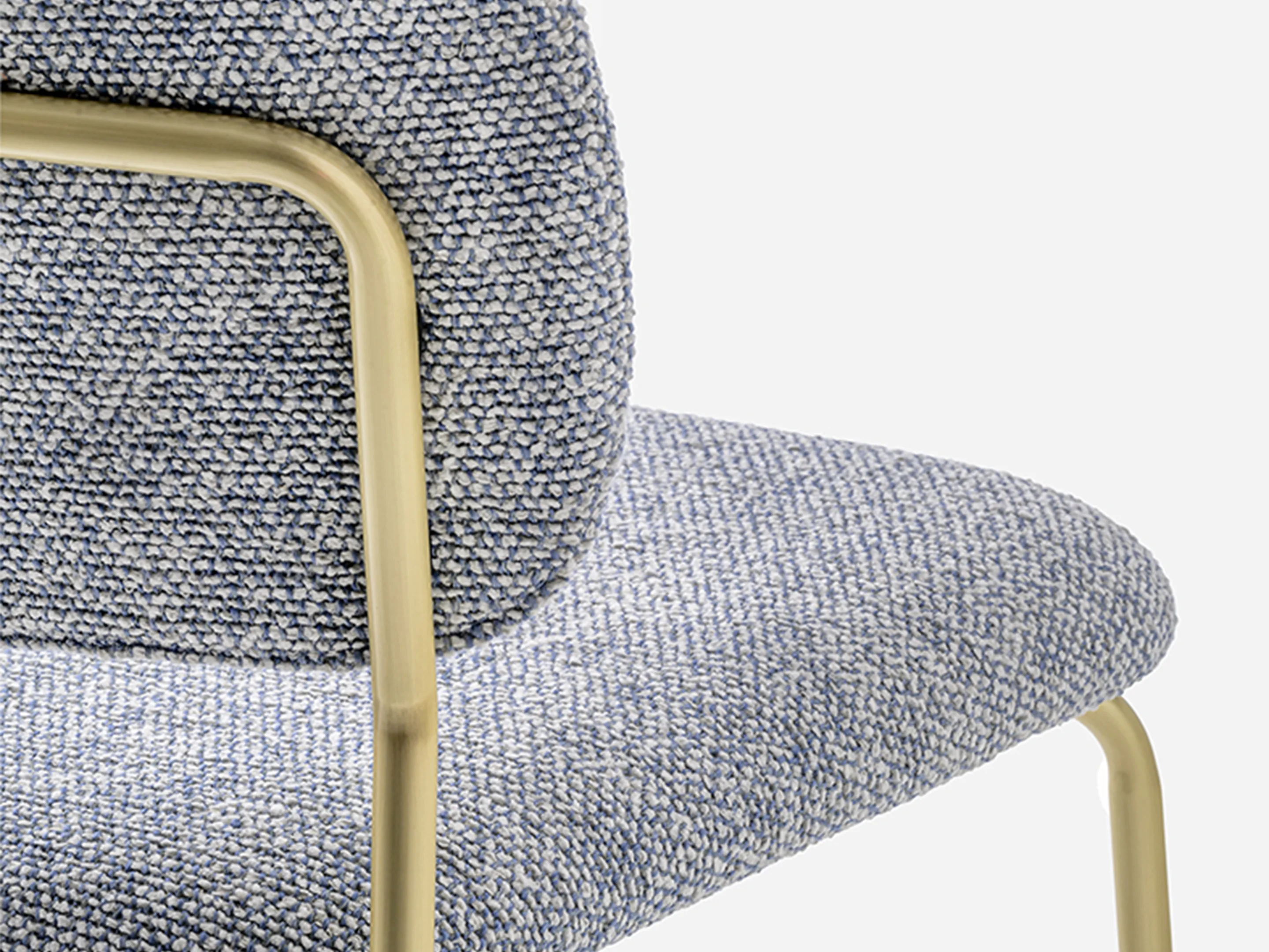 Volledig gestoffeeerd op een 4-poots frame. Rugleuning is doorlopend. Zithoogte is 760mmmm.