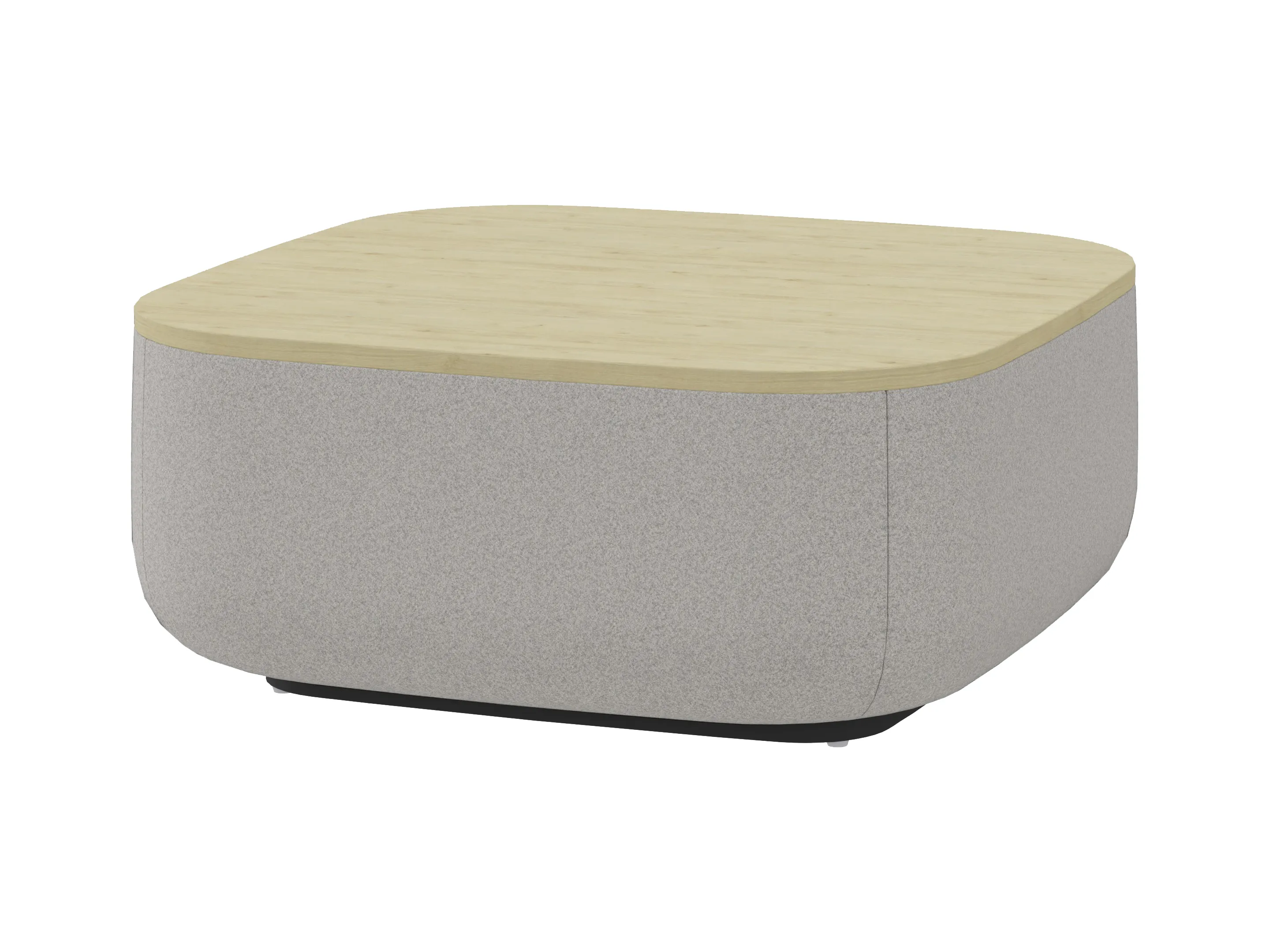 Volledig gestoffeerde poef met tafelblad. Afmeting: 890 x 890 x 365mm (B x D x H).