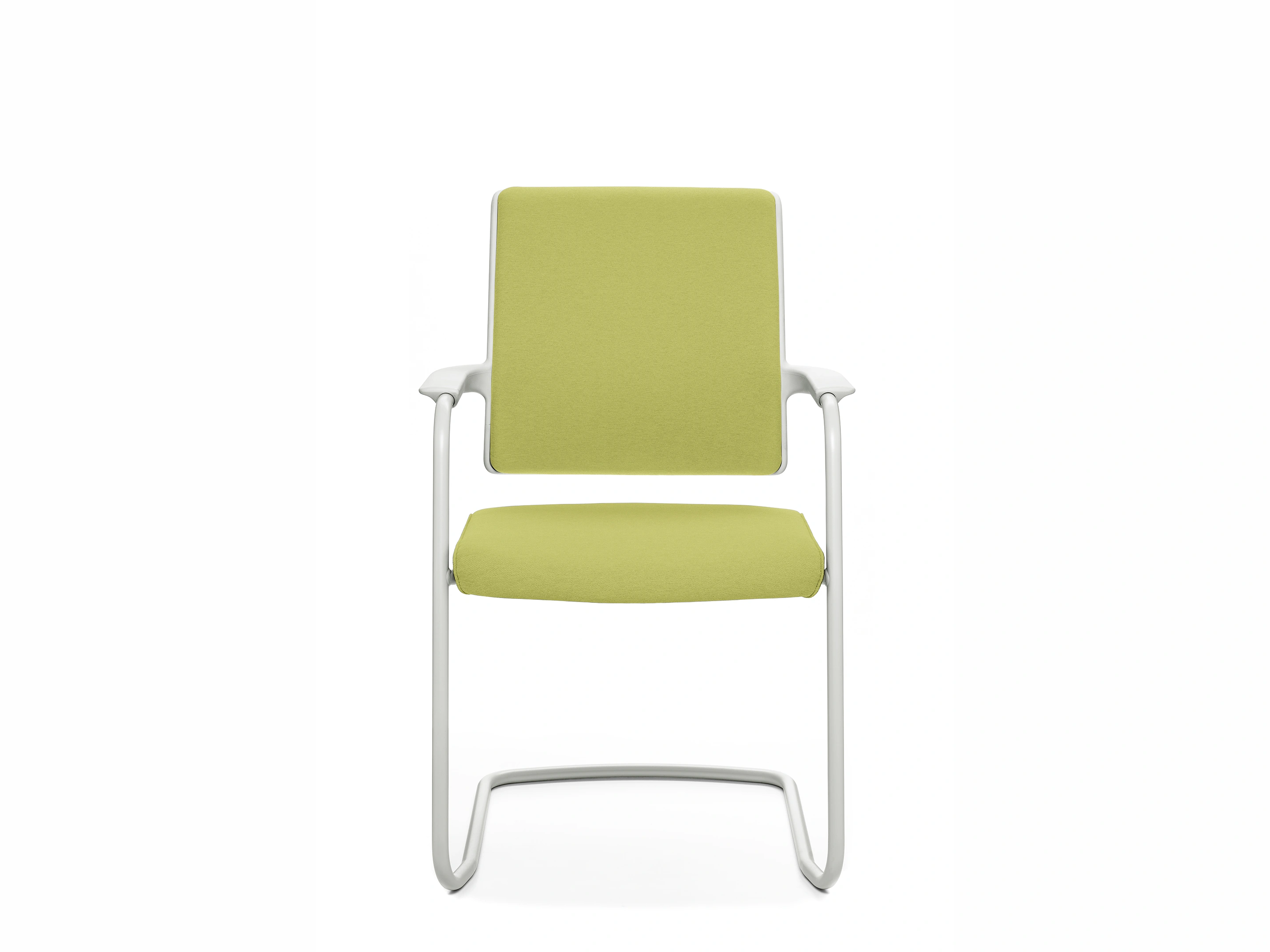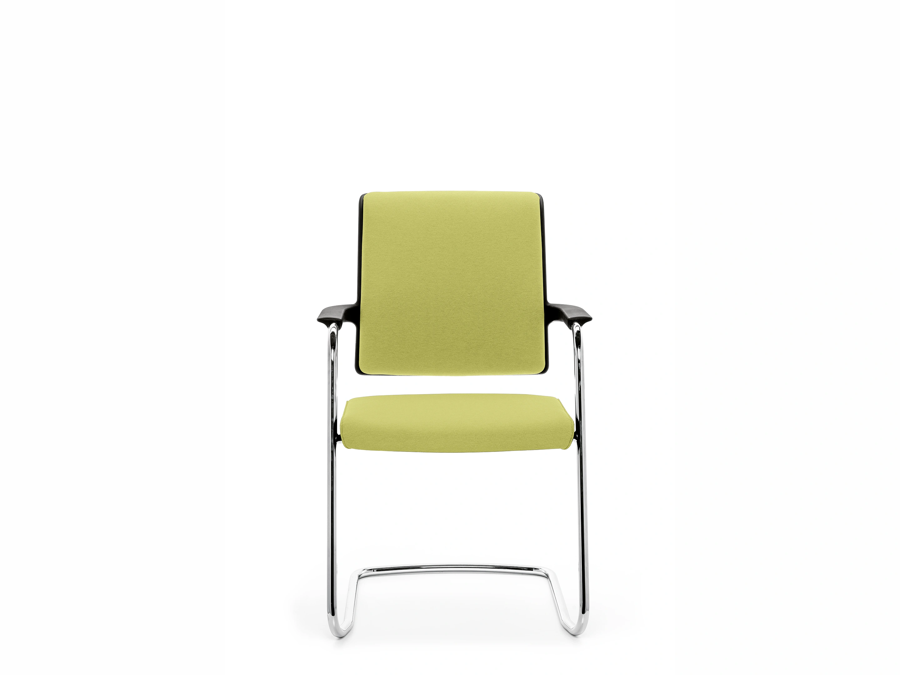 Vergaderstoel met een sledeframe en een gestoffeerde rug, stapelbaar tot 4 stuks, zijkant zitting altijd zwart