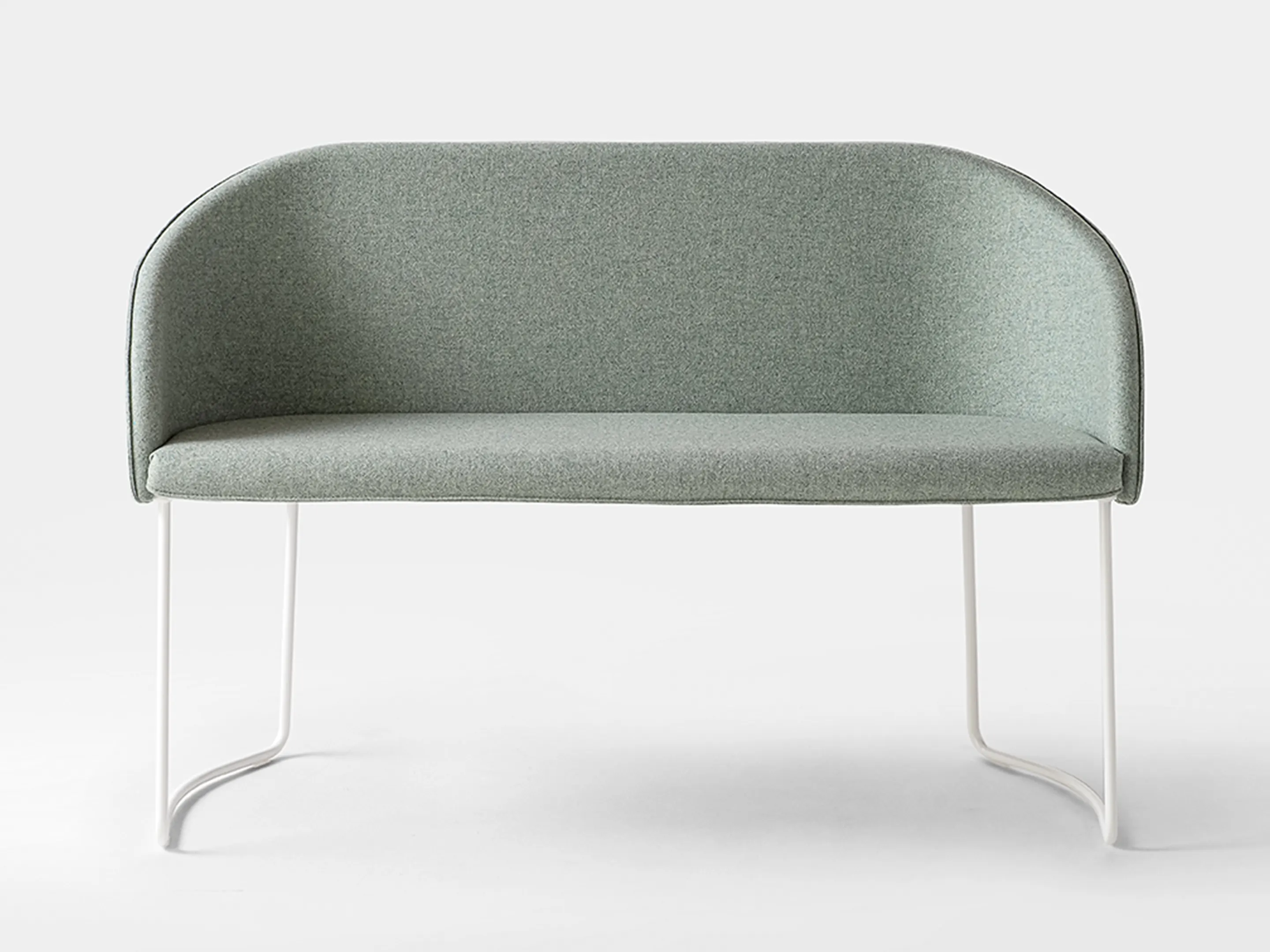 Volledig gestoffeerde 2-zits bank op een sledeframe.
