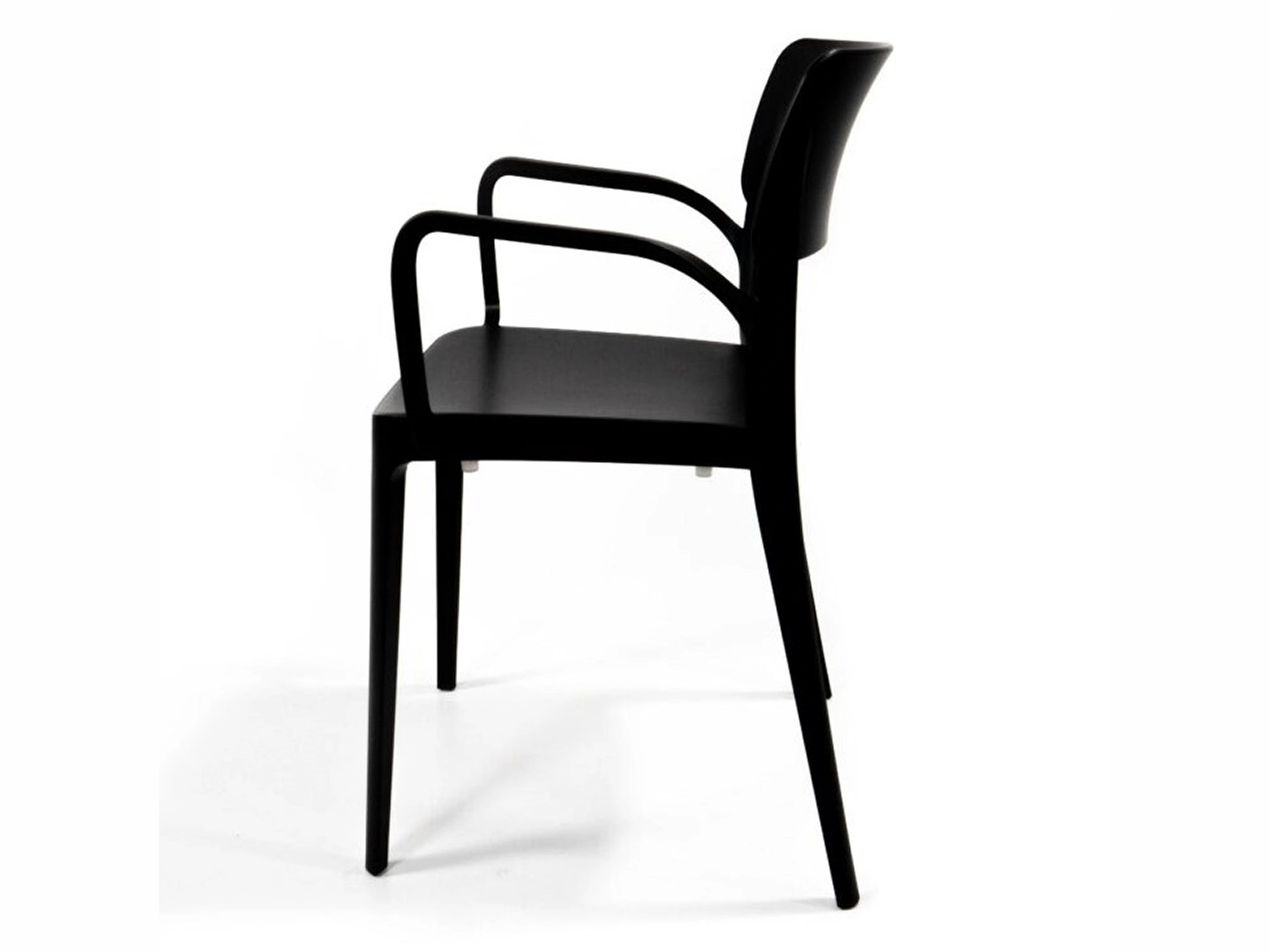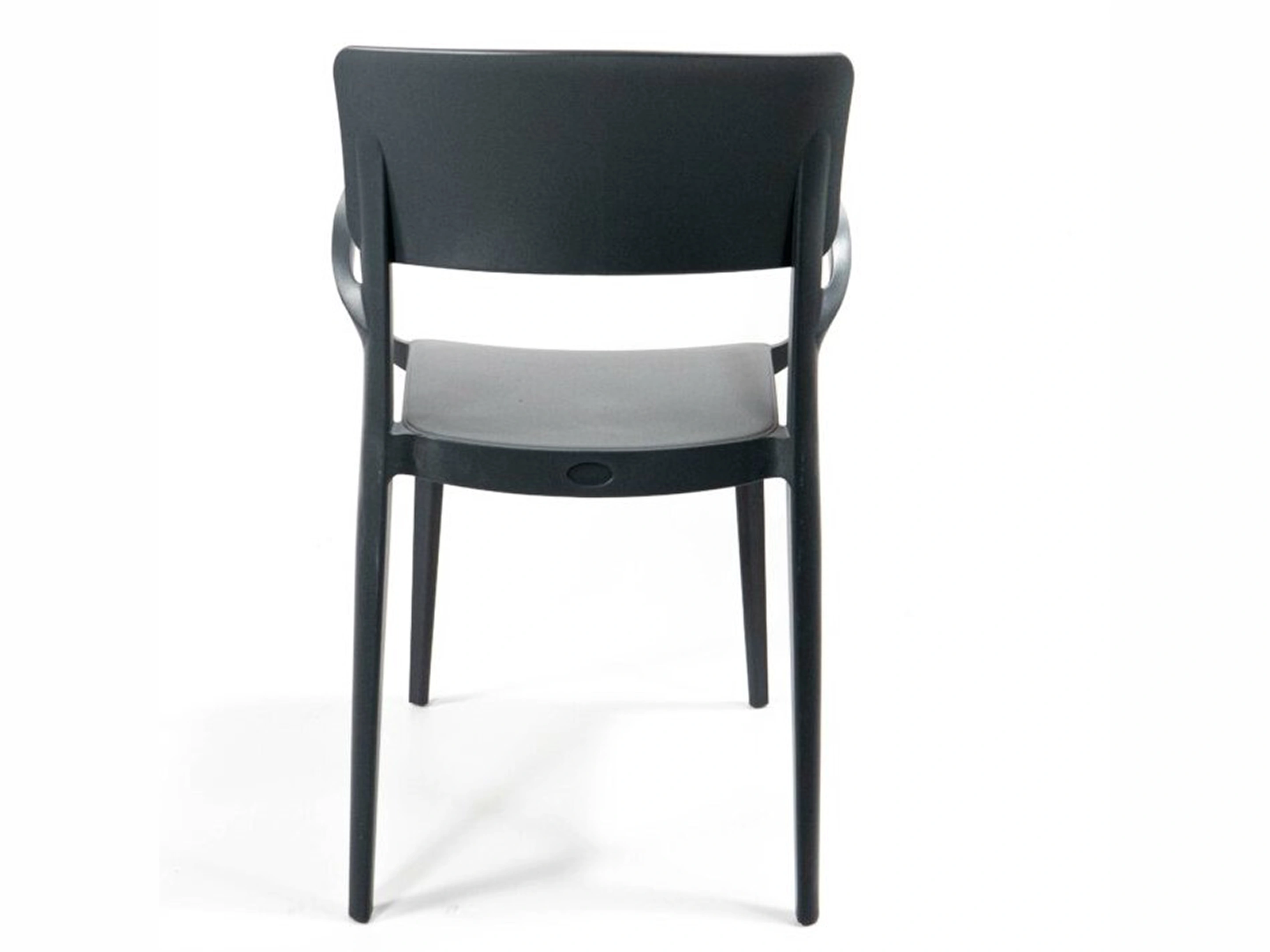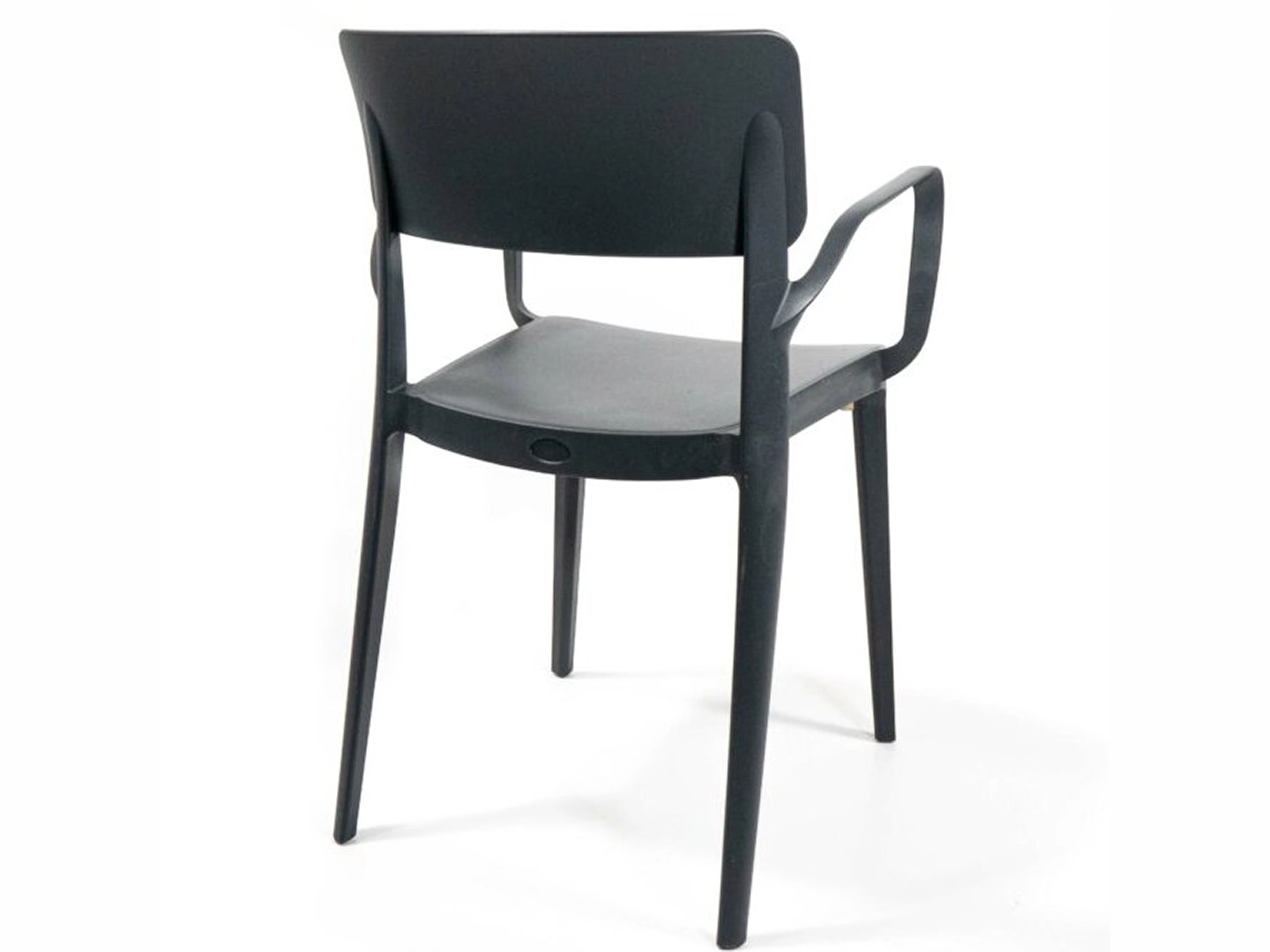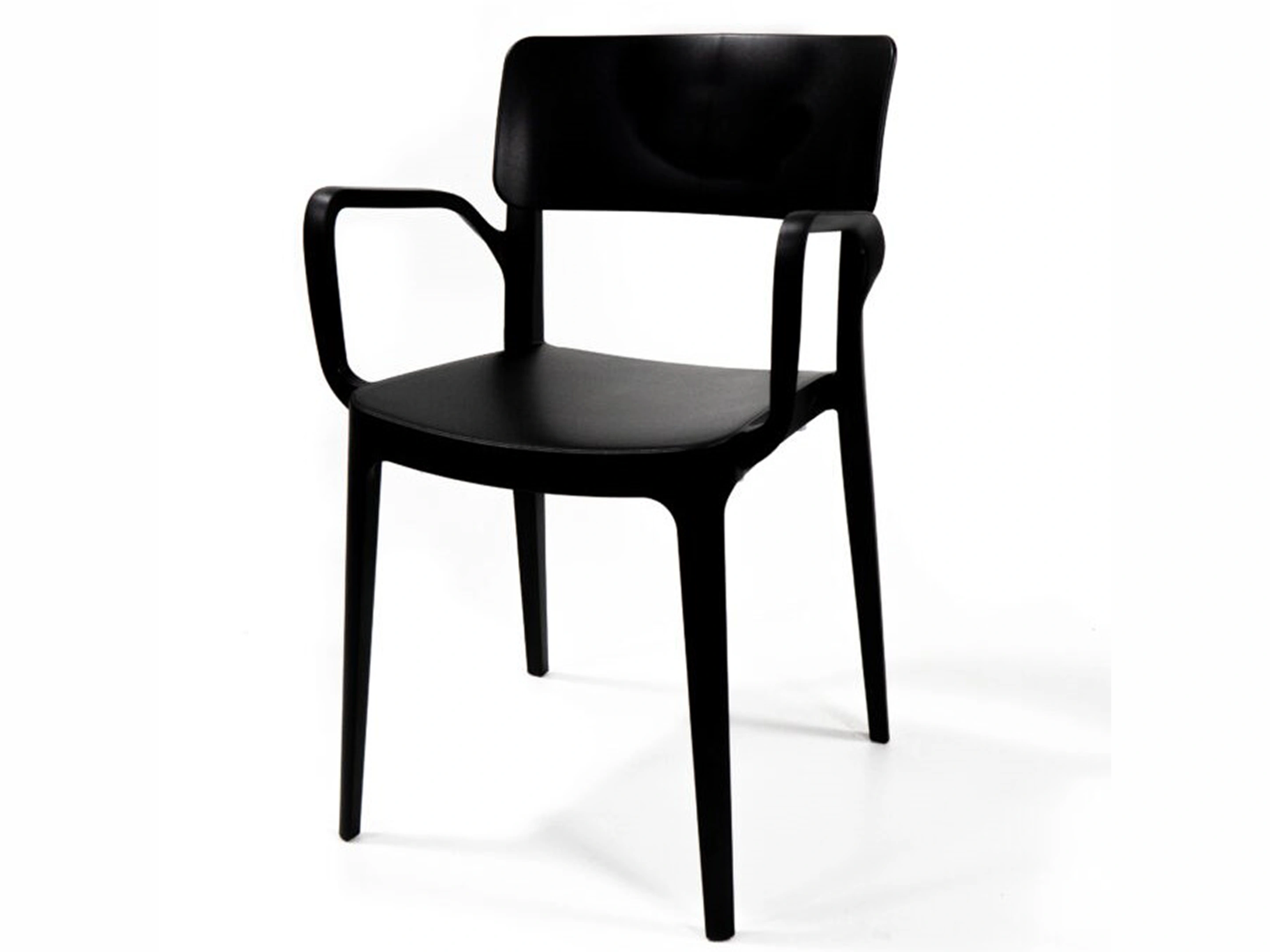 Stapelbare kantinestoel met armleuningen, volledig gemaakt van kunststof.