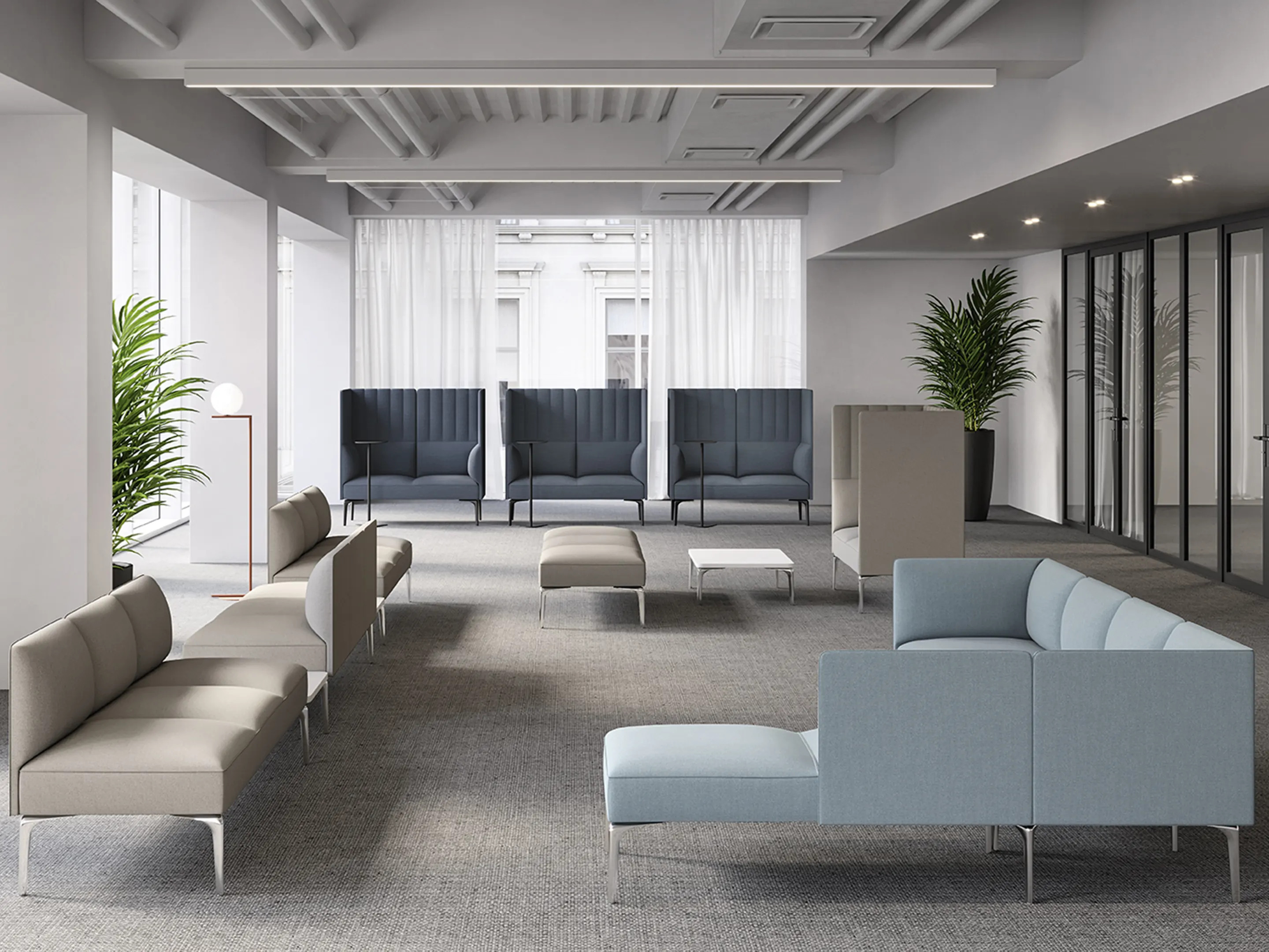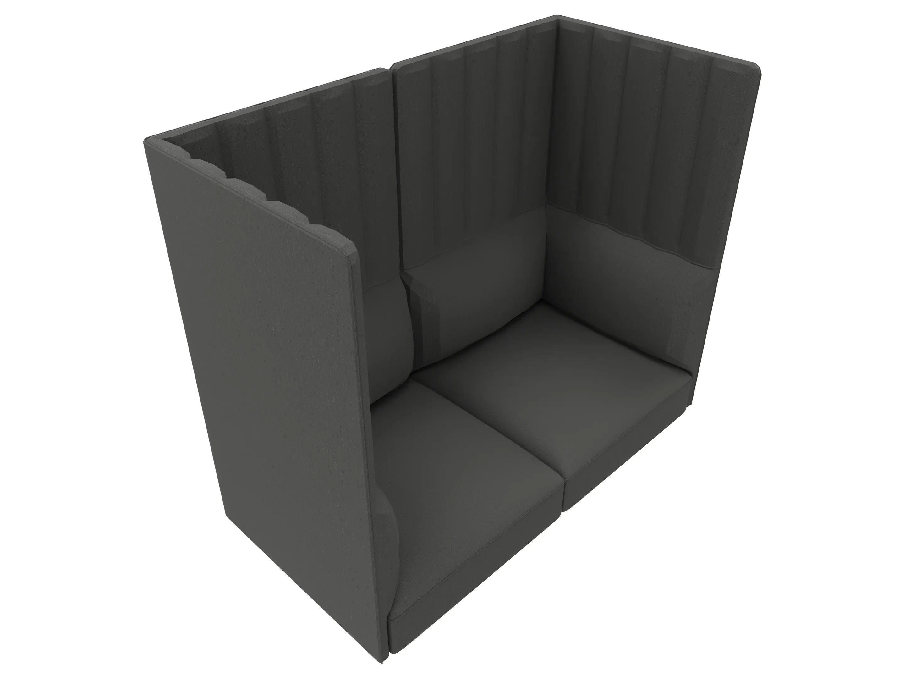 Volledig gestoffeerde 1260mm breed 2-zits modulair element, inclusief zijwanden, inclusief hoge rugleuning. LET OP: poten moeten los worden besteld.
