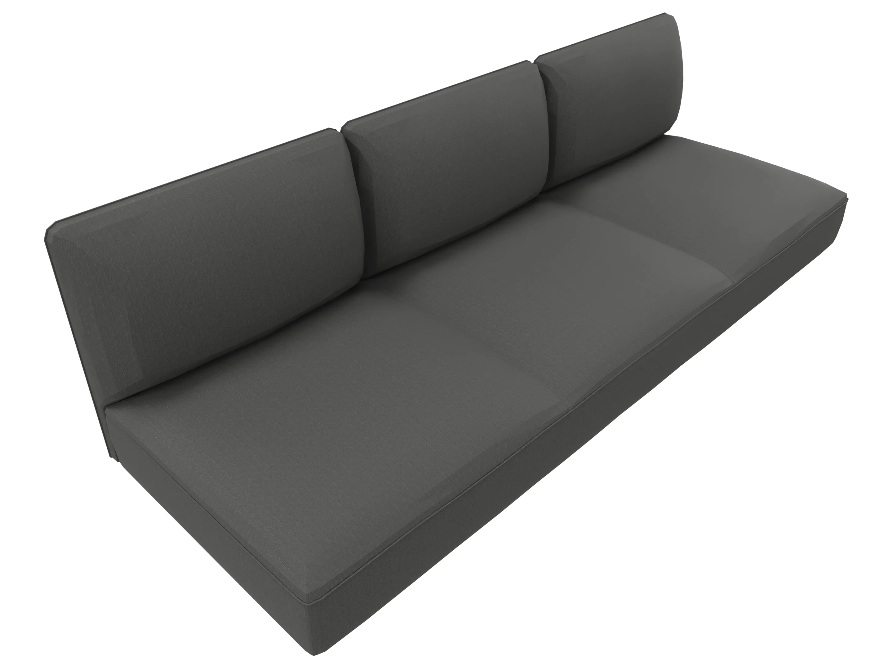 Volledig gestoffeerde 1800mm breed 3-zits modulair element, exclusief armleuningen, inclusief lage rugleuning. LET OP: poten moeten los worden besteld.